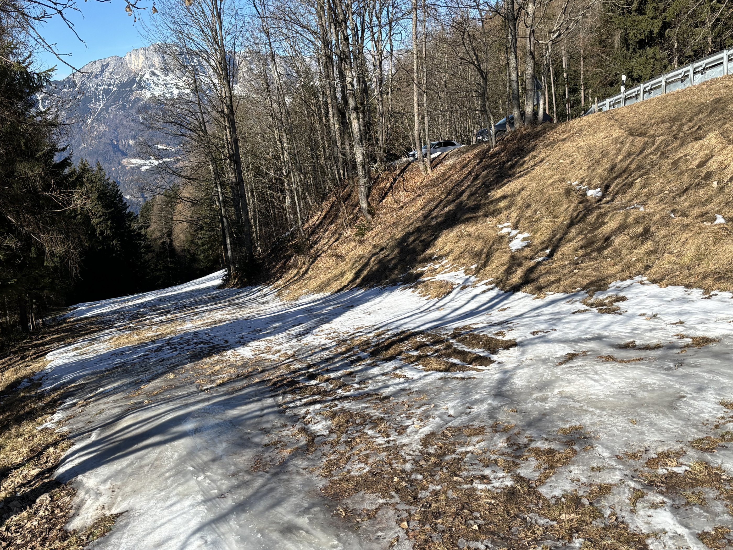 Noch einmal das Rossfeld. Ich bin das letzte Mal von der Mautstelle hinauf und hab gesehen, dass da unterhalb auch noch genügend Schnee ist. Von Oberau geht es anstandslos durchgängig. Kein Pistenbetrieb, ich hab nur zwei Mandeln gesehen. Die Abfahrt ist nicht prepariert aber ausgefahren, also kein Bruchharsch wie rundherum. Empfehlenswert wenn man in Stadtnähe ohne Pistenzirkus ein bisserl wandern und fahren möchte ...Im Wald oben ist nichts zu machen, ich empfehle den Aufstiegsweg und dann neben der Strasse zur Piste zurück ...