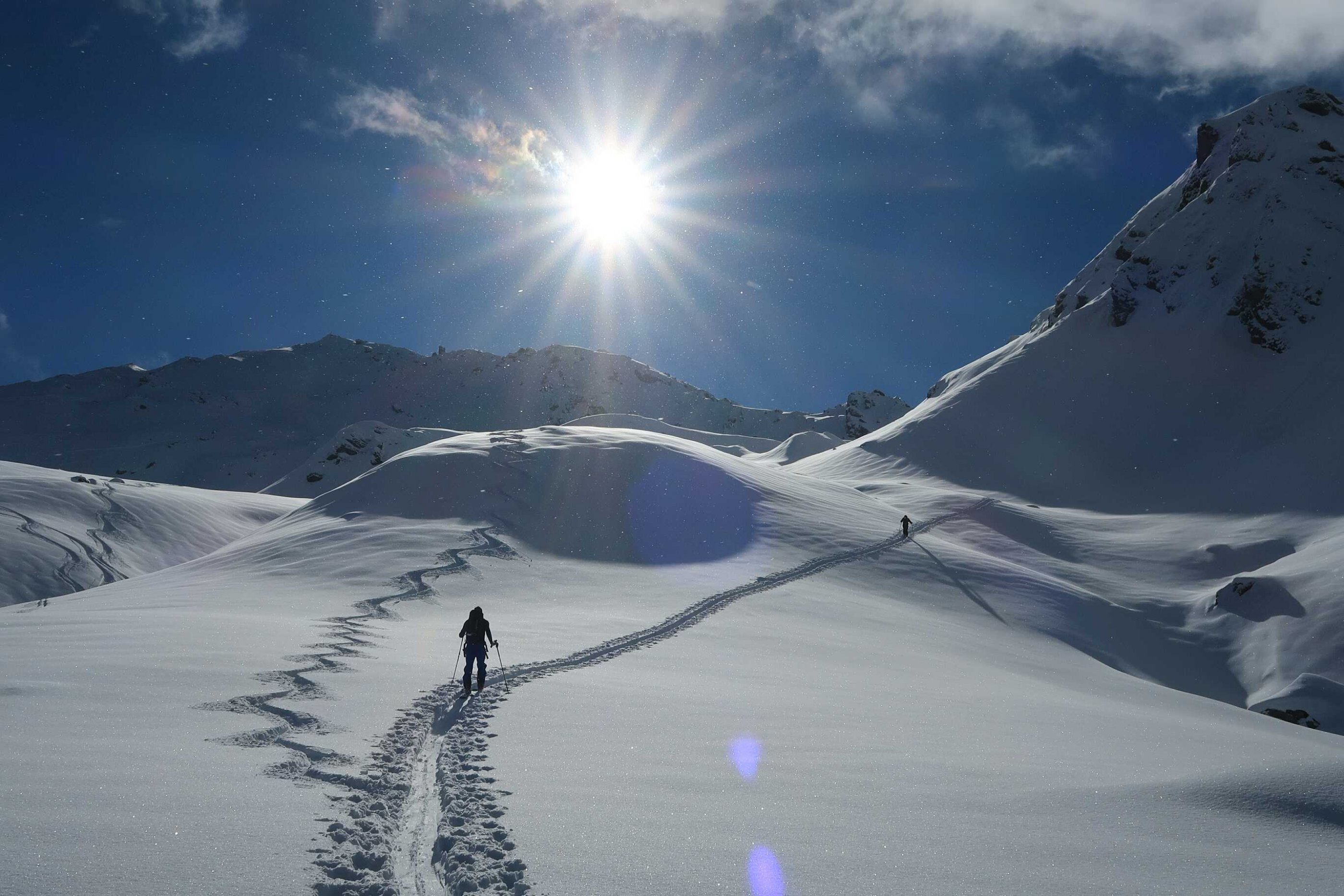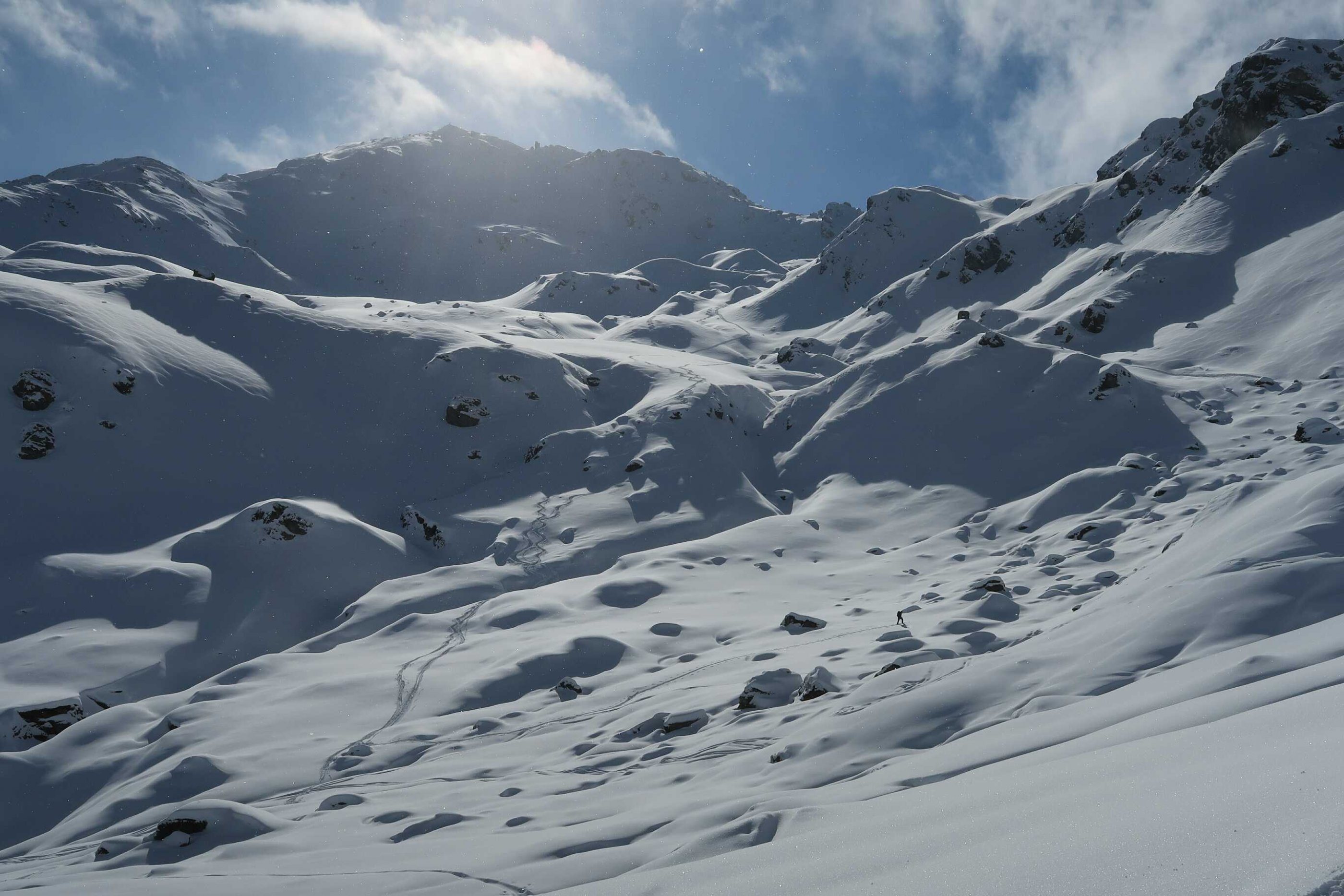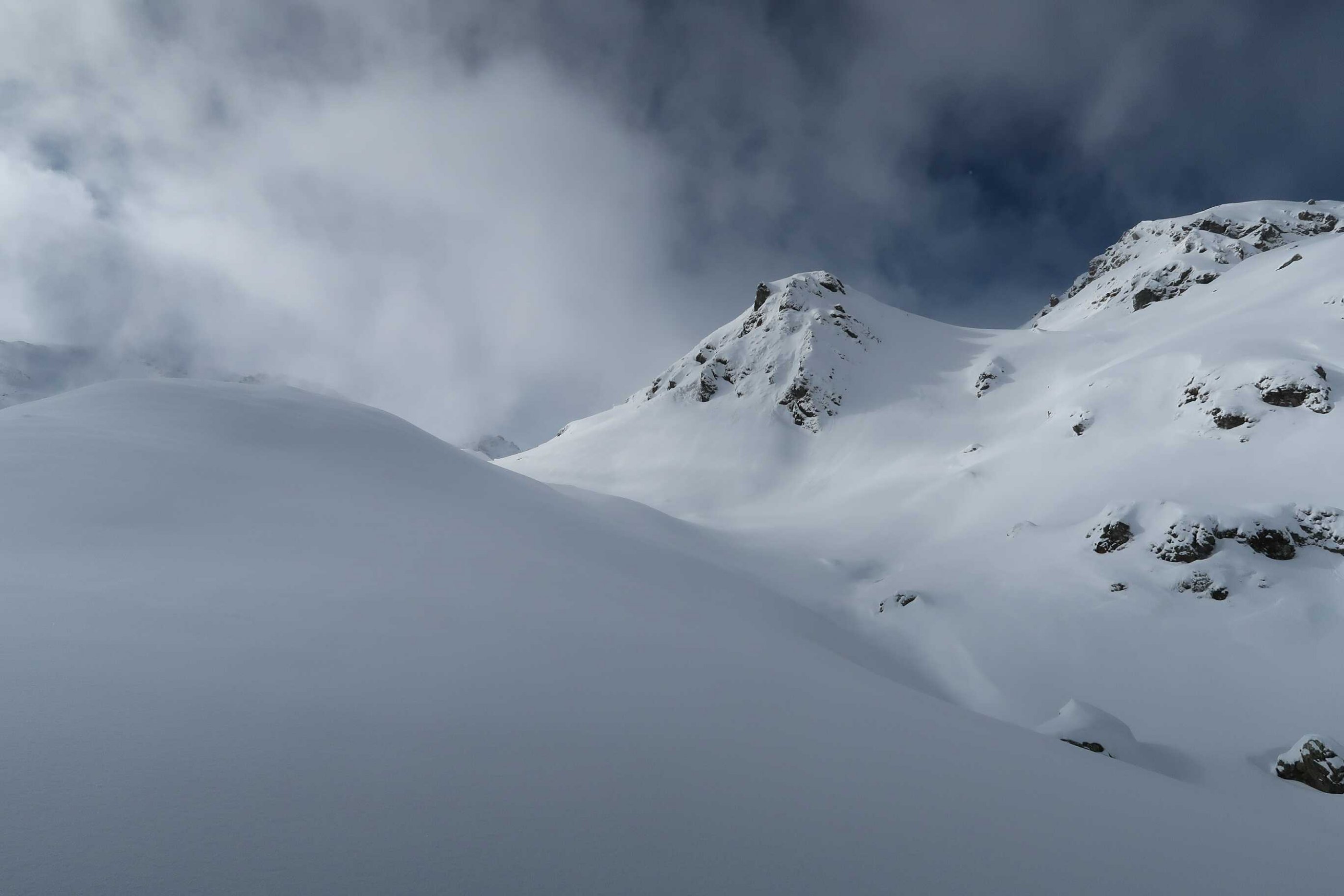 Auf der Suche nach Schnee und Sonne heute mal Hochfügen besucht. Der Neuschnee beginnt erst oberhalb ca. 1200m, darunter sind die Wiesen meist grün. In Hochfügen (knapp 1500) liegen aber dann doch 15cm Pulver aus der vergangenen Nacht, die auch nach oben hin kaum mehr werden. Die Rodelbahn zum Pfundsalm Niederleger (1640) ist gut schneebedeckt und so hatsche ich bei nebeligen Verhältnissen mit wenigen anderen taleinwärts bis unterhalb Pfundsalm Mittelleger (ca. 1800). Ab dort folge ich rechts der Spur aufwärts Richtung Kl. Gilfert. Bei einem Felsen lege ich eine längere Pause ein und warte auf bessere Sicht. Um ca. 11 Uhr lichtet sich endlich der Nebel etwas und ich folge weiter der Spur. Sie endet in ca. 2100m, die beiden Tourer haben wegen schlechter Sicht abgebrochen und sind entlang der Aufstiegsspur abgefahren. So spure ich bei mittlerweile brauchbarer Sicht durch das schöne winterliche Gelände hinauf zum Pfundsjoch (2345) und weiter nach links den Gratrücken empor Richtung Roßkopf bis dieser sehr schmal wird. Der eiskalte Westwind lässt keine lange Pause zu, so fahre ich bei etwas diffusem Licht gleich wieder ab. Beim Mittelleger angekommen lässt sich die Sonne blicken, ich felle nochmal an und steige nochmal zum Pfundsjoch und diesmal rechts zum Pkt. 2397m auf (Zwischengipfel auf dem Weg zum Kl. Gilfert 2388). Mittlerweile ist es 15 Uhr und die Sonne lacht vom Himmel, der eisige Wind lässt die Pause wieder kurz ausfallen und ich genieße die Abfahrt zurück zum Parkplatz.