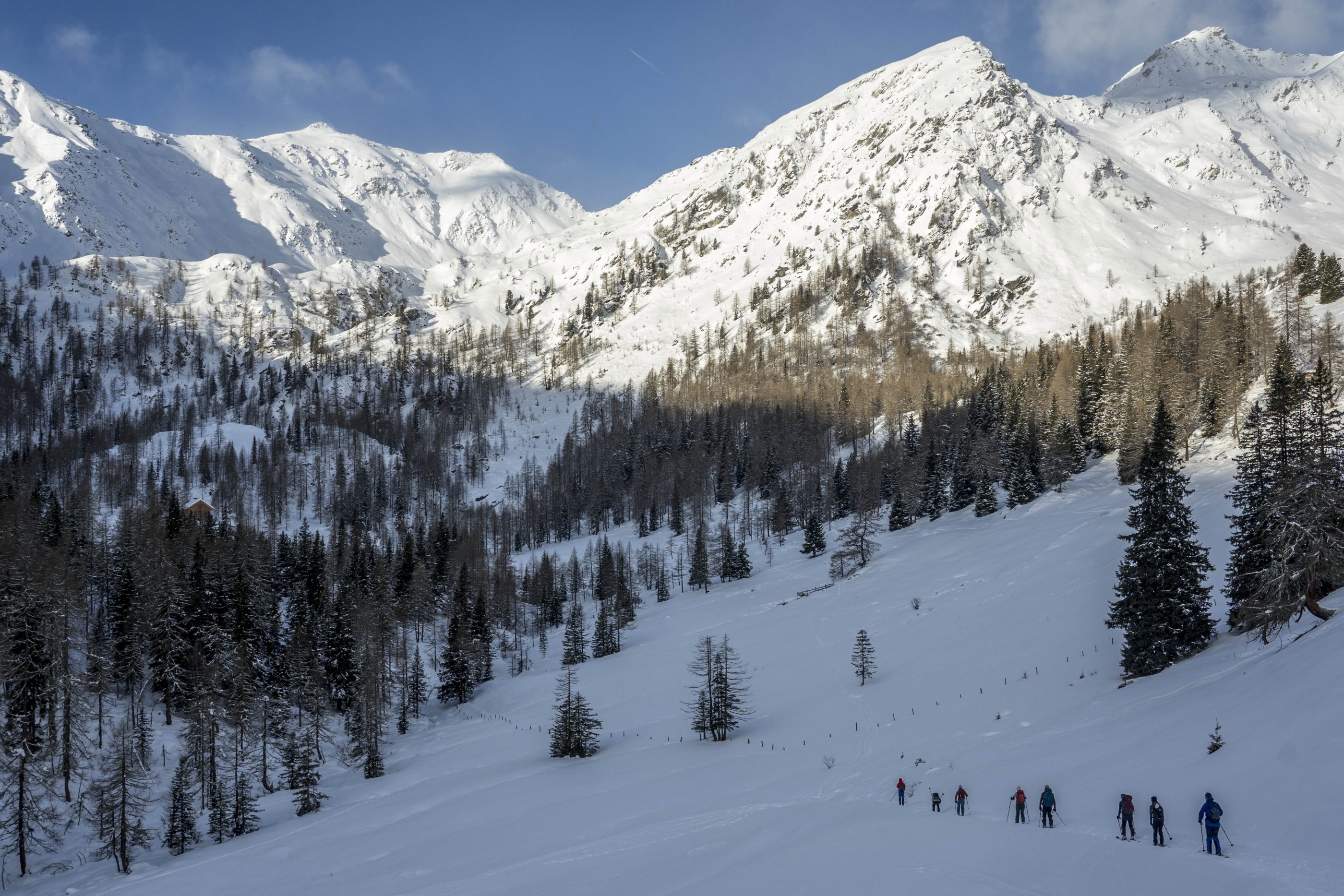 Geplant war das Skitourenwochenende für meine Jugendgruppe eigentlich schon im September auf einer Selbstversorgerhütte auf der Genneralm. Da zwei Wochen vor dem Termin jedoch absehbar war, dass in der Osterhorngruppe an der Genneralm zu wenig Schnee liegen würde, suchten wir nach Alternativen. Da die Schneelage im Süden besser war, reisten wir am 14.02. mit dem Zug nach Mallnitz und weiter per Bus nach Innerfragant.