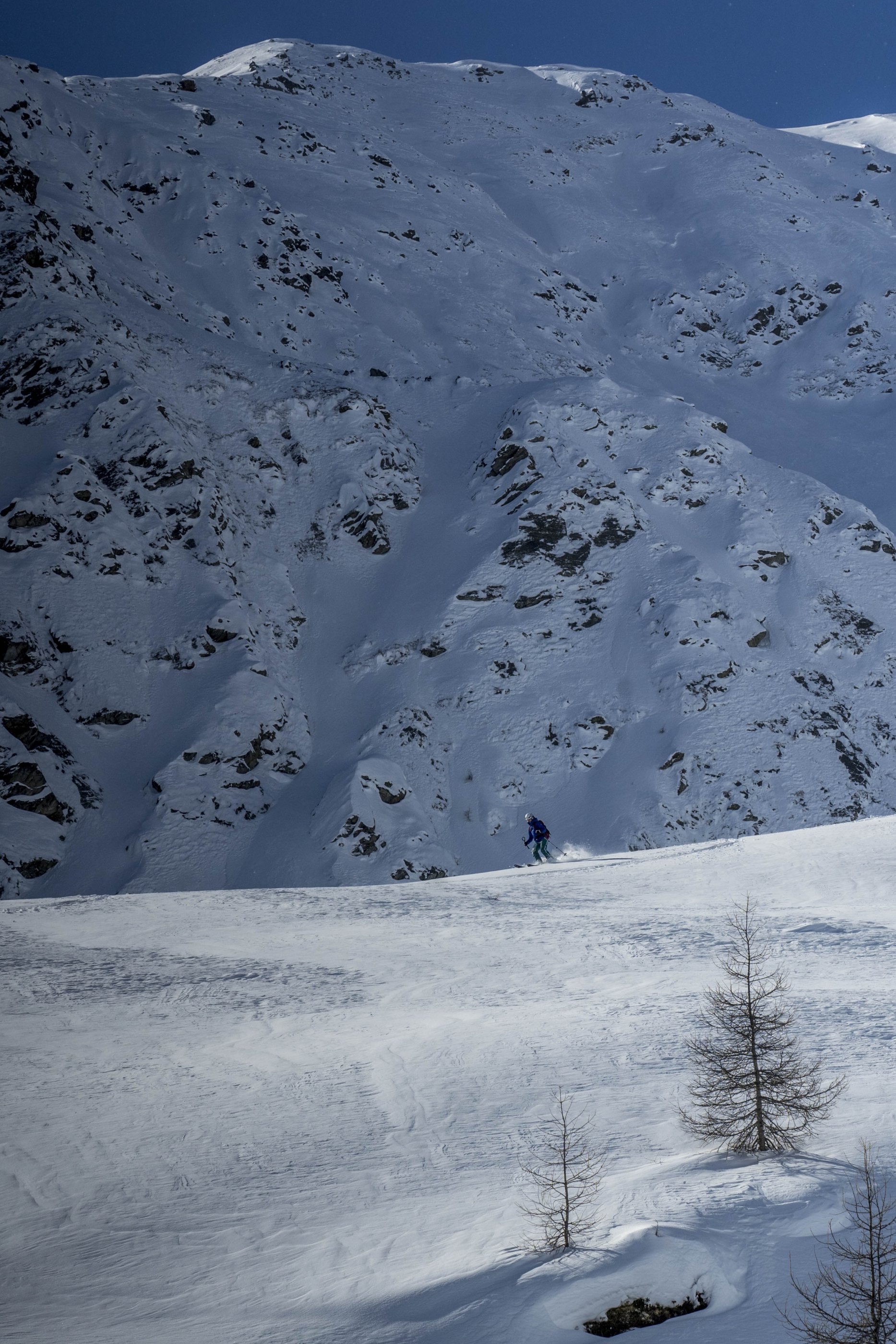 Wir stiegen also bis auf ca. 2.300 m auf und genossen zwei Abfahrten in den Melenböden, bevor wir die finale Abfahrt ins Tal antraten. Der Ziehweg/Wanderweg ins Tal ist durchgehend fahrbar, aber teils vereist und im unteren Teil aper bzw. mit Steinen durchsetzt. Das Stück vom Parkplatz bis zur Bushaltestelle ist derzeit spiegelglatt.