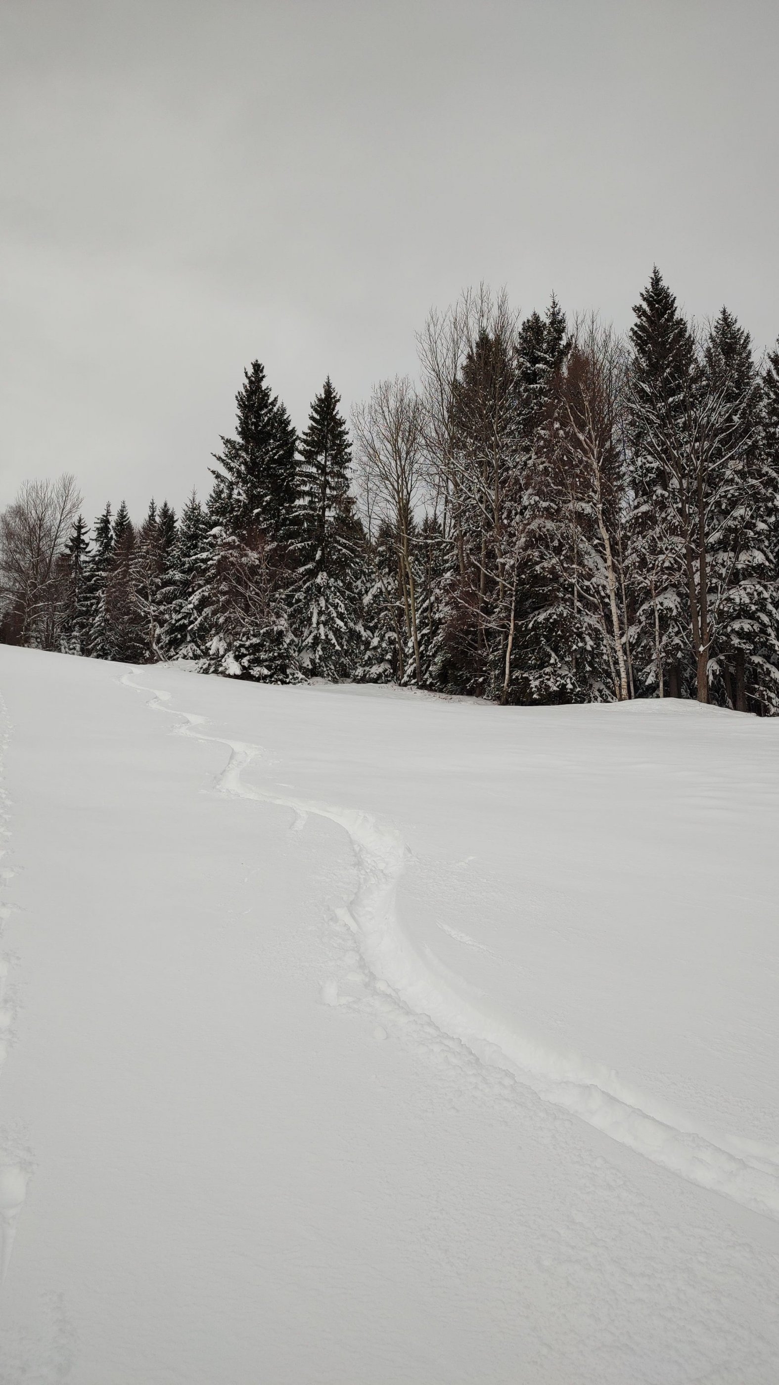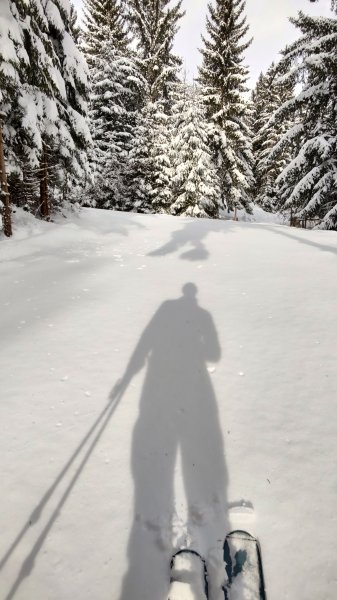 30-40cm Neuschnee auf Wiesenhängen. Kaum windbeeinflusst. Morgens noch gut zu fahren, im Laufe des Vormittags immer schwerer werdend.