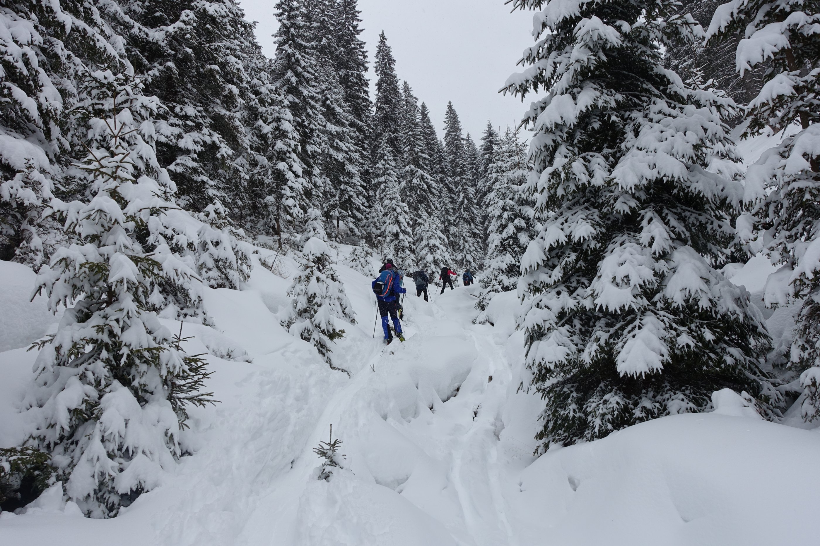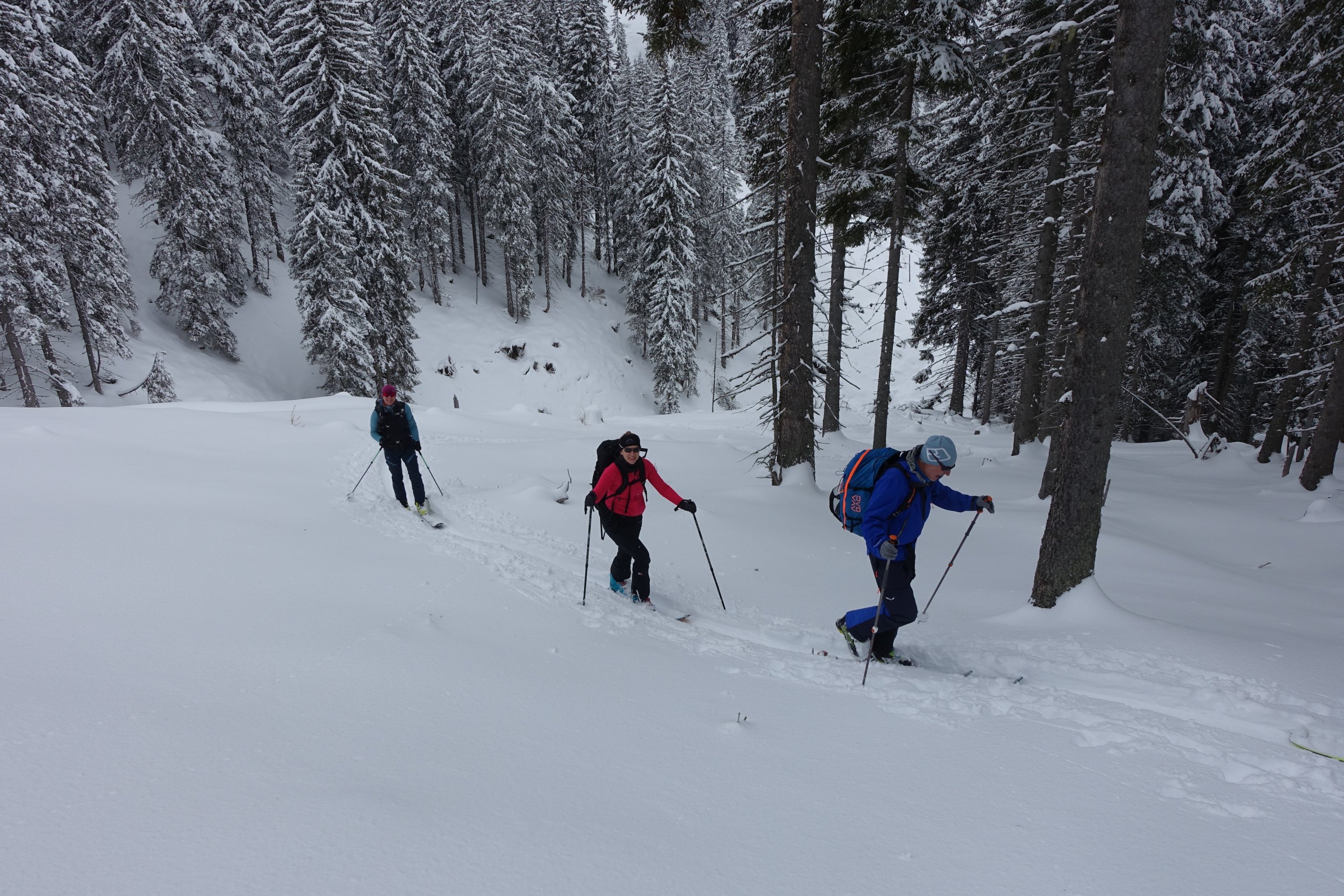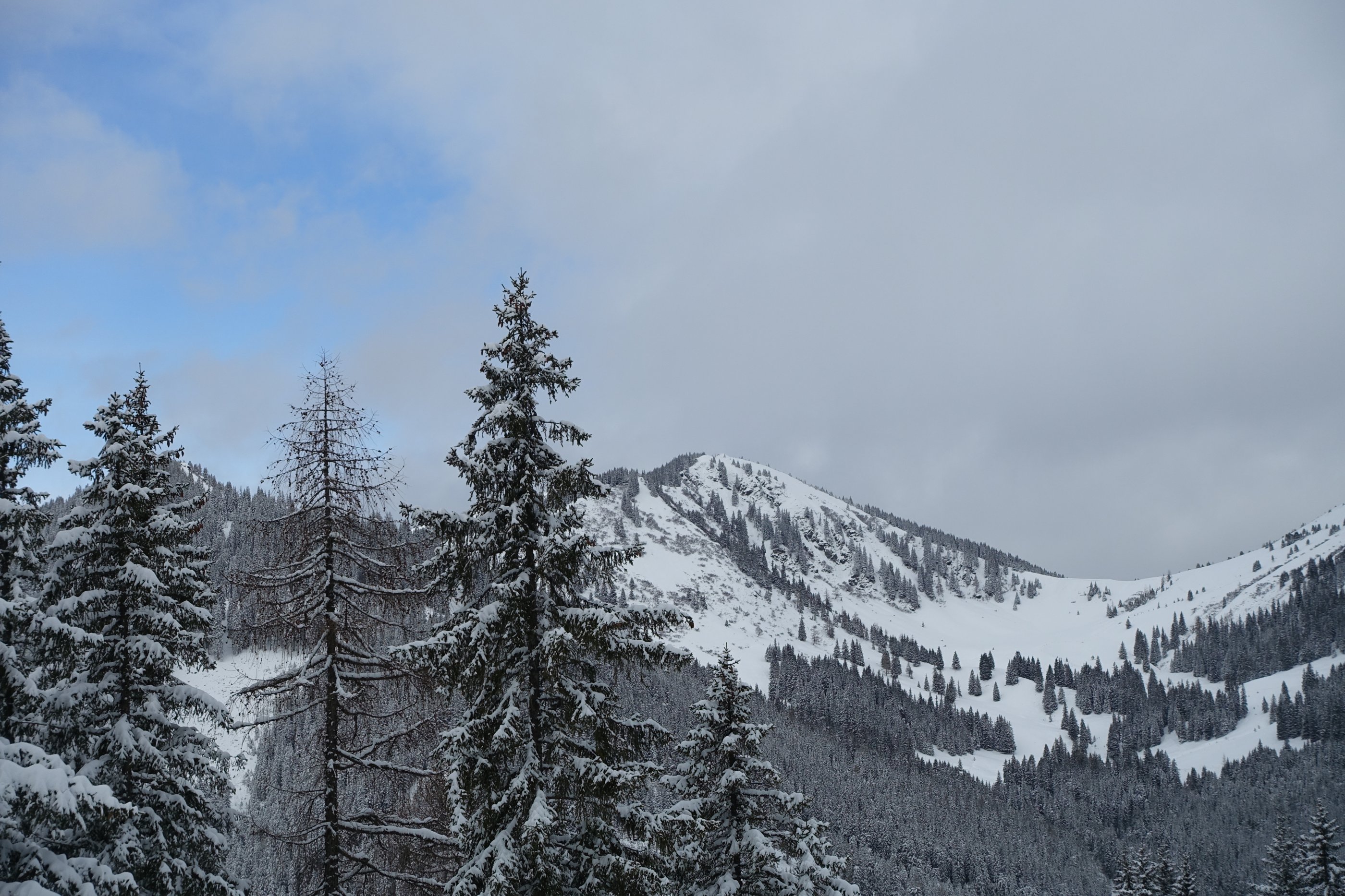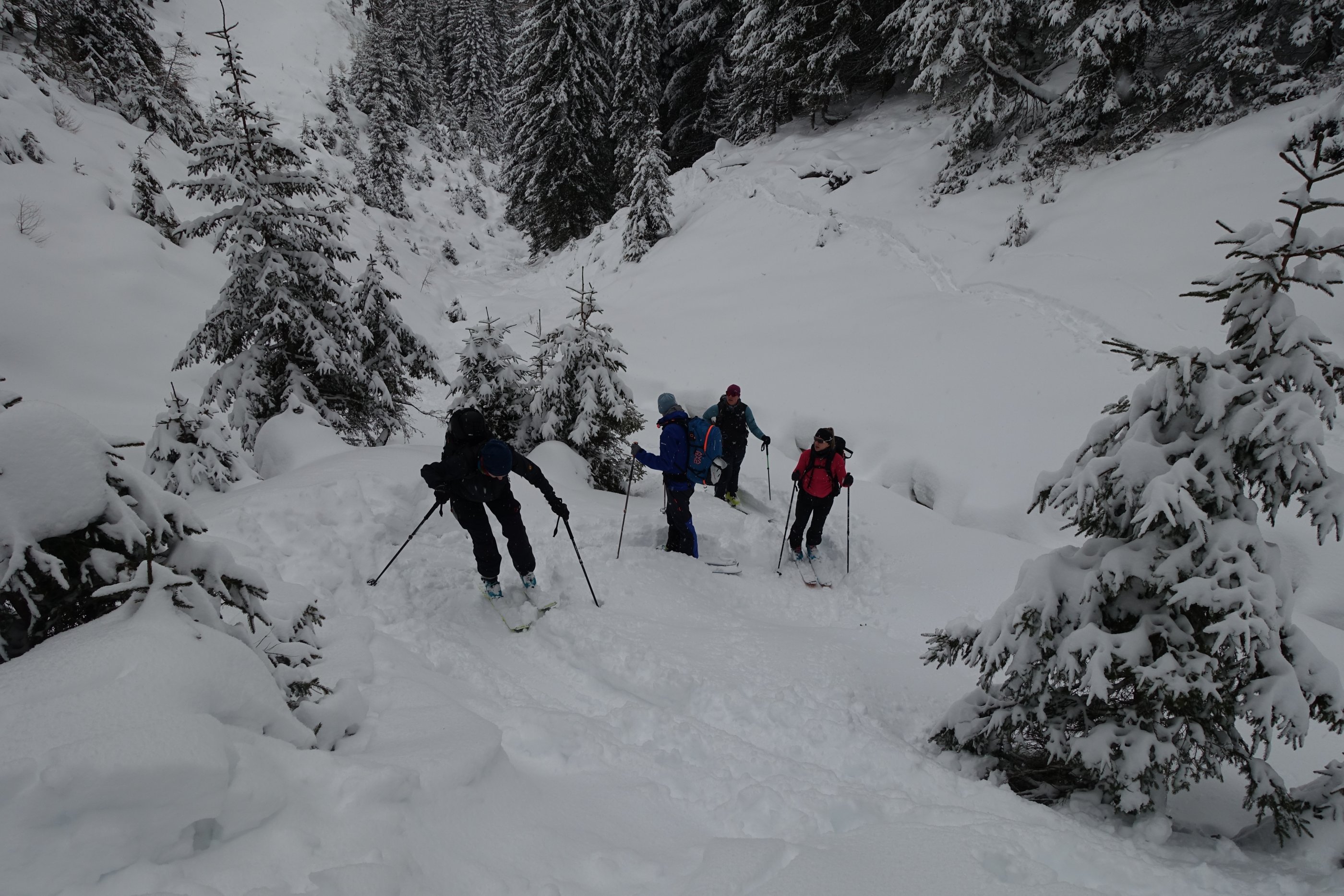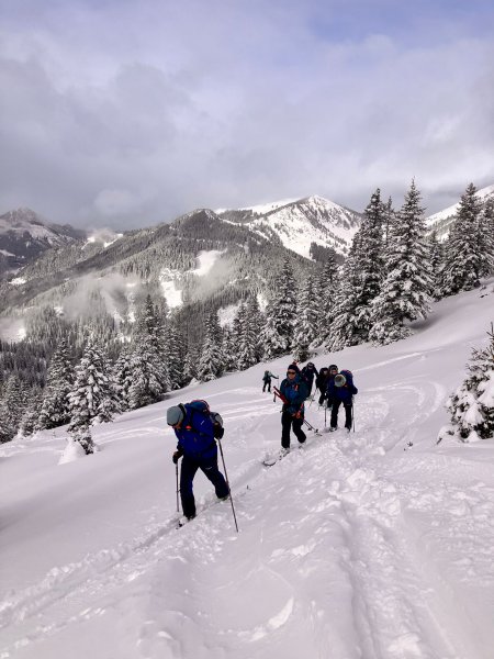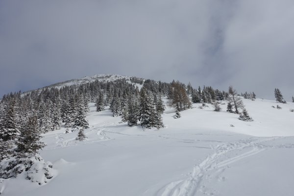 Endlich Winter, wenngleich in Summe noch immer viel zu wenig Schnee liegt. Abfahrt durch den Weitengraben nicht möglich. Schneequalität sehr gut. Überlegte Spuranlage notwendig. Über die Westflanke weitgehend mit Entlastungsabständen.