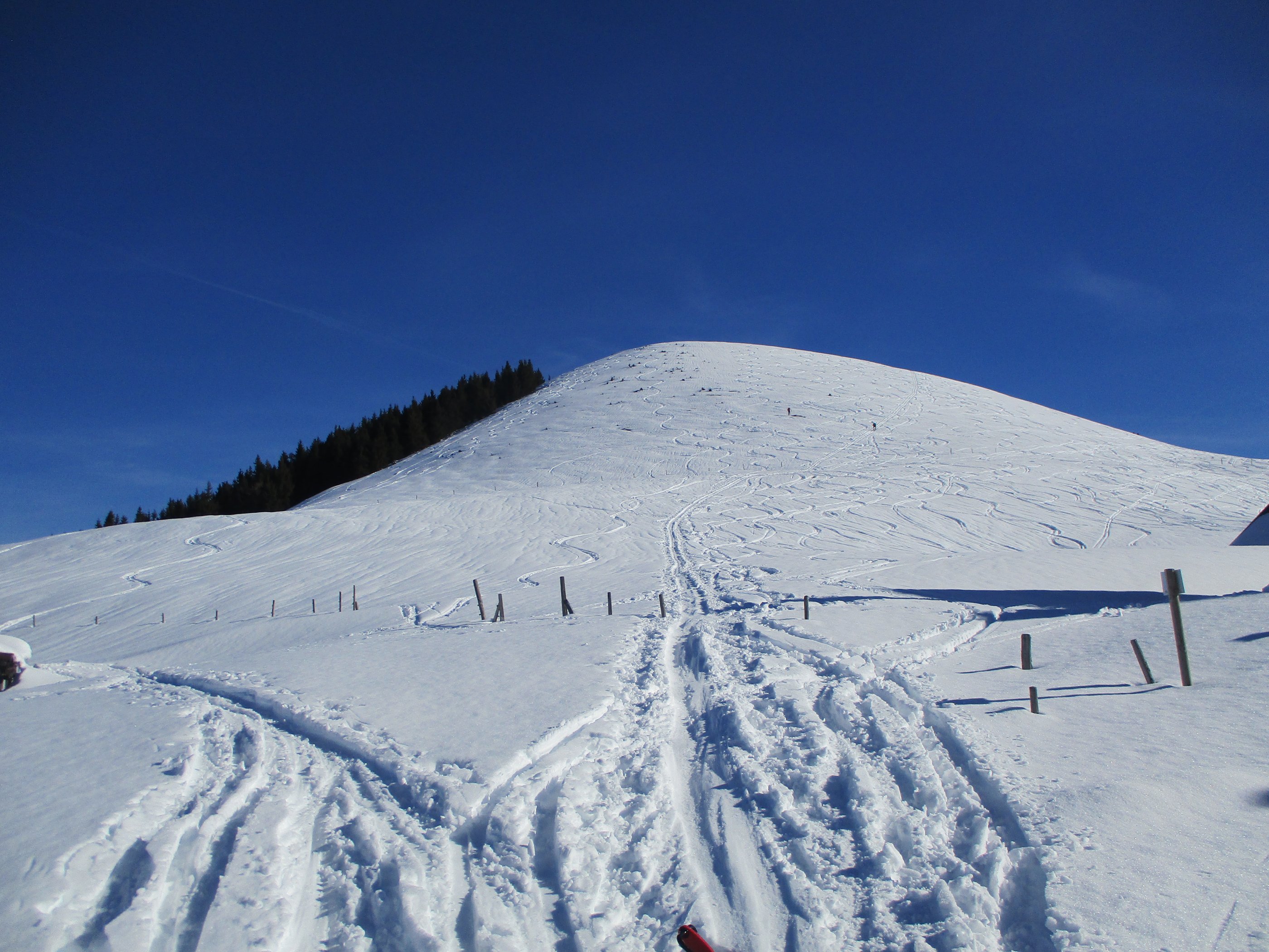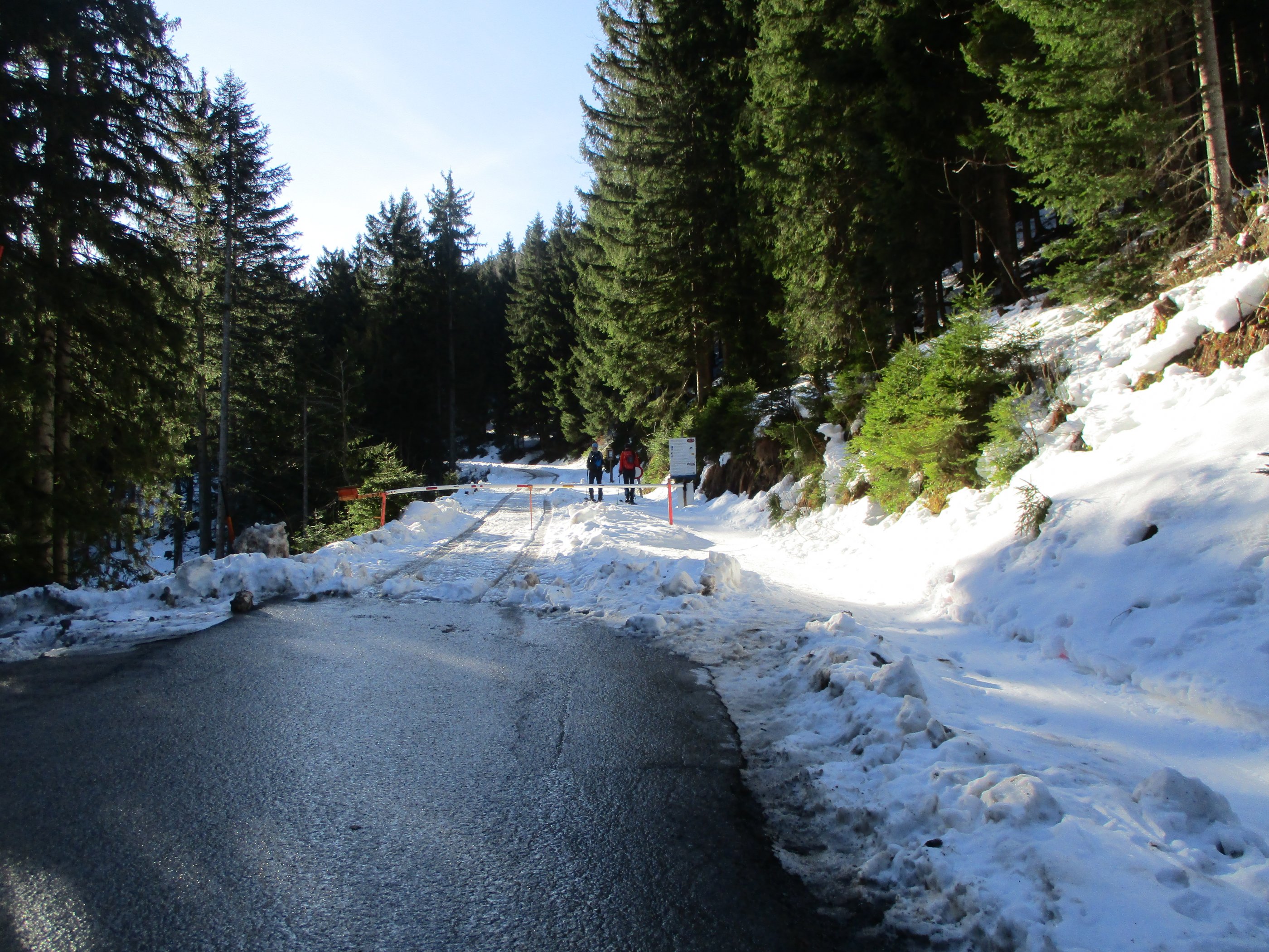 Der Parkplatz war heute gut besucht, die Maut beträgt 10 Euro. Die Mautstraße ist am Anfang ein kurzes Stück geräumt, man kommt aber auf der Seite gut rauf und runter. Heute wieder Sonnenschein und milde Temperatur dazu zeitweise ein leichter Wind. Abfahrt bis zur Enzianhütte durch den tragbaren Harschdeckel gut, auf der Mautstraße etwas holprig