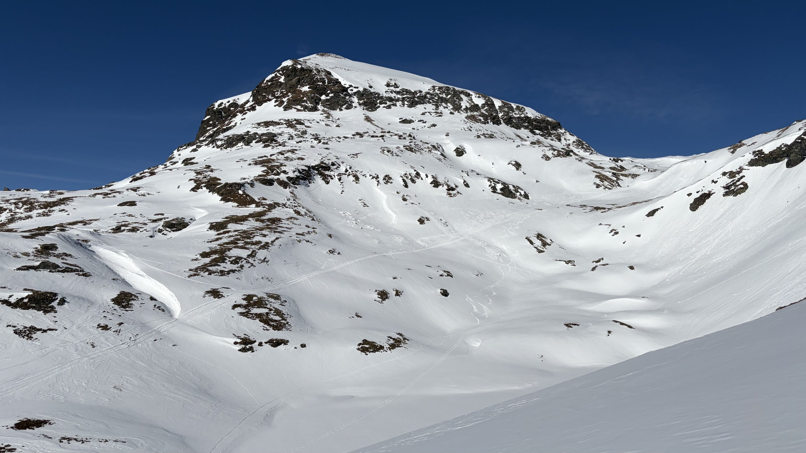Unterhalb 2.300 m gab es auf der Süd-/Westseite des Messelingkogels sehr schönen Firn bis weit hinunter.