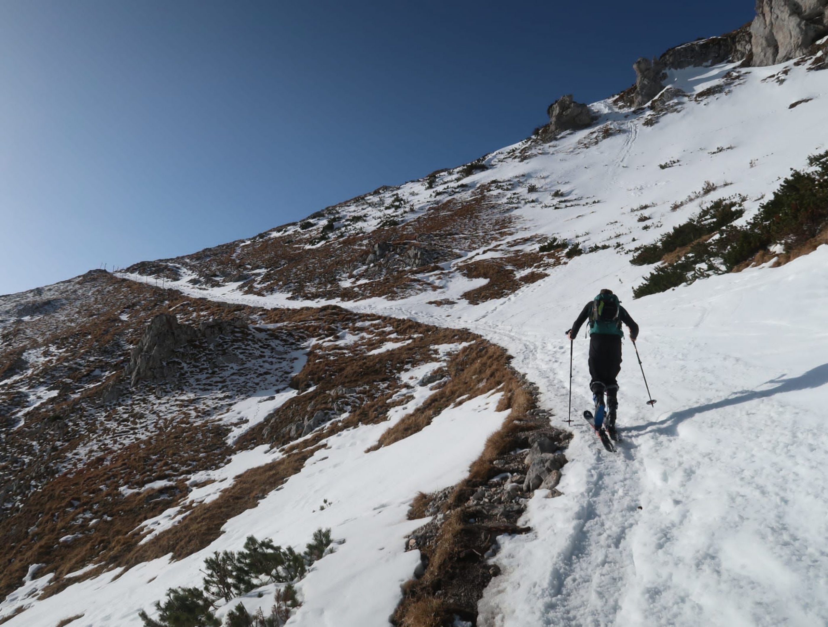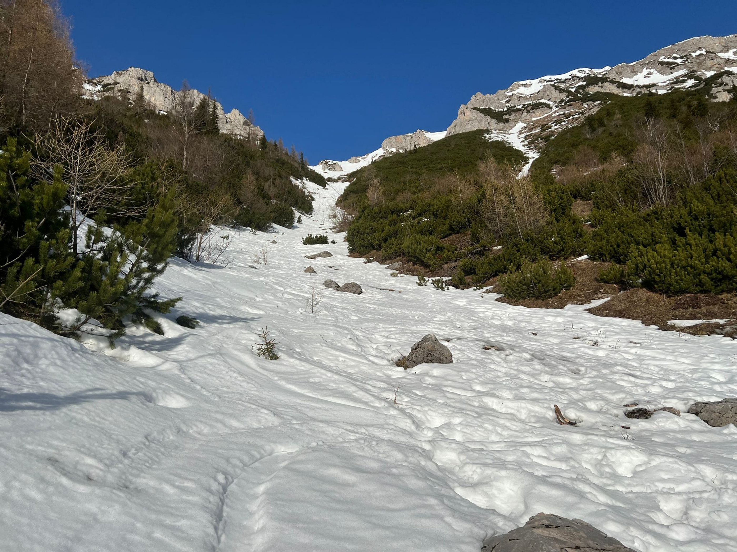Lange Mann Rinne: problemlos bis Göbl-Kühn-Steig darunter kein Schnee