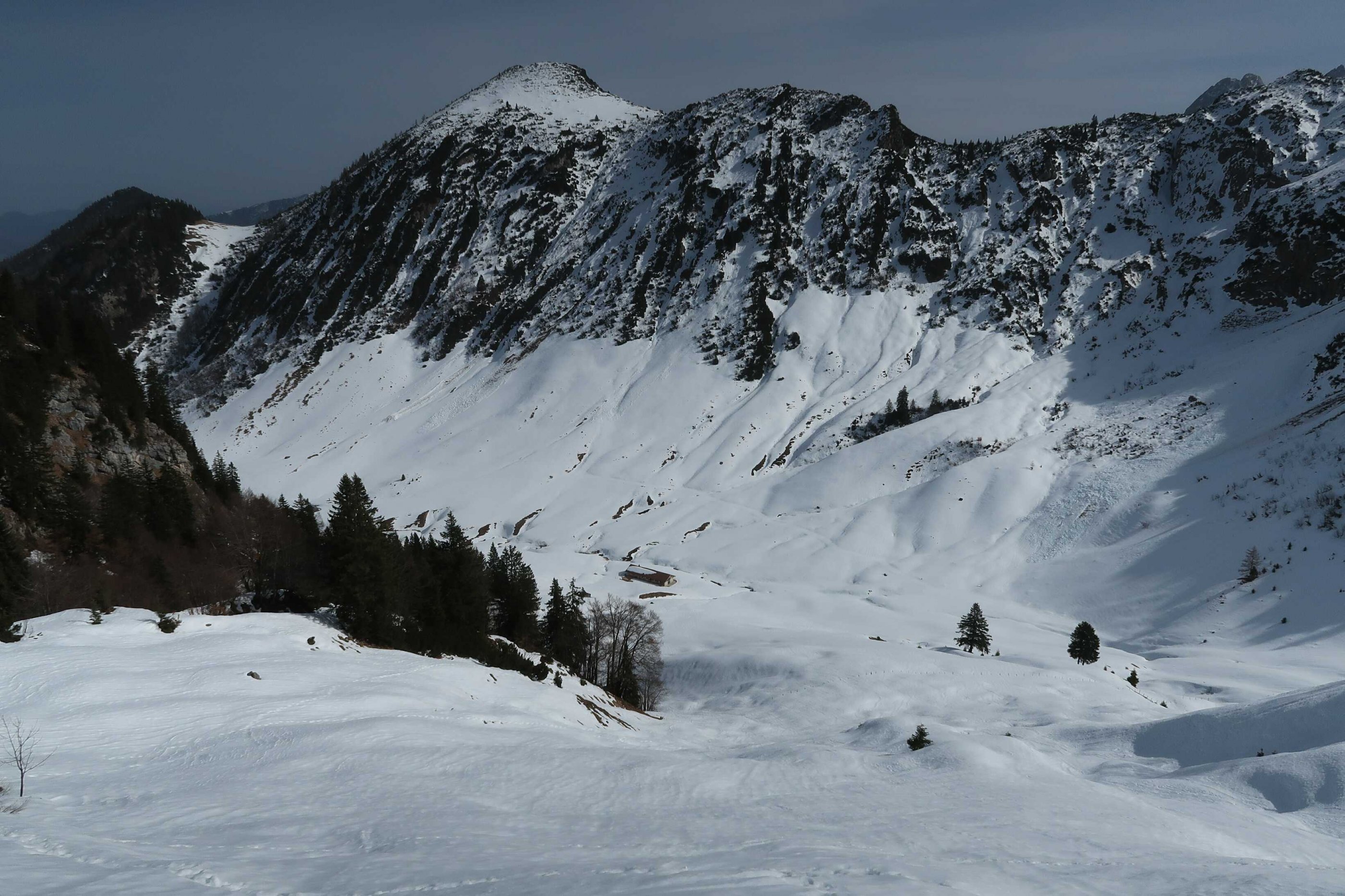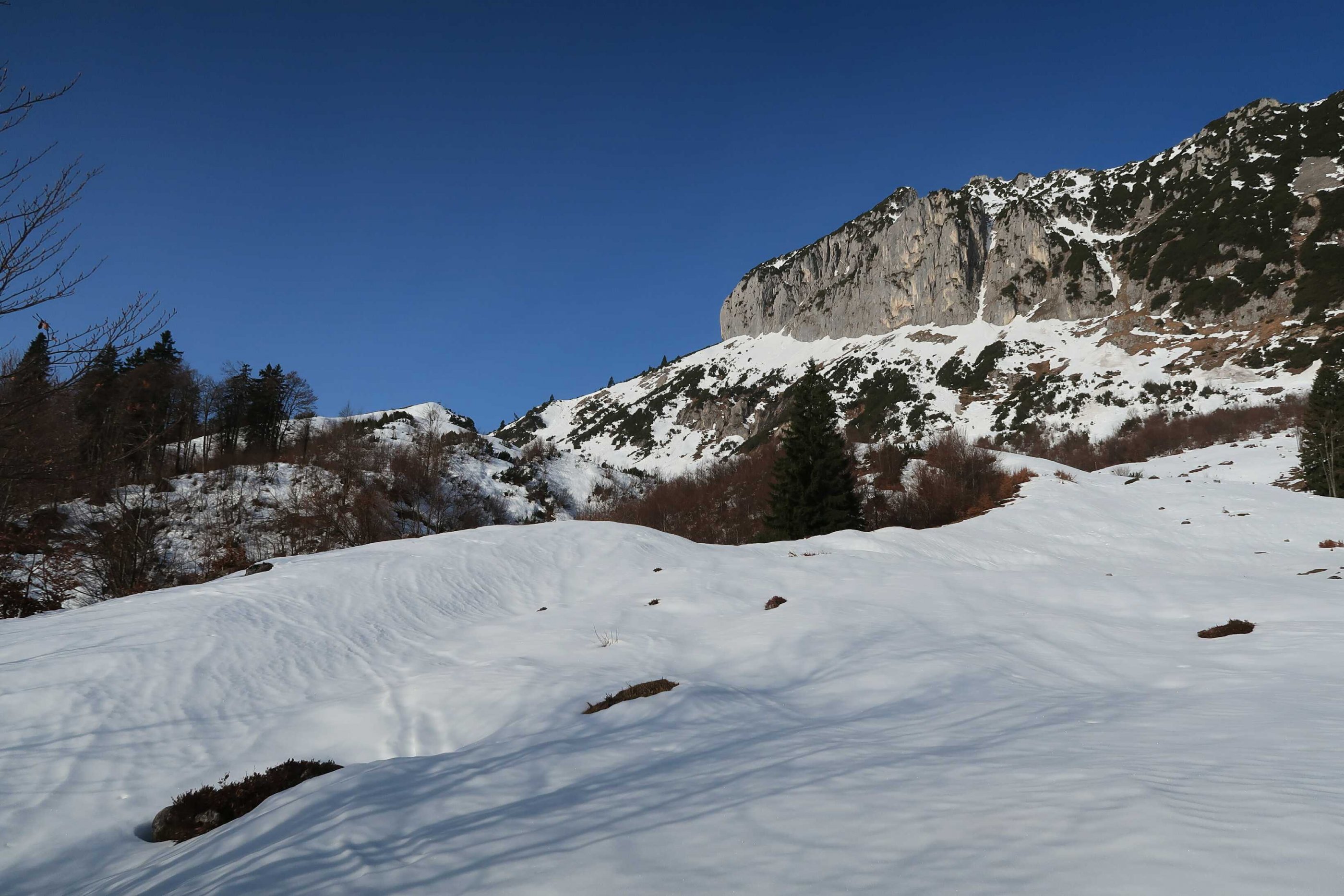 Gute Schneelage auf den Hängen unterhalb der Kleinmoosenalm