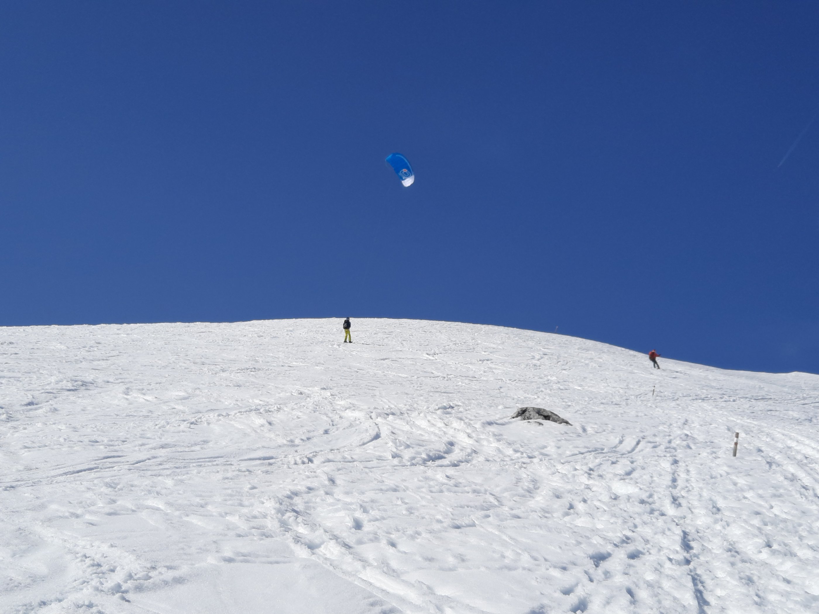 Solange es noch möglich war, wollte ich die Tour dieses Jahr noch machen. Es waren ca. 30 Sportler am Berg, mit insgesamt 3 Hunden. 4 Schneeschuhgeher, 2 Fußgänger, 3 Lenkdrachenschiefahrer, der Rest Tourengeher.