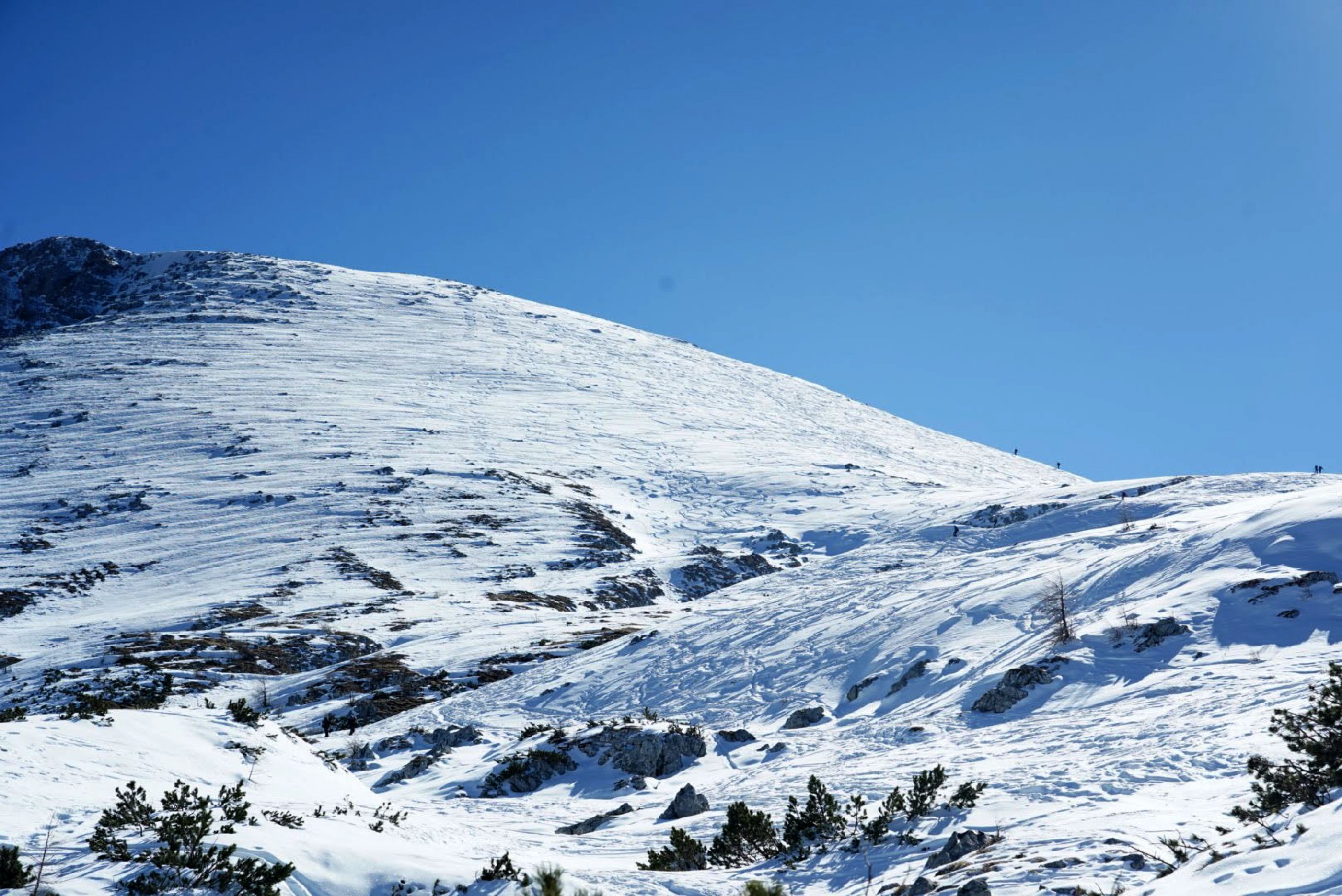 Allgm. Wenigschnee. Am Schneibstein im Gipfelberreich wirkt die Schneedecke auch schon gut gesetzt.