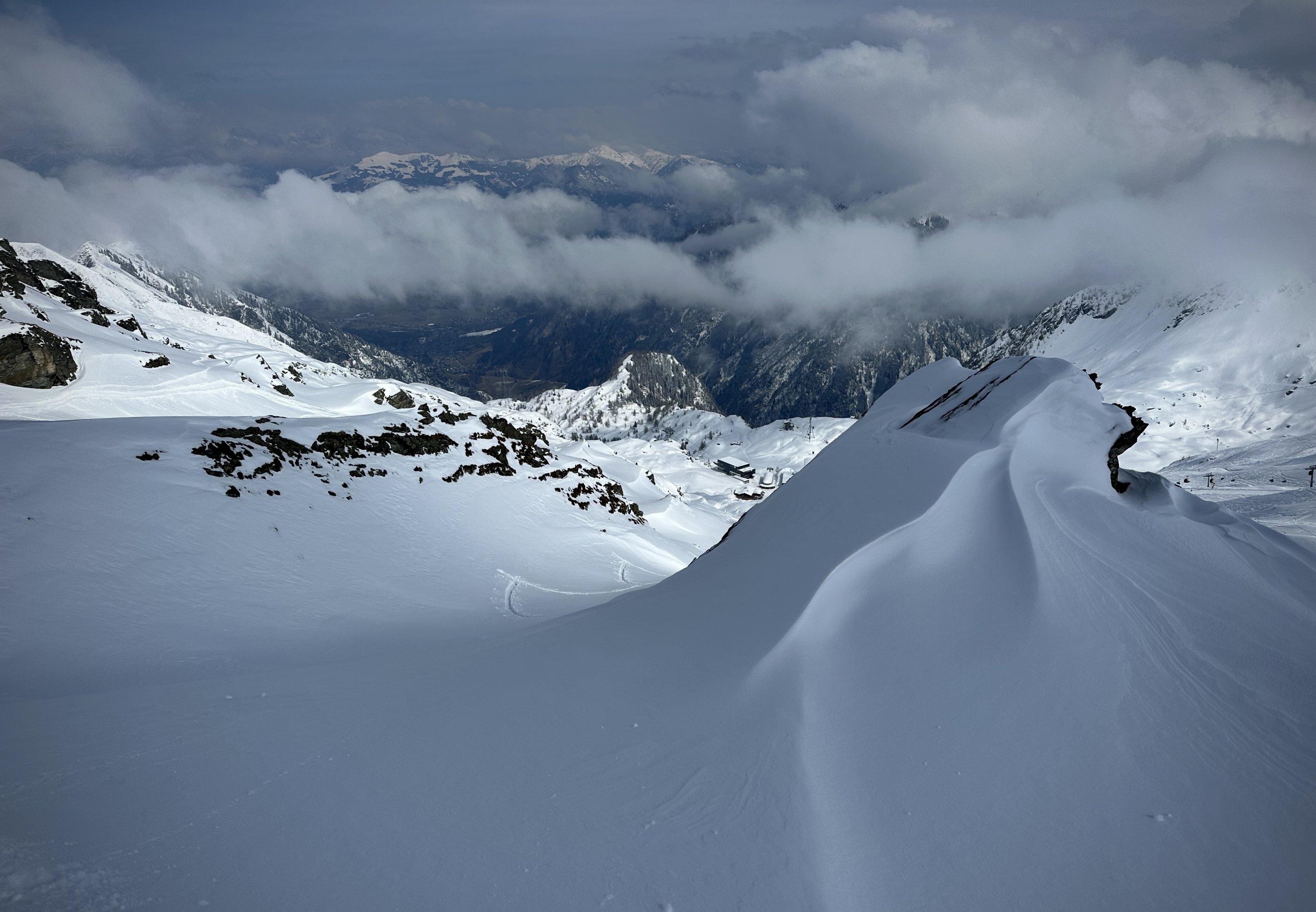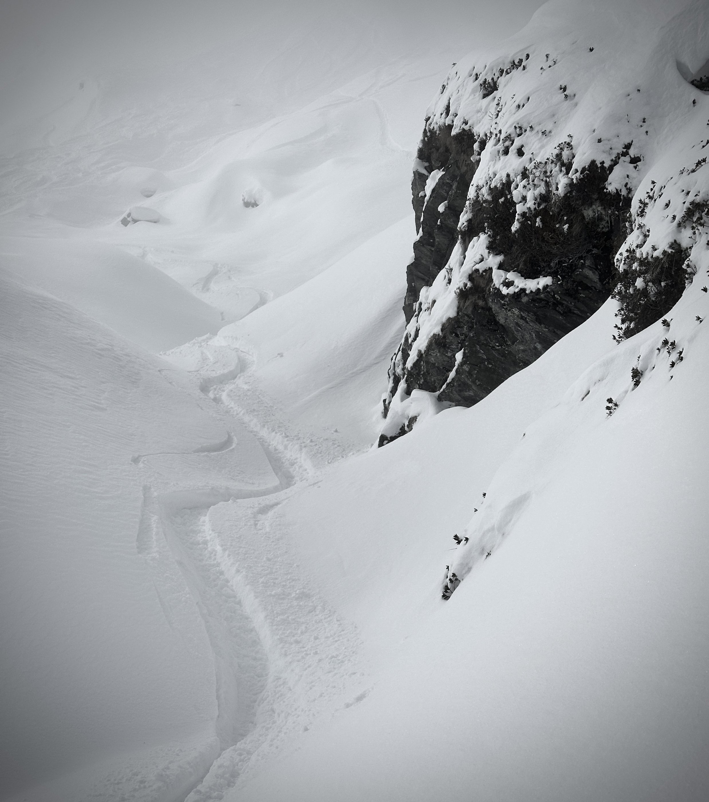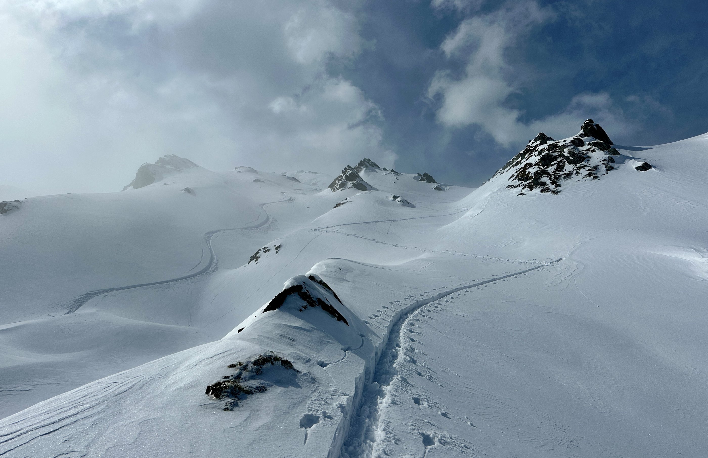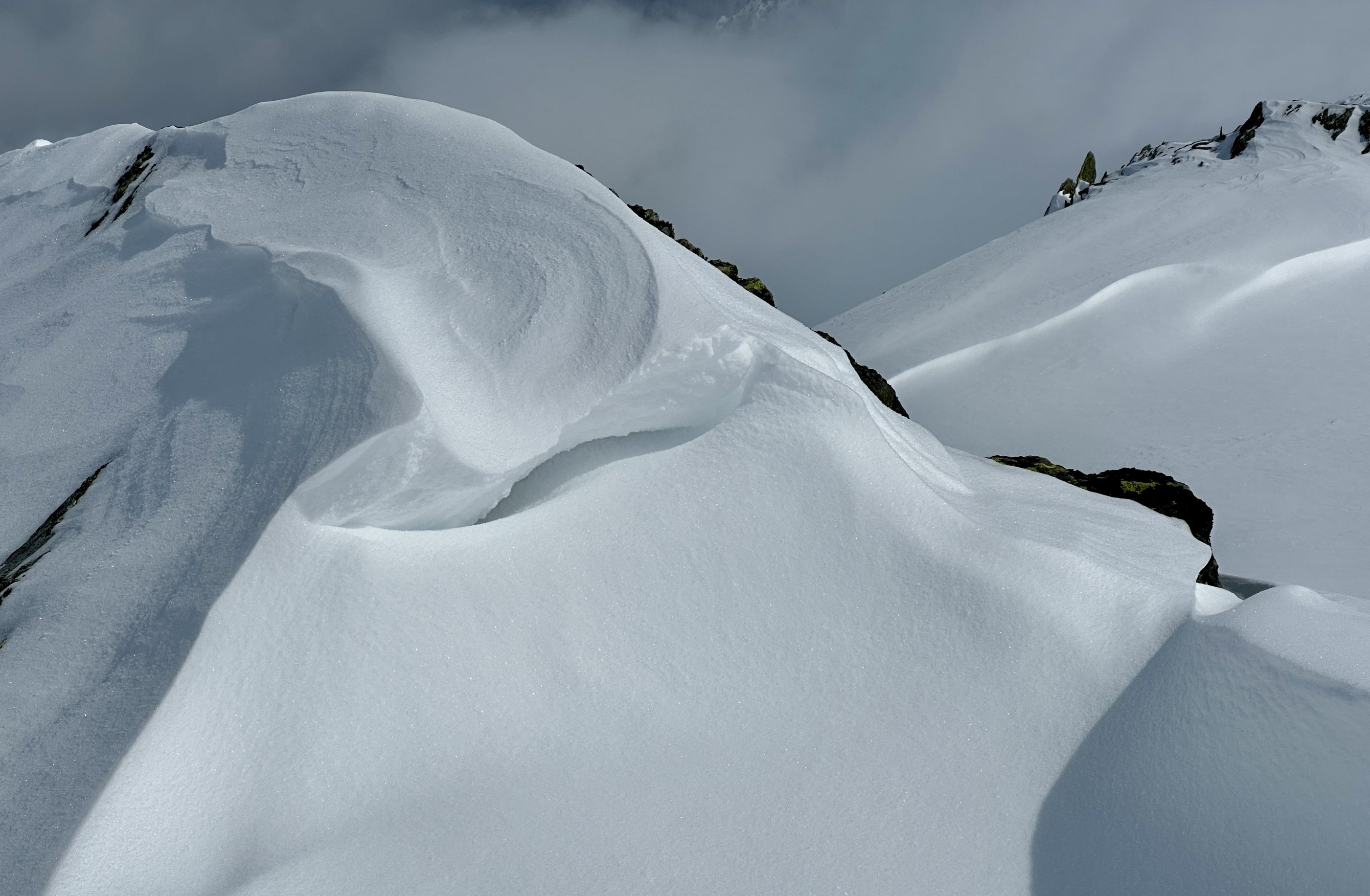 In den kammnahen Bereichen stark verblasen, Triebschneefelder