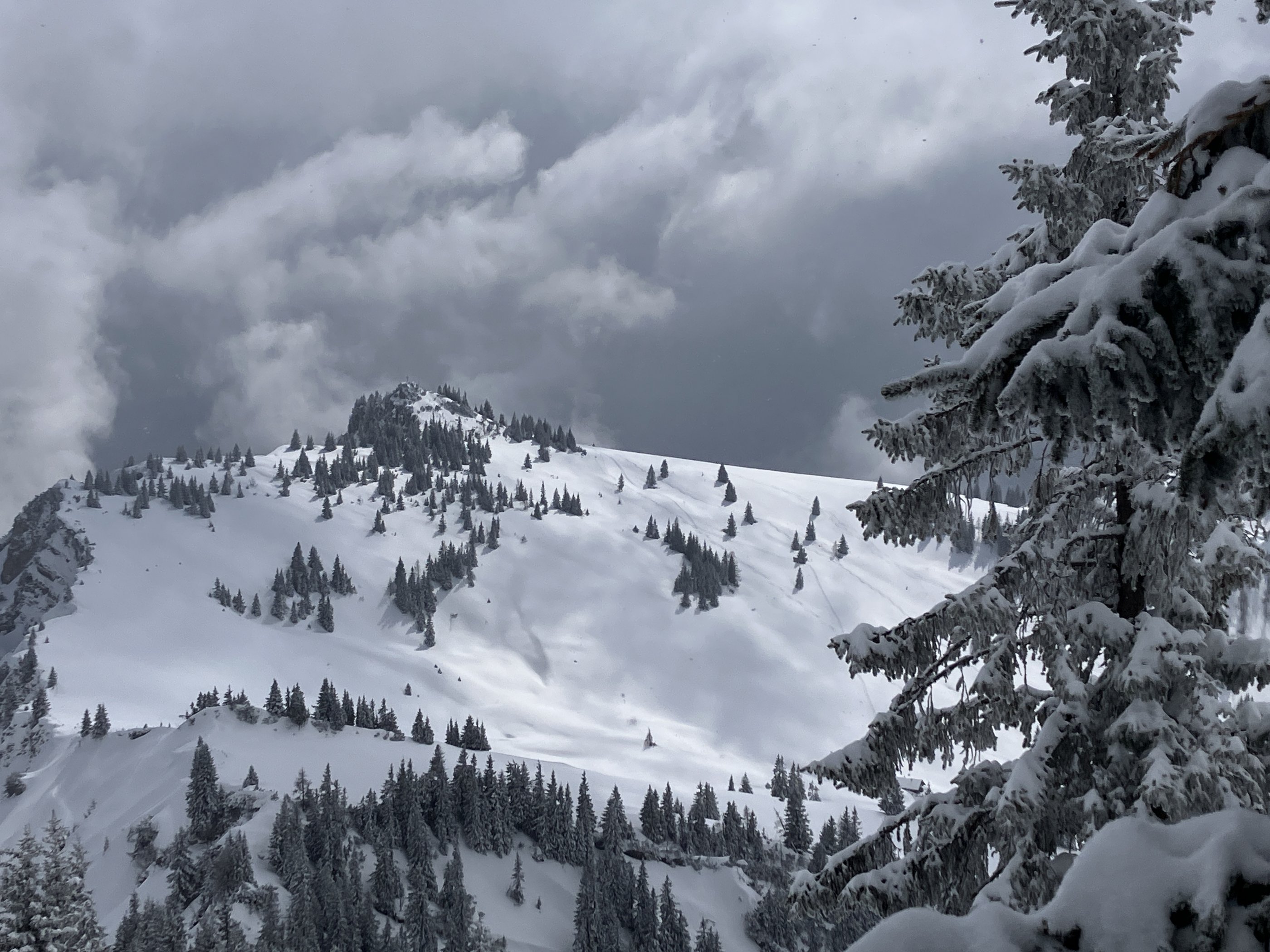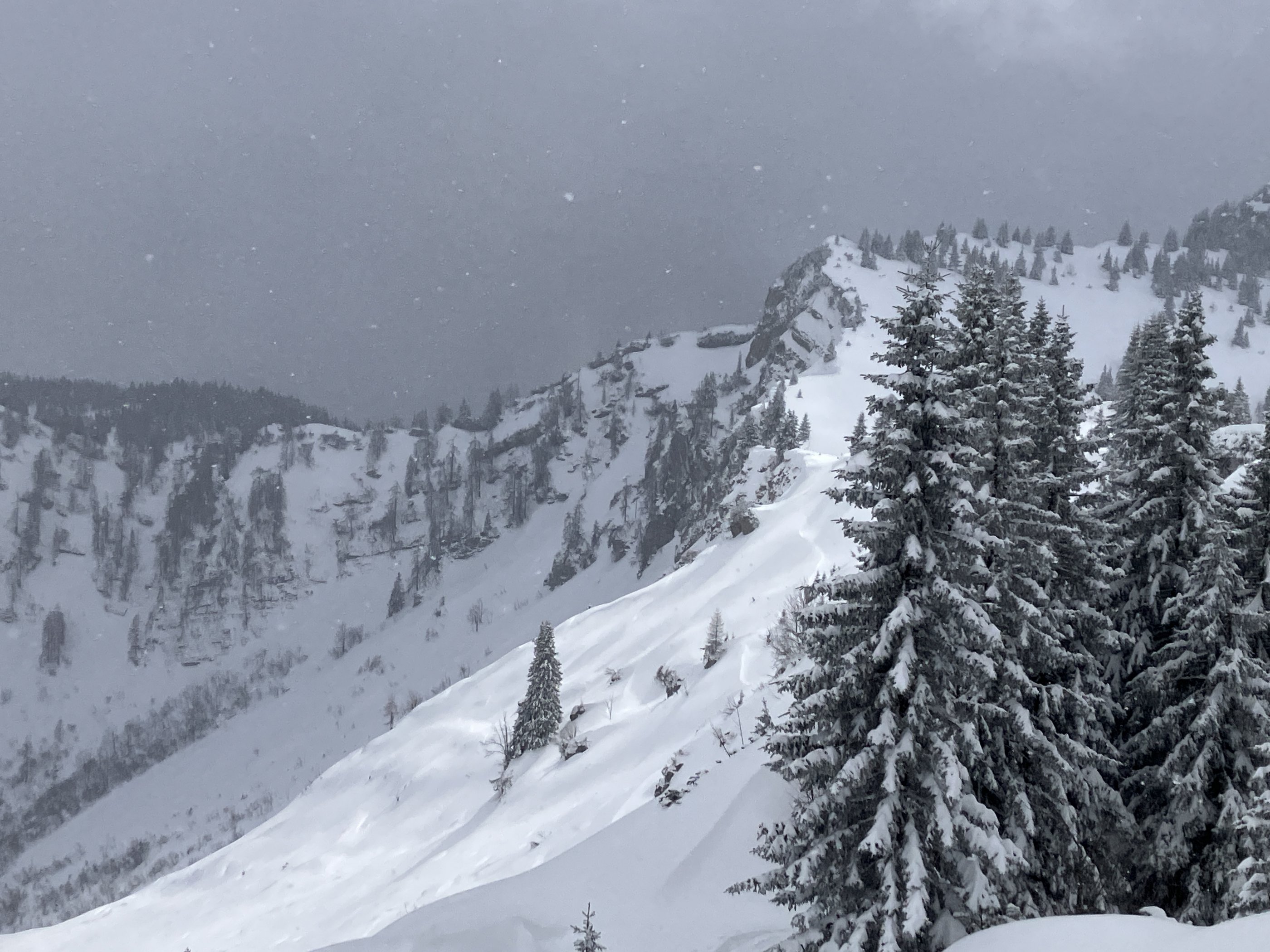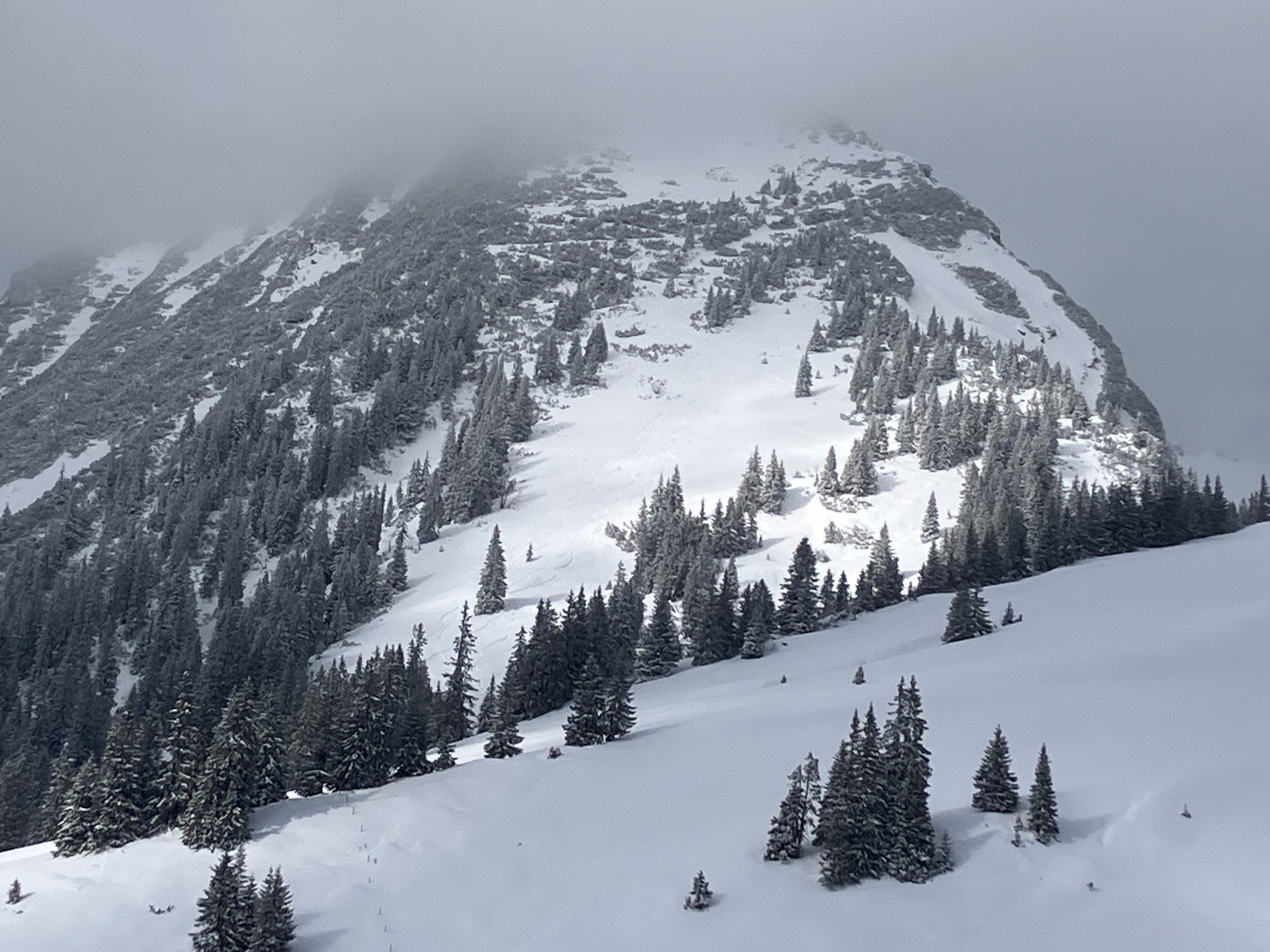 Die Westhänge vom Peitingköpfel waren deutlich eingeweht.