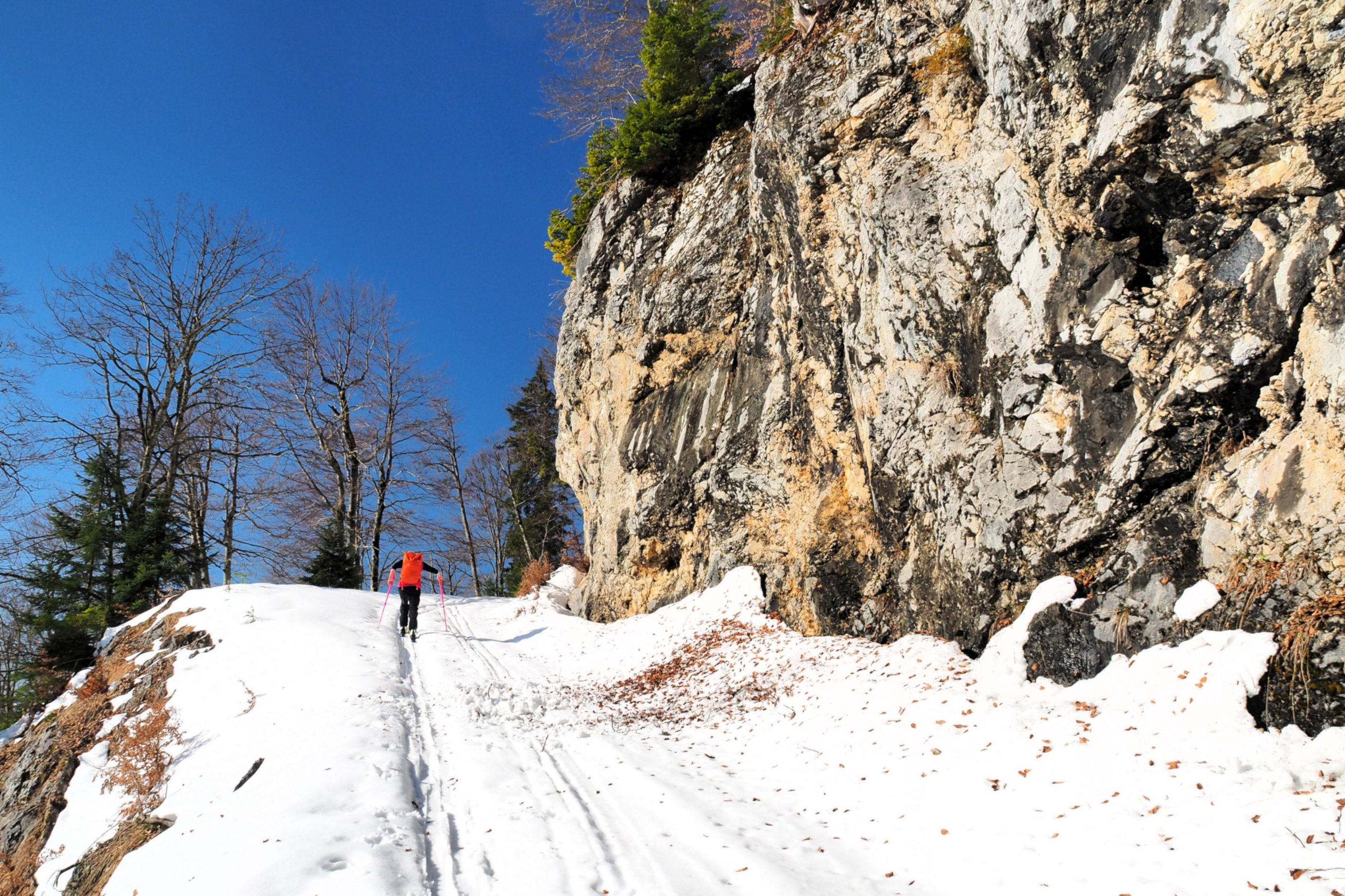 So. Sulzberg; Im Fadental rundum am meisten Schnee, wird bei diesen Temperaturen natürlich schnell tief, aber noch ordentlich und OK. Leider haben uns Schneeschuhhatscher die ohnehin stumpfe Spur über die Forststraße tief zertreten...