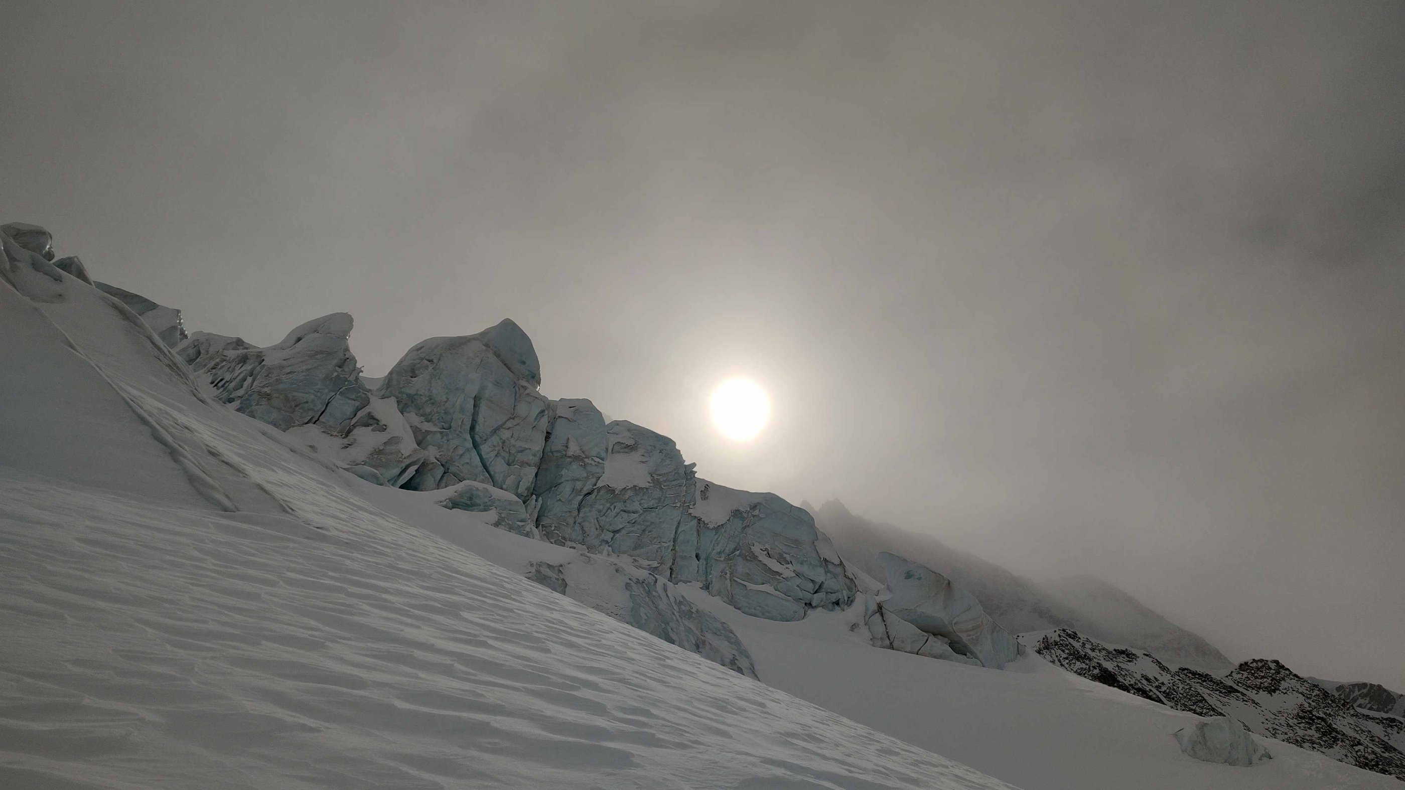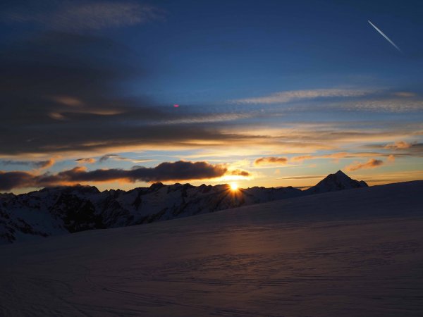 Schneelage generell nicht allzu üppig, aber ausreichend. Alle Touren machbar, Gletscherspalten großteils gut verfüllt. Schneeoberfläche in allen Höhen stark windbearbeitet, tw. eisig. Südseitig bereits bis weit hinauf schneefrei.