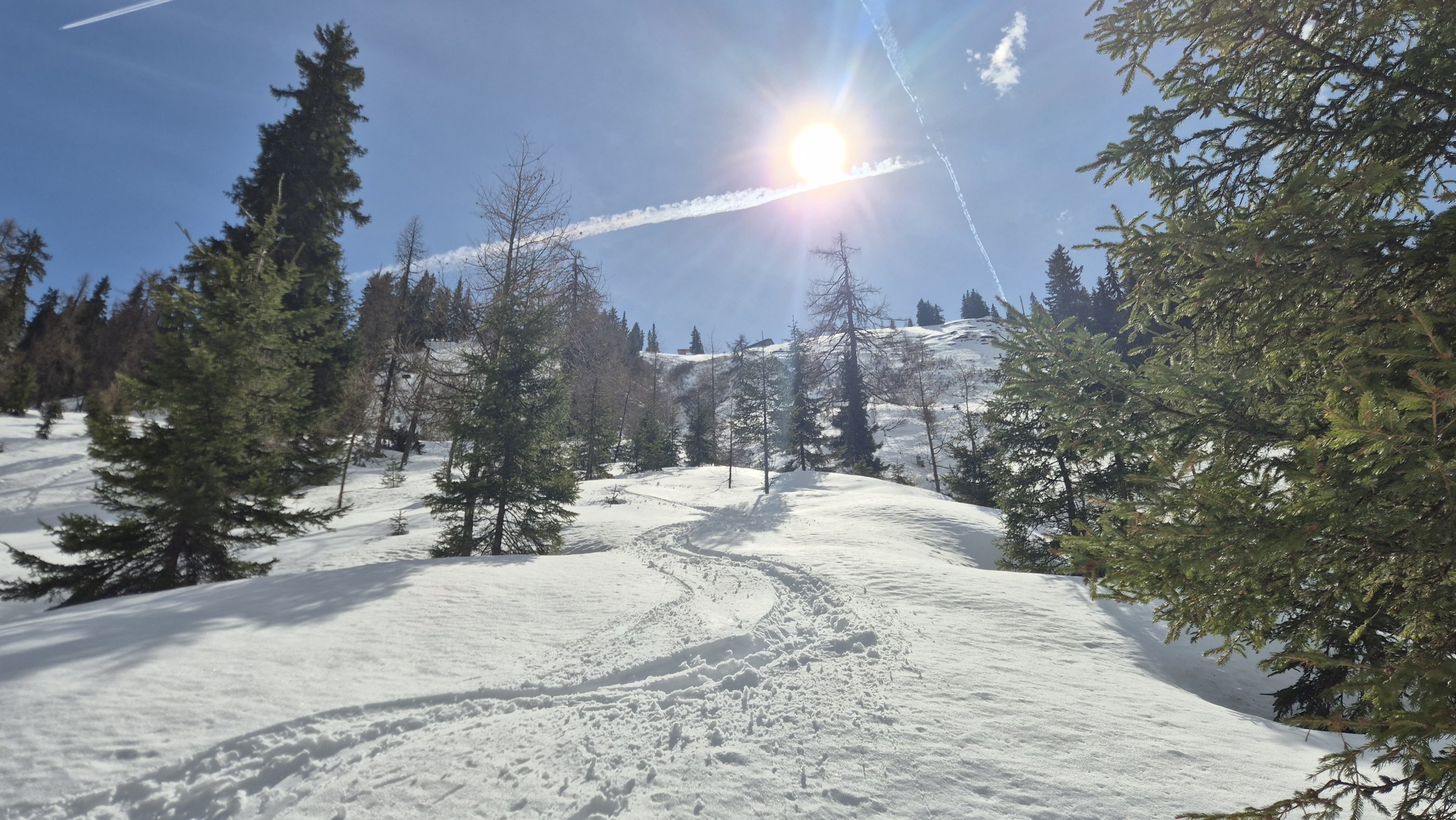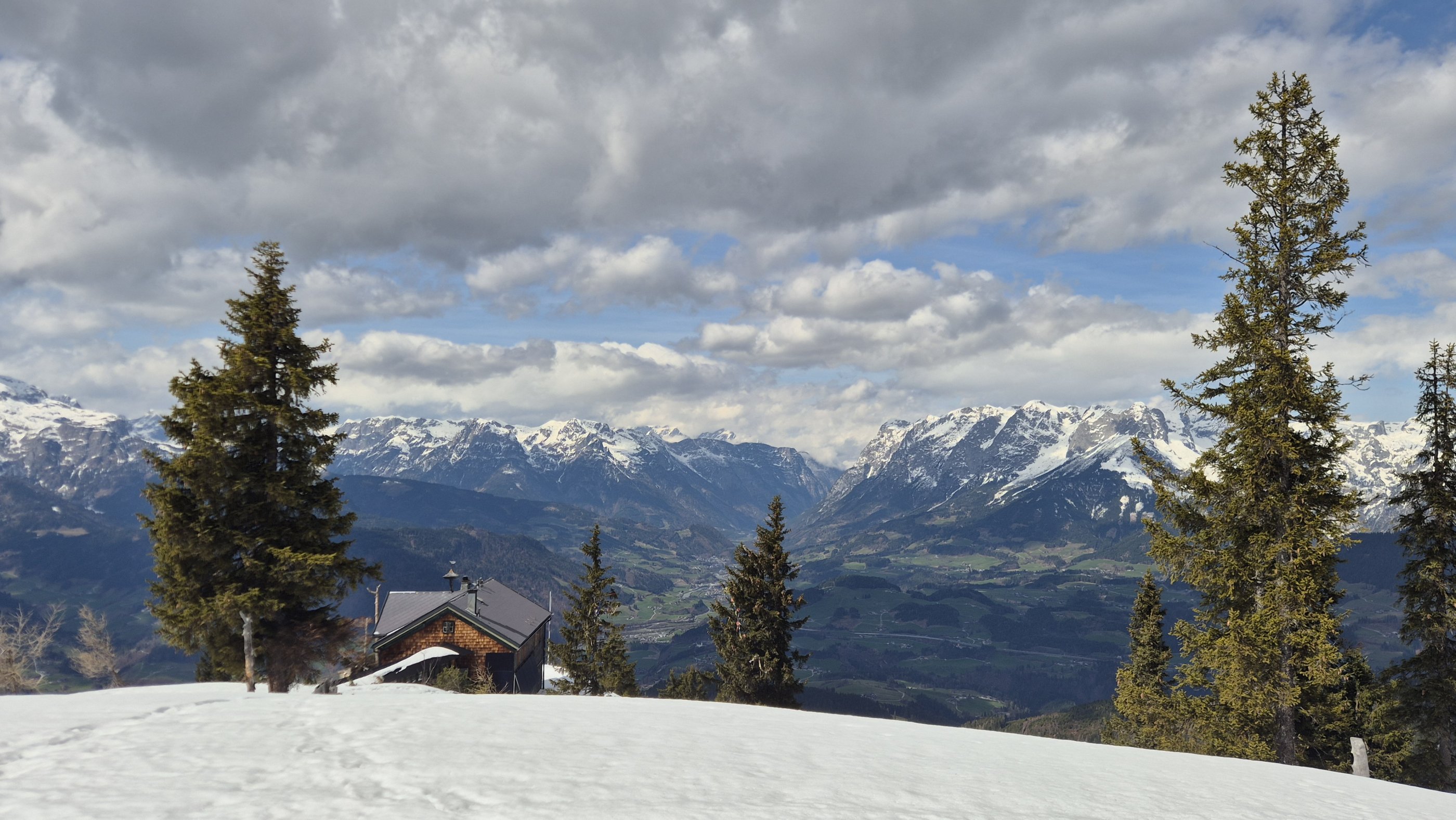 Zum Gehen zu viel Schnee zum Schifahren sind die 400 hm fast zu wenig; aber auf einem Hausberg sieht man das nicht so eng.