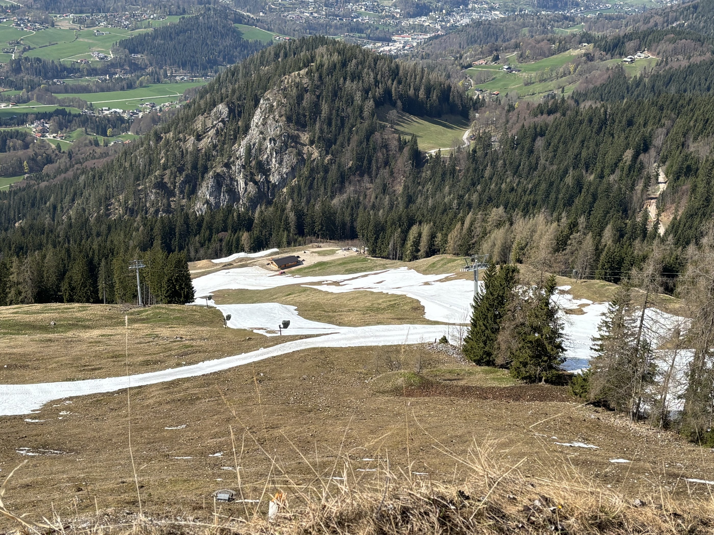 Am Jenner ist durch Kunstschnee noch die Abfahrt bis zur Mittelstation zu machen. Nette Nachmittagsunterhaltung. Die Jennerbahn ist derzeit nicht in Betrieb.