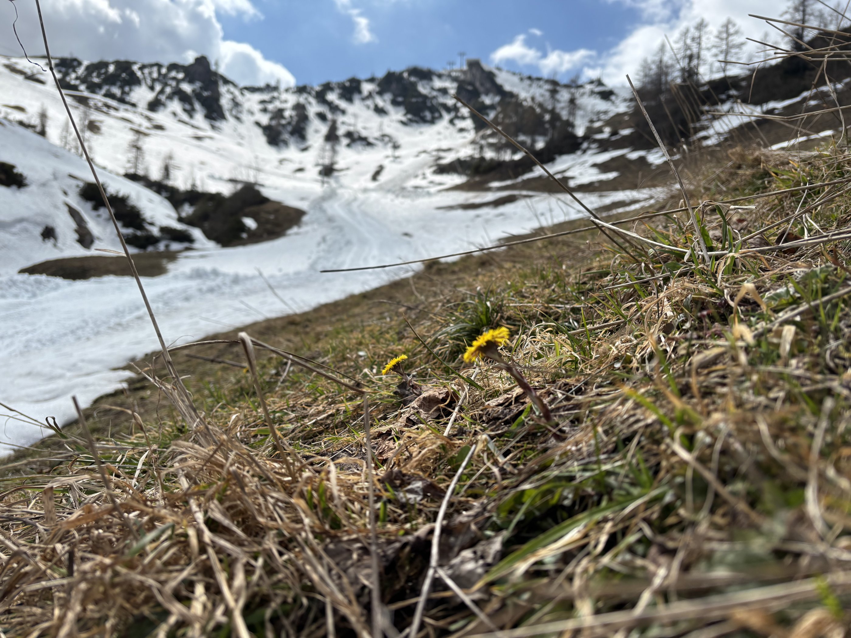 Präparierter Kunstschnee, der auch um vier Uhr nachmittag noch schön zu fahren ist. Auf der Schattseite war auch der Tiefschnee gut zu fahren da die Sonne oft von Wolken verdeckt war.