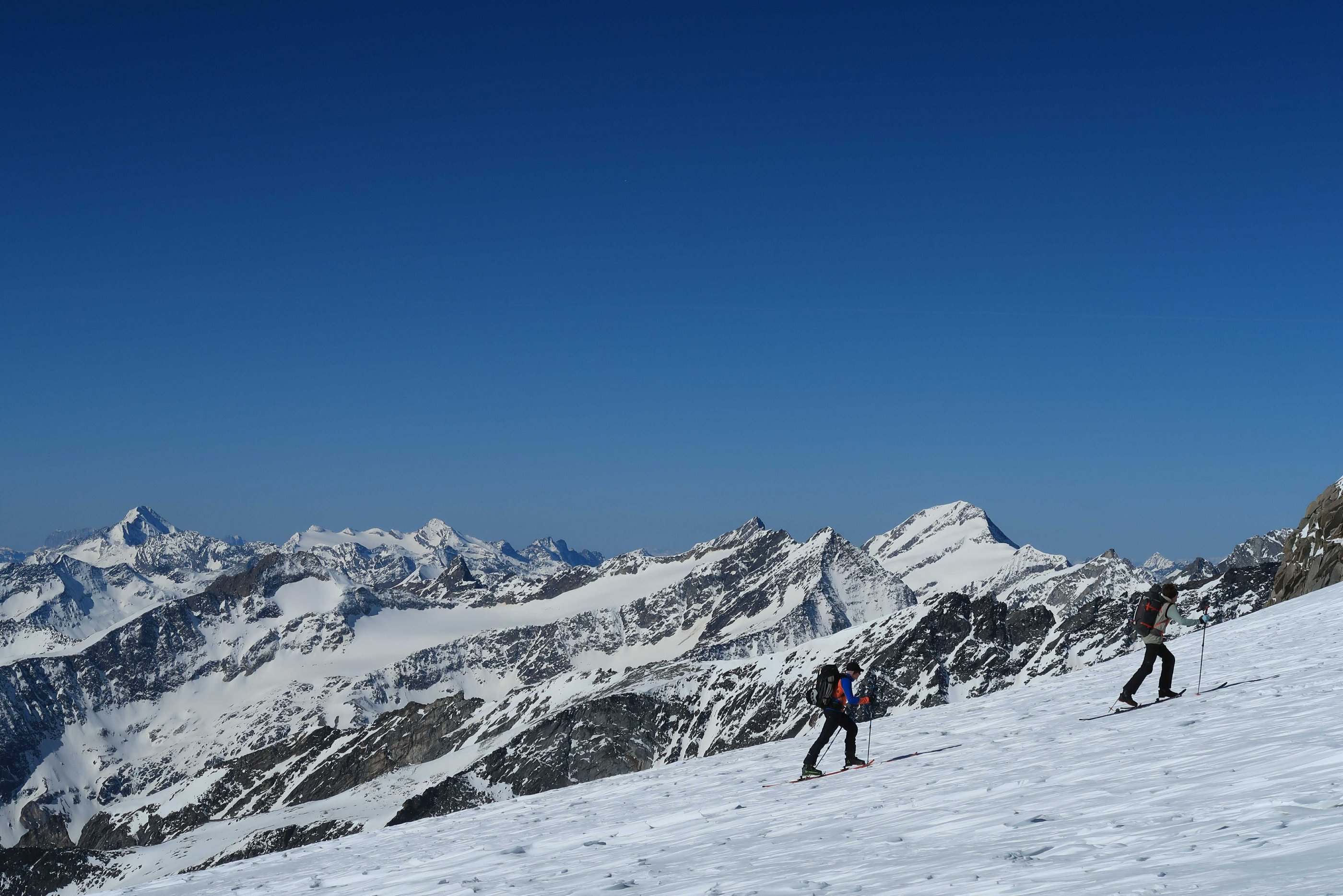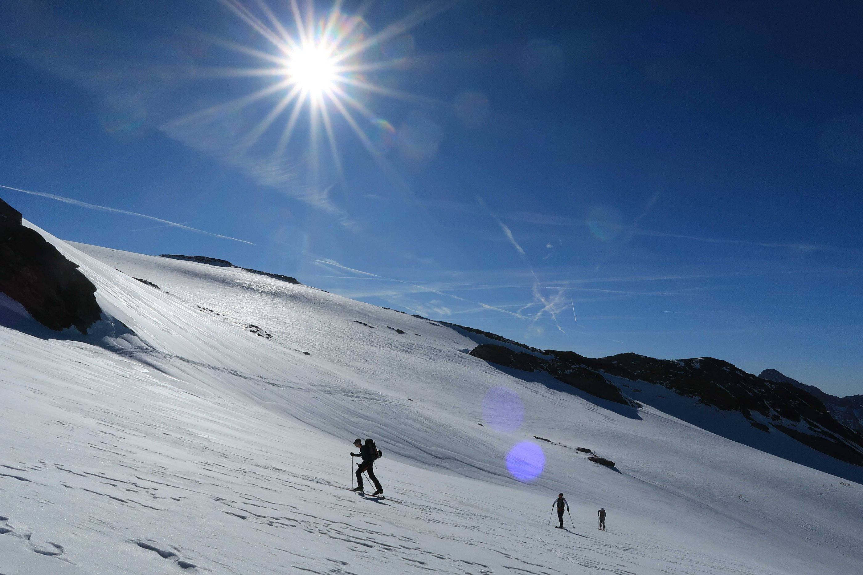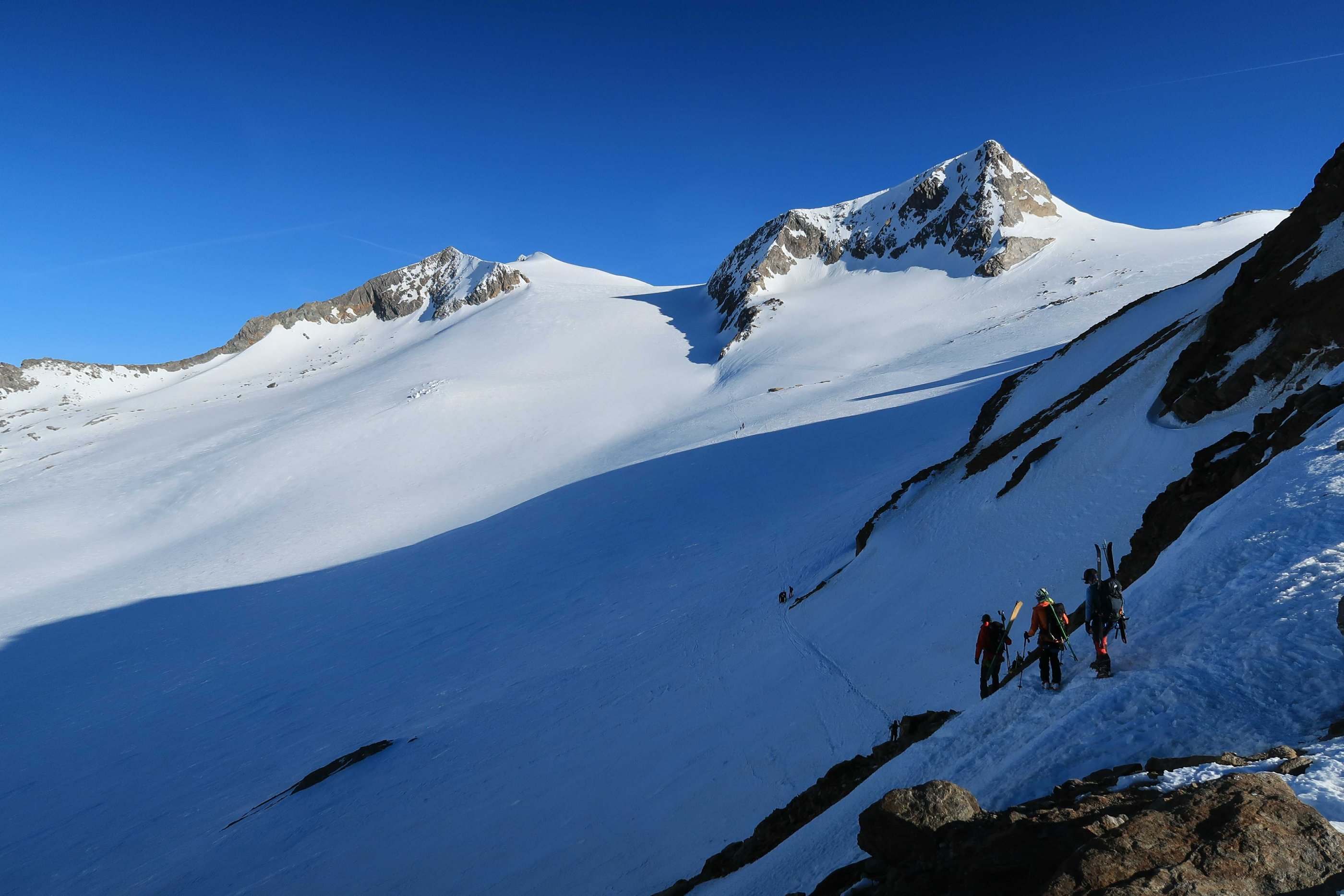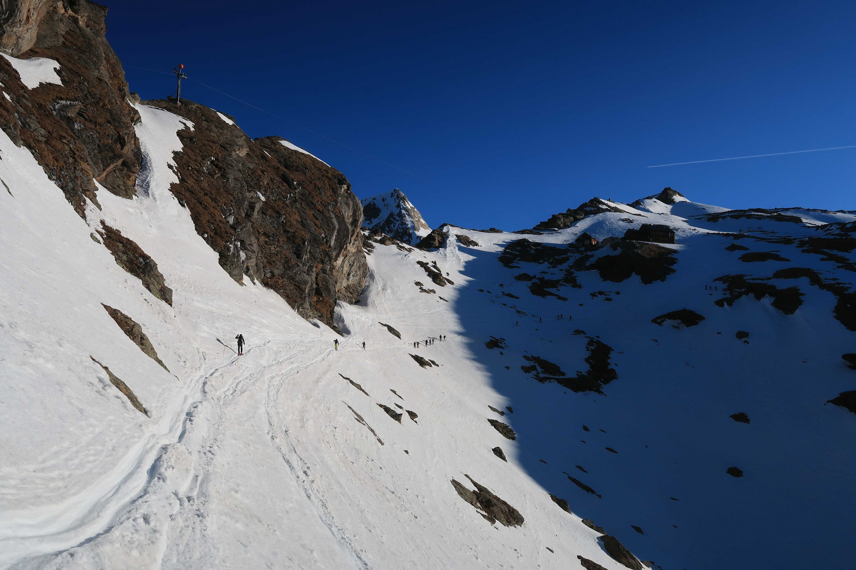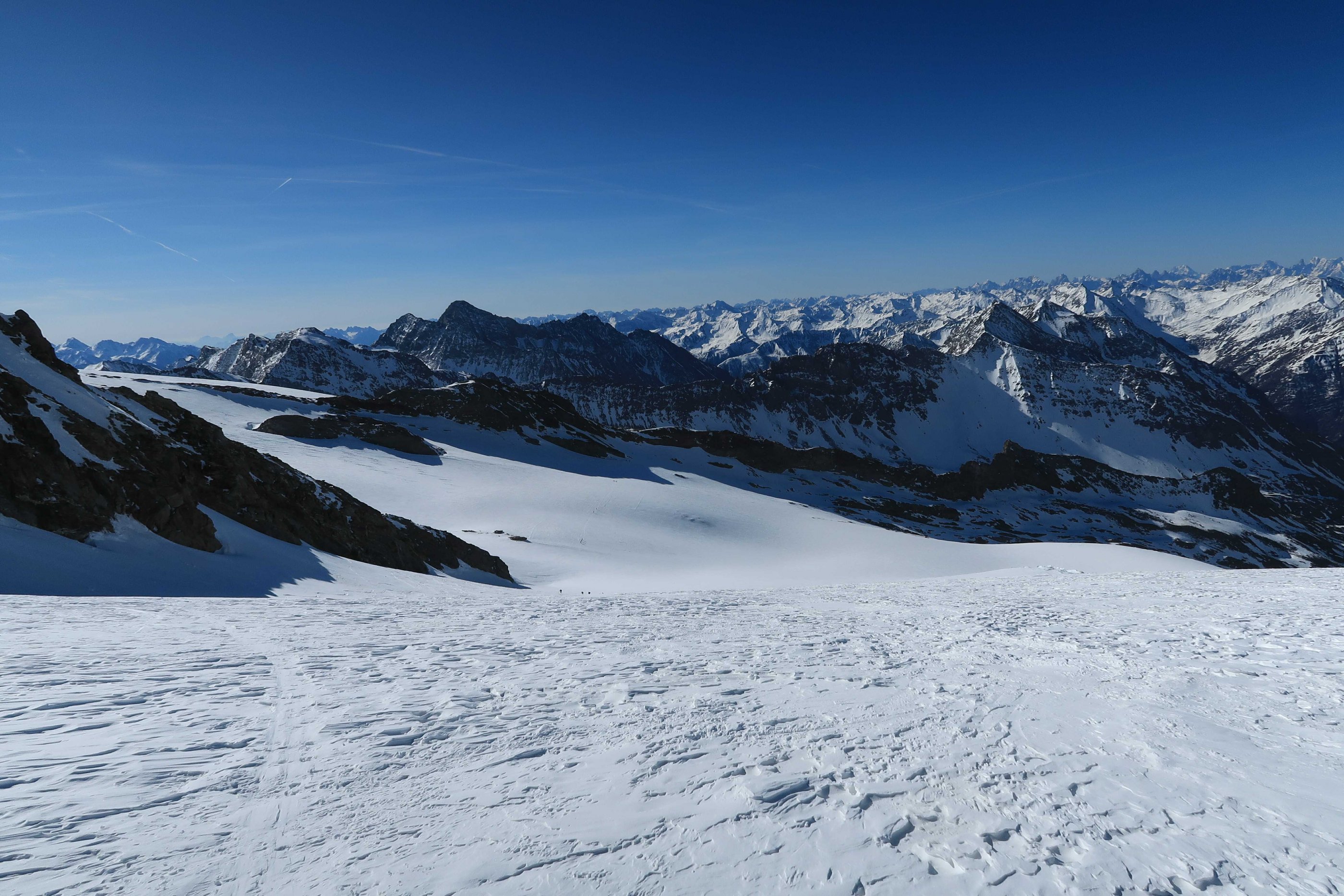 Vom PP der Johannishütte (1480) am frühen Morgen zur Johannishütte (2121) geradelt (es gibt auch ein Venedigertaxi, mit dem man dort hin kommt). Zu Fuß auf dem meist aperen Sommerweg bis auf ca. 2350m. Dann mit Ski auf hart gefrorenem Schnee weiter zum Defereggerhaus (2963). Ca. 100Hm weiter oben ist der Abstieg vom Mullwitzaderl zum Inneren Mullwitzkees. Für den Abstieg kommen die Ski auf den Rucksack, bei den ersten Metern auf beinhartem Schnee bin ich froh um meine Steigeisen. Dann folgt ein kurzes , felsiges Wandl, das mit Stahlbügeln und losen Kletterseilen versehen ist und schon ist man unten am Gletscher. Am Gletscher sind keinerlei Spalten erkennbar, viele haben zwar den Klettergurt an, aber keiner ist angeseilt. Über diese Sinnhaftigkeit rätsle ich noch. Ich folge der Aufstiegsspur über das Steilstück zum Rainertörl (3421), die Schneeoberfläche besteht fast überall aus Windgangeln und verspricht keine vergnügliche Abfahrt. Während wenige nach links zum Hohen Aderl (3506) hinüberqueren, folge ich der Spur zum Venedigergipfel. Am Gipfel (3660) erwartet mich eine Wahnsinns-Aussicht und viele Gleichgesinnte. Abwechselnd werden vom kurz darunterliegenden Brotzeitplatz gruppenweise Fotos (ich meine natürlich Selfies) gemacht und nach einer gefühlten Ewigkeit komme auch ich auf meine Kosten.