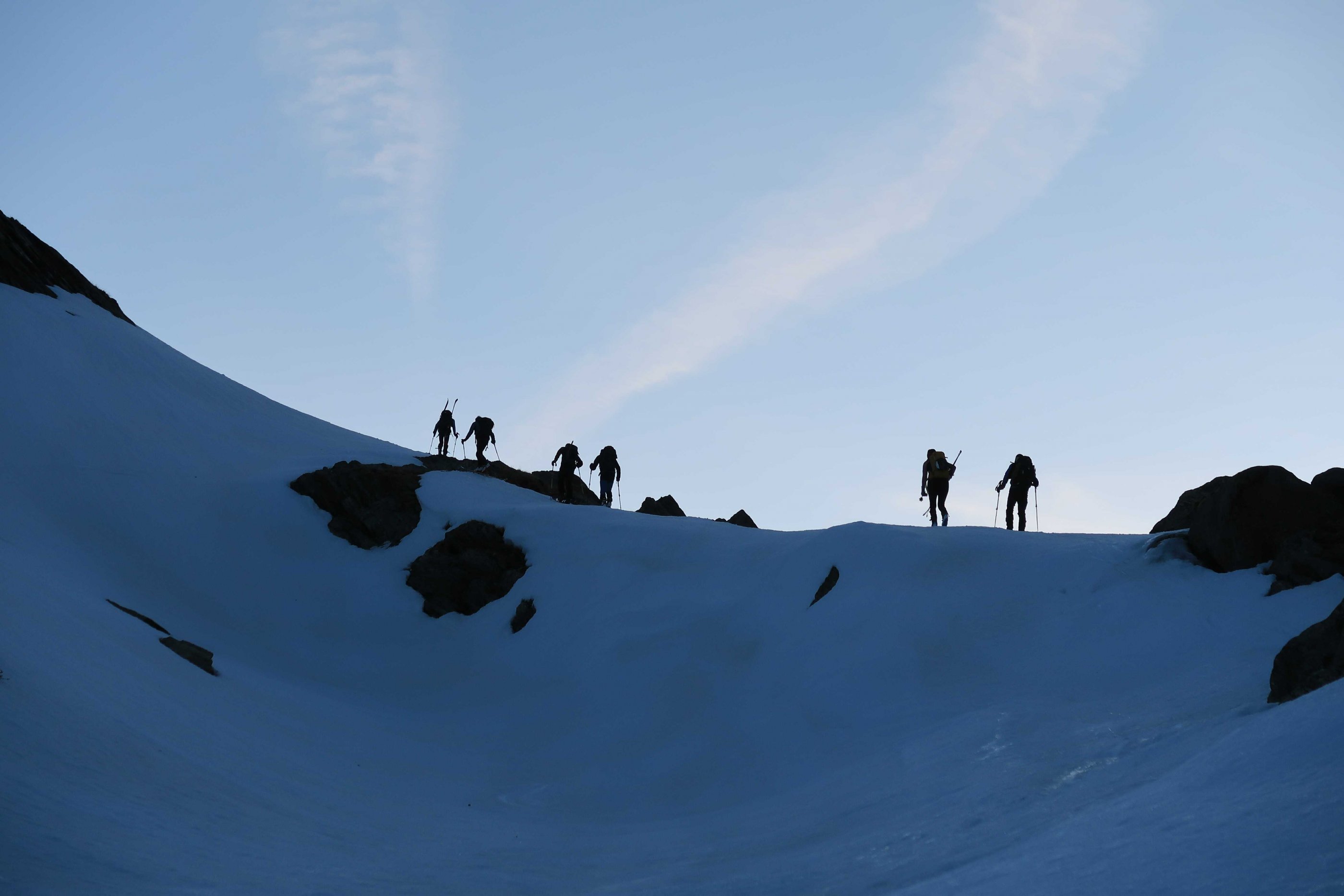 Am Morgen alles hart gefroren, in manchen Steilpassagen waren Harscheisen hilfreich. Keine Lawinenbeobachtungen, außer zeitweise Menschenlawinen.
