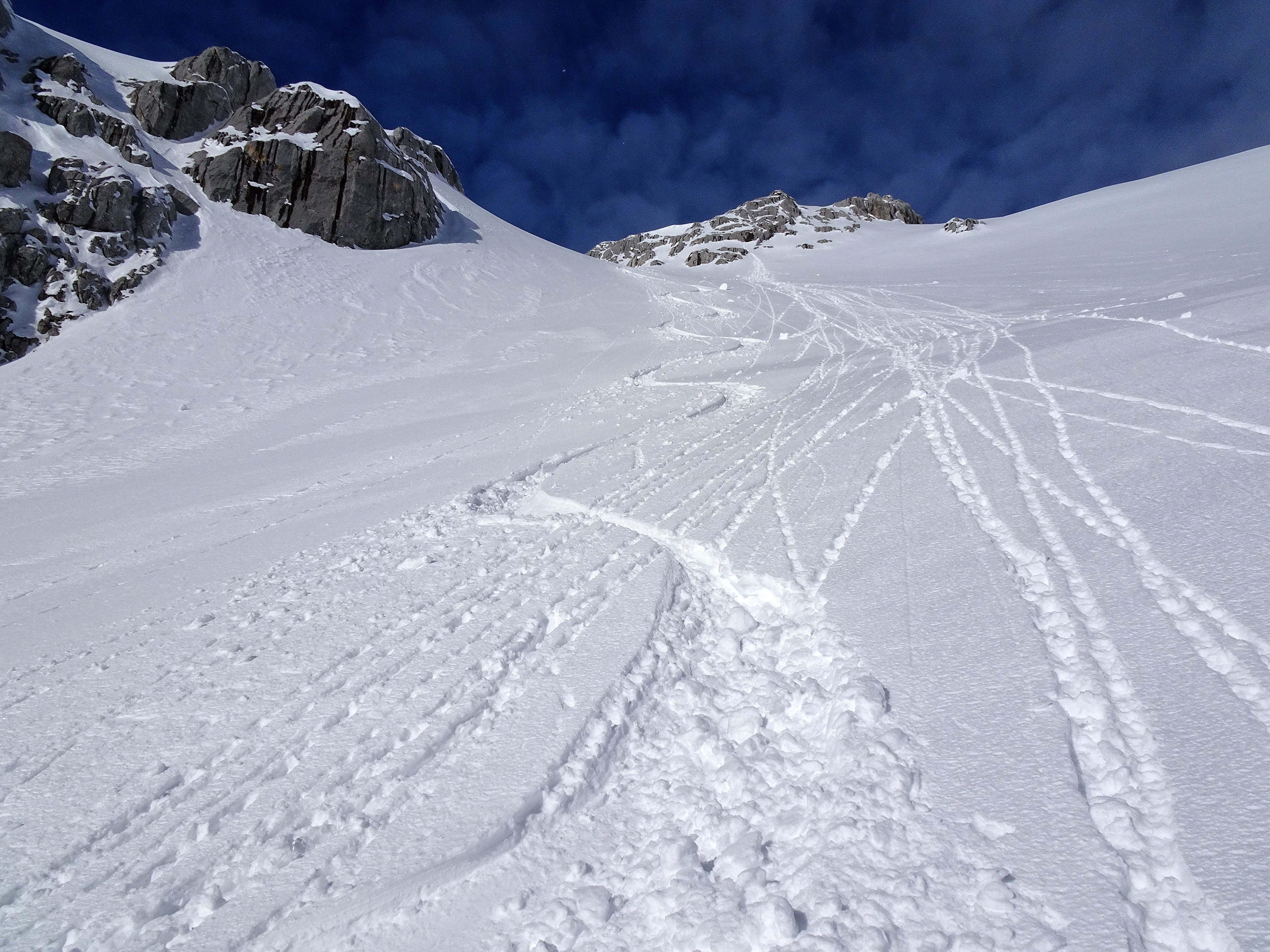 Schattseitig bis ins Tal Pulver, sonnseitig grauslich. Dazu zwischen 1700 und 2200m keine Sicht, keine Konturen, beim Ausschwingen im Stehen beinahe umgefallen :-(