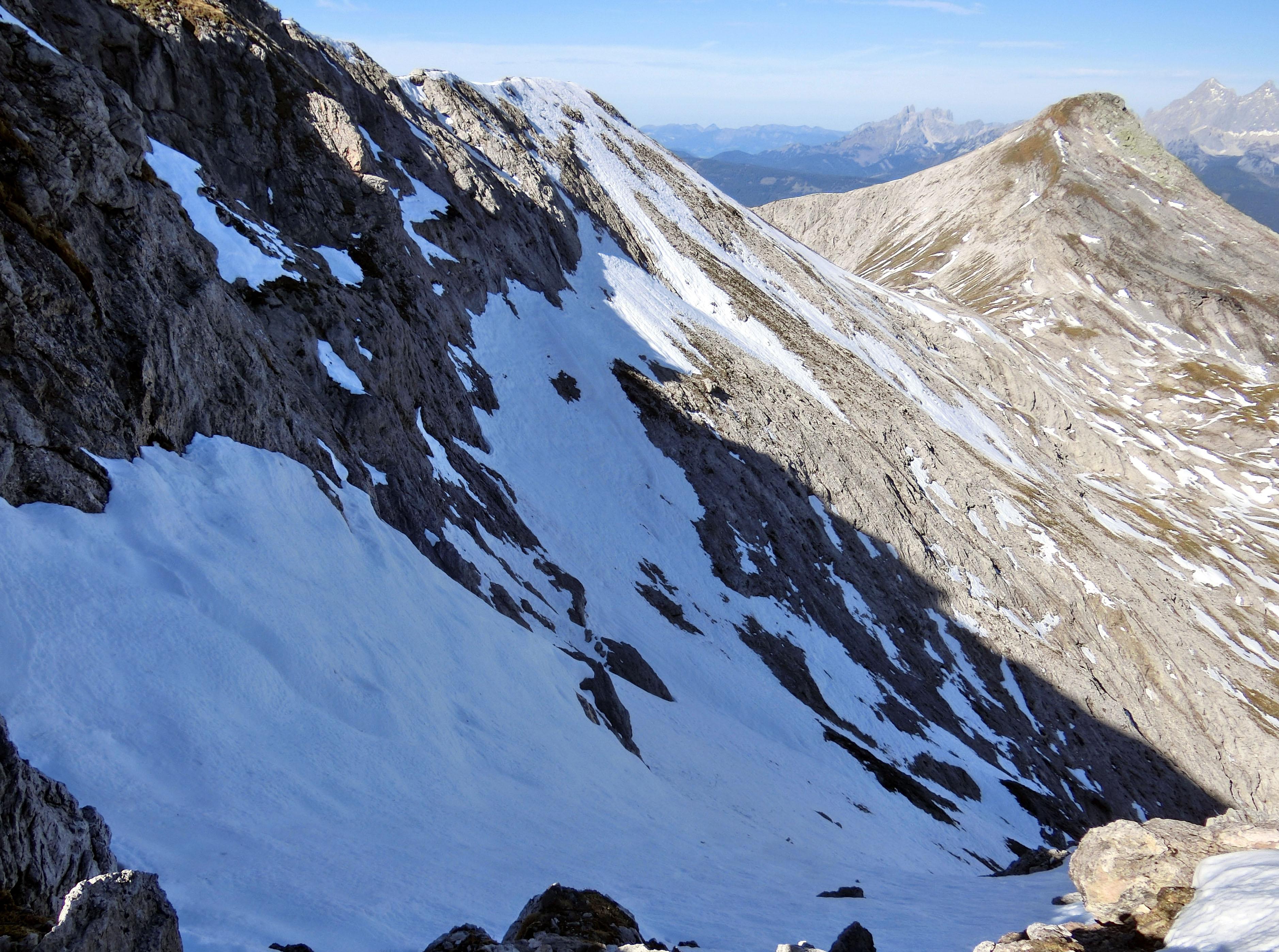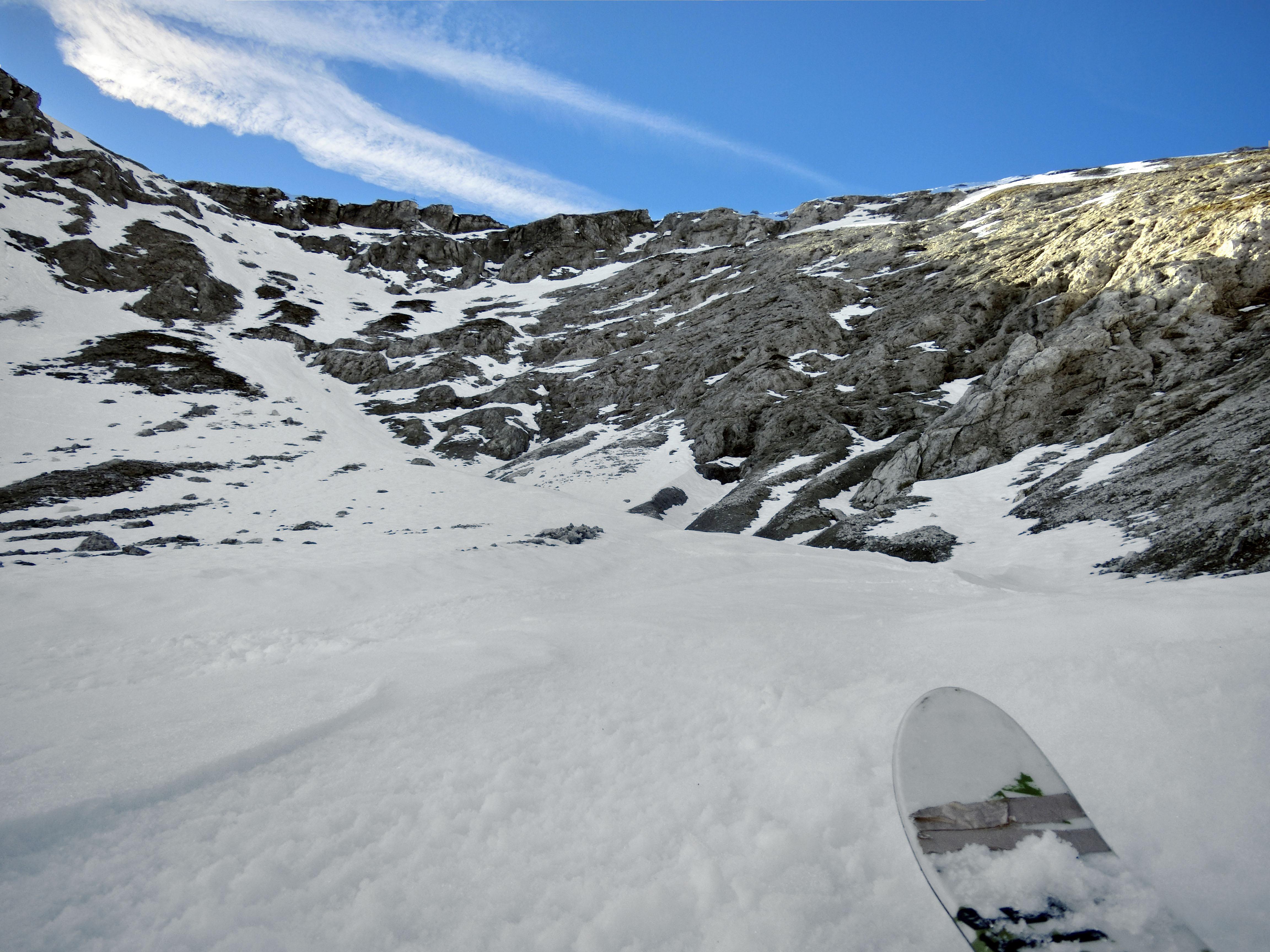 Abfahrt ab Ende Gipfelhang entweder direkt im Lee eines prominenten Rückens oder rechts des Wanderweges mit zahlreichen Unterbrechern bis zur Giglachseehütte möglich.