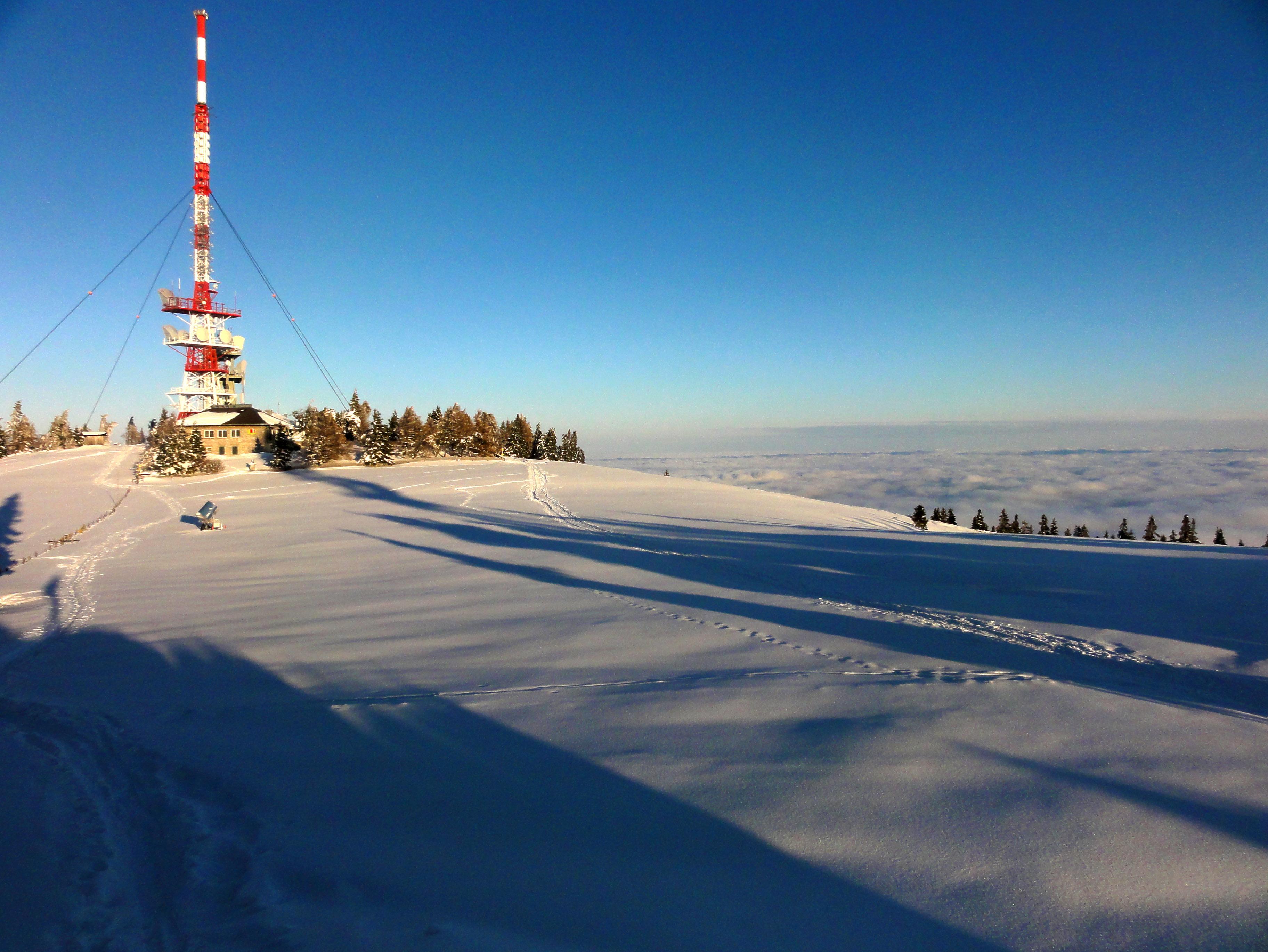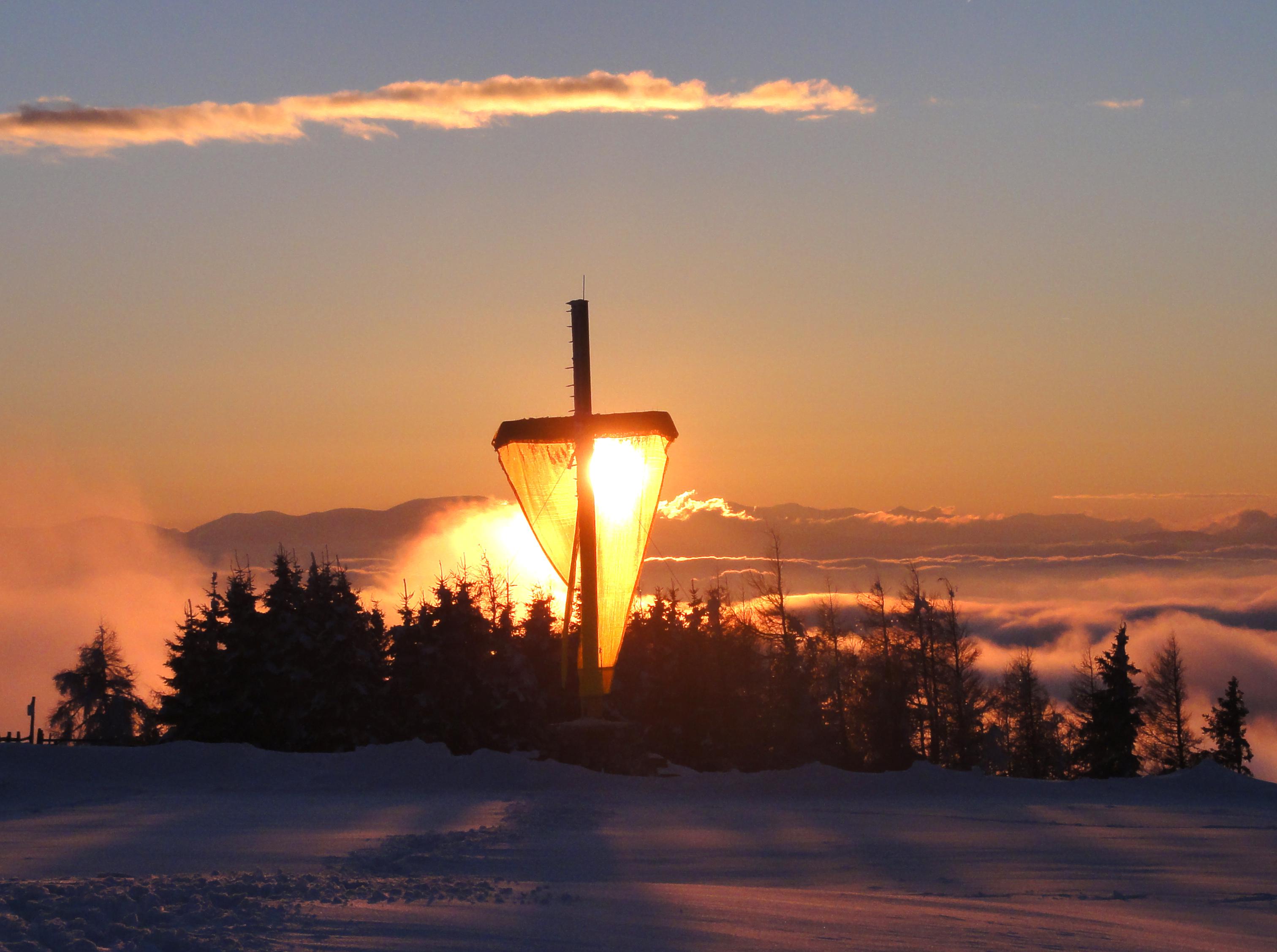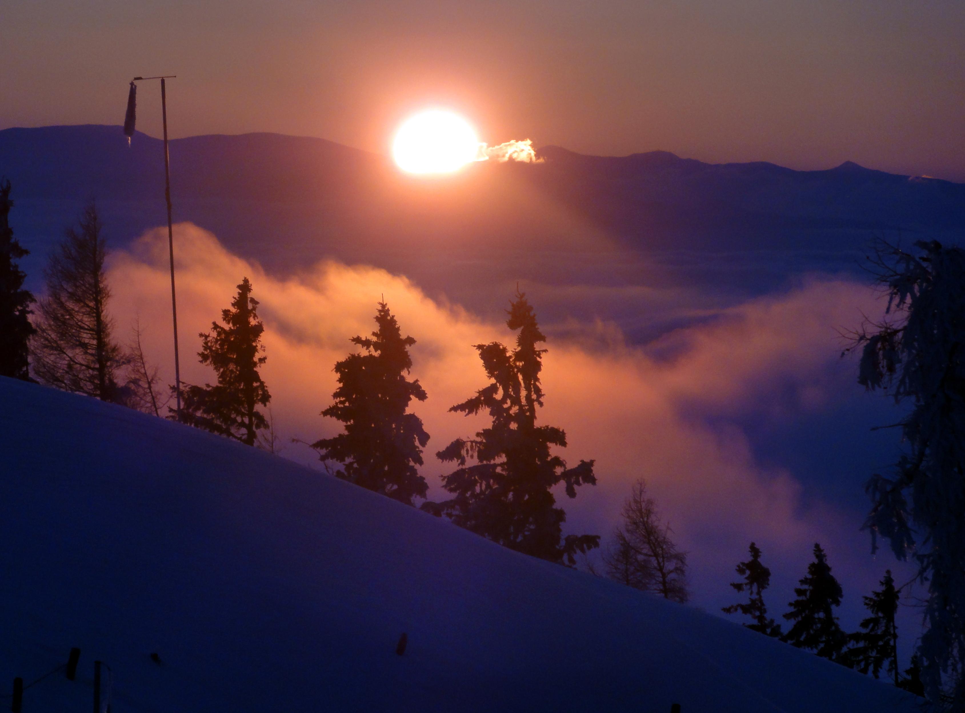 Wie für die Salzburger der Untersberg, so ist für die Grazer der Schöckl der Hausberg. Leicht erreichbar, jedoch meist mit wenig Schnee ausgestattet. Nicht heuer. Der offizielle Schneebericht nach zahlreichen Adriatiefs: Berg 60cm, Tal 35cm, somit war ich dieses Jahr nahezu jeden 2. Tag nach der Arbeit oben. Heute bin ich erst nach längerer Entschlußfindung bei Nieselregen spät aufgebrochen und komplett unvermutet in den Sonnenuntergang geraten :-)