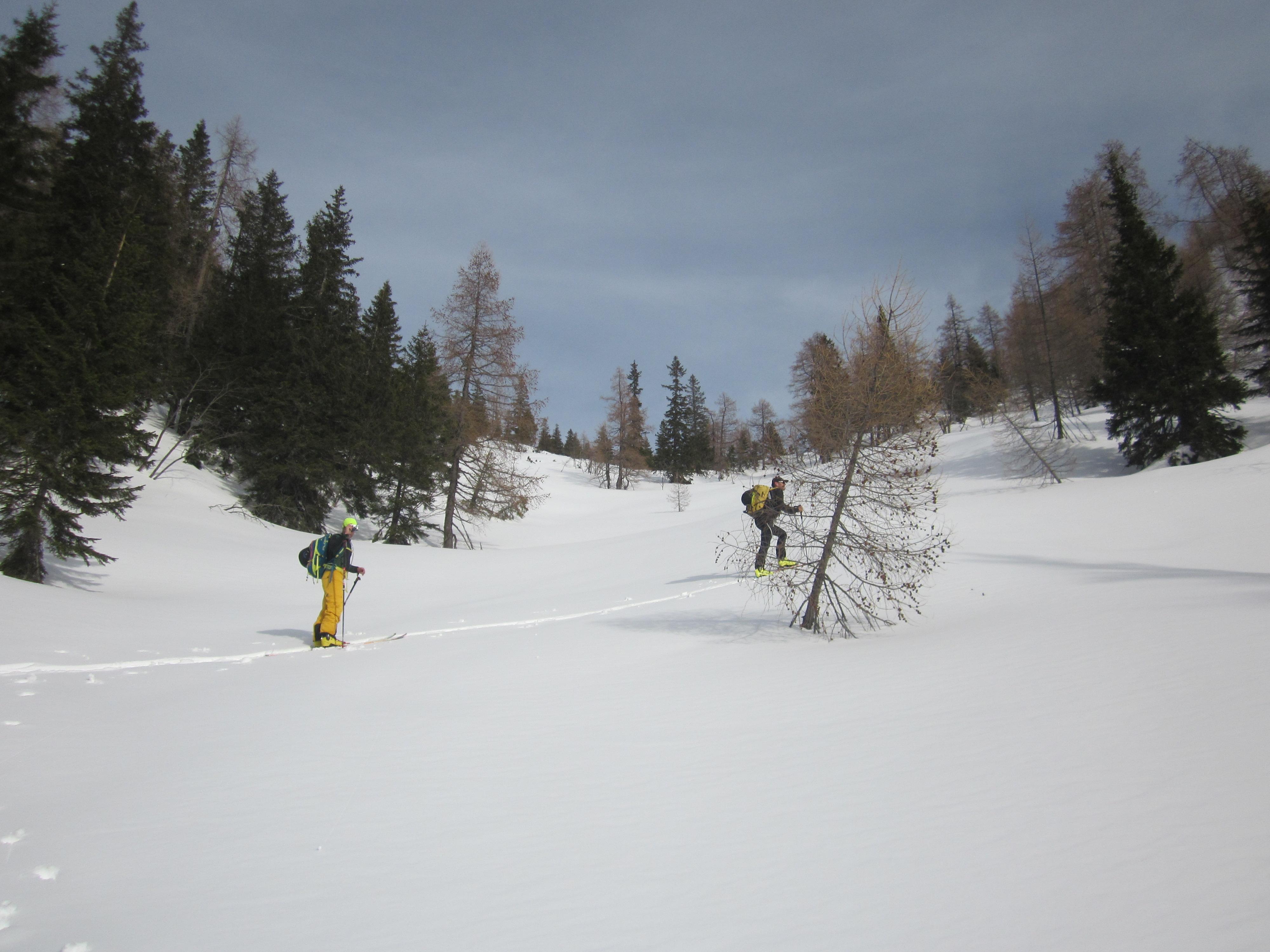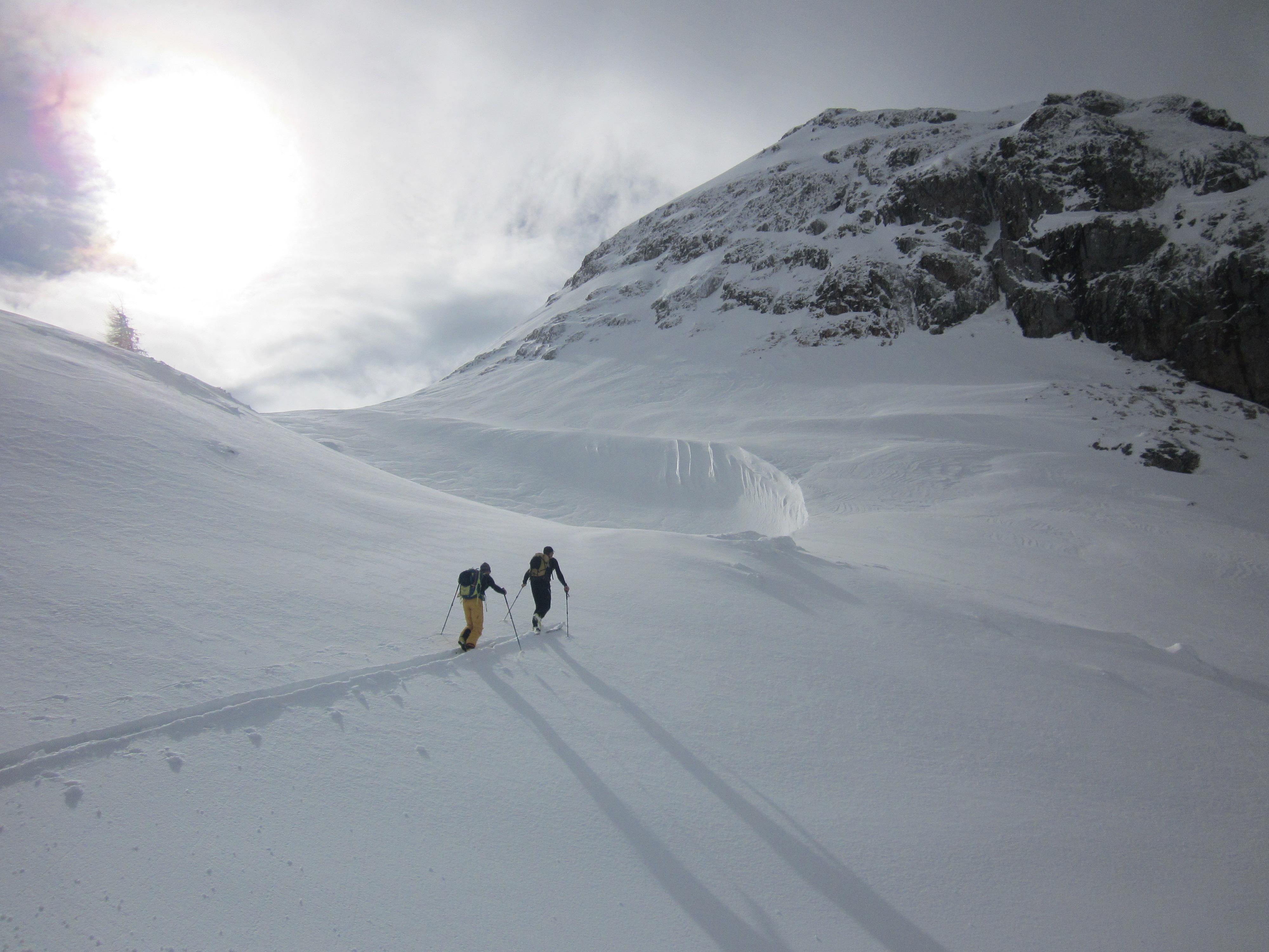 Dann Wiederaufstieg und wieder Planänderung: Statt nächster Zwischenabfahrt direkt in die Hütte.