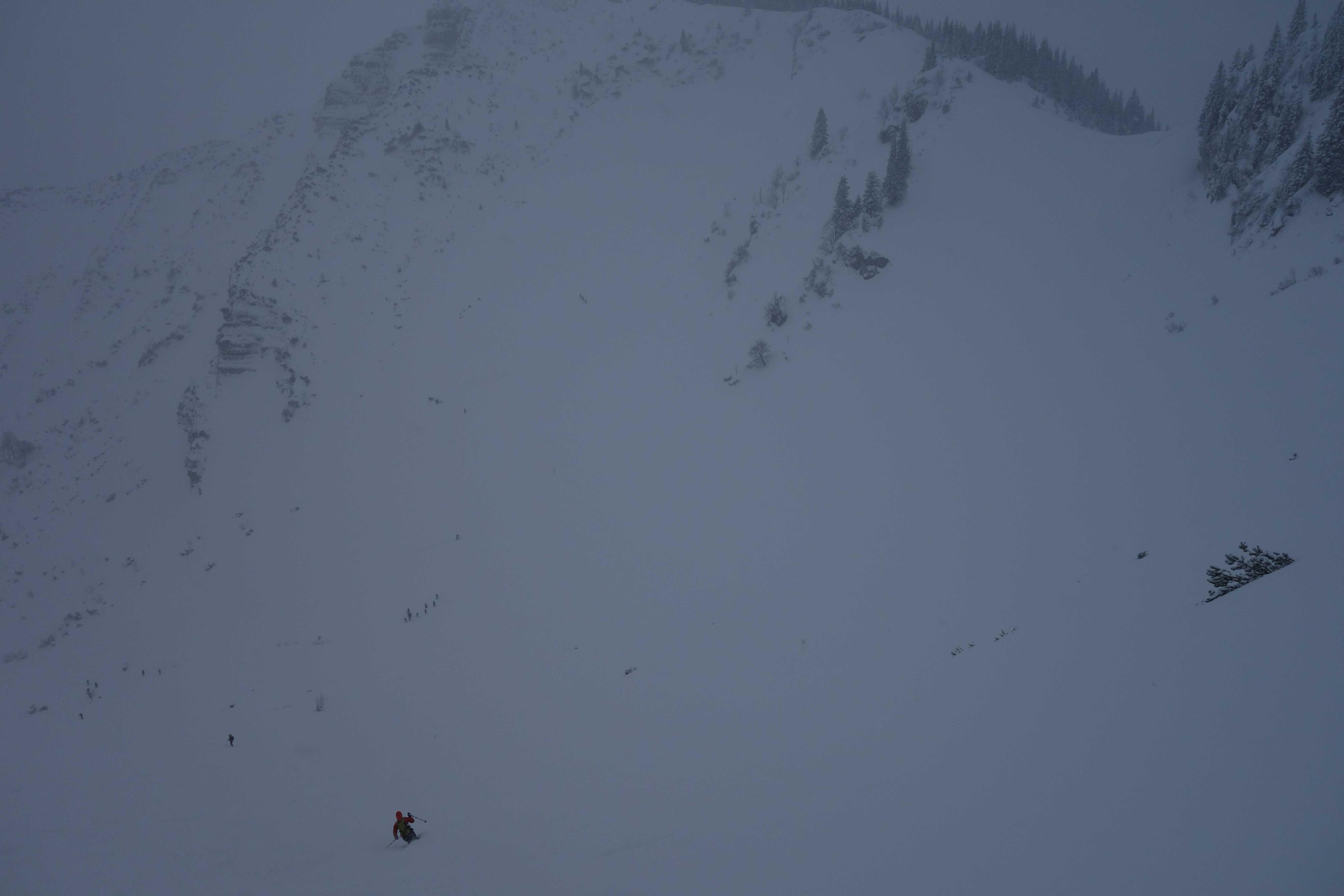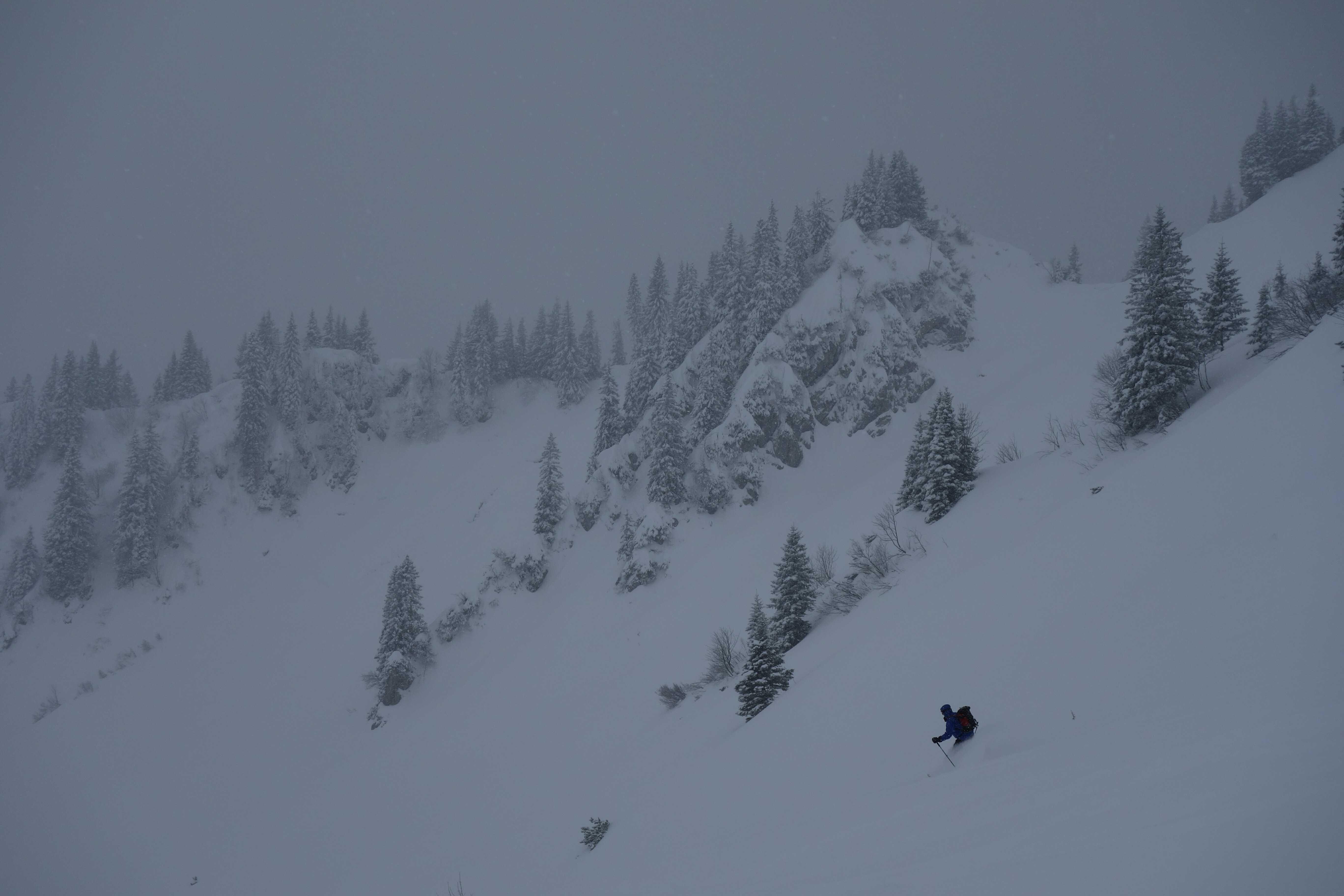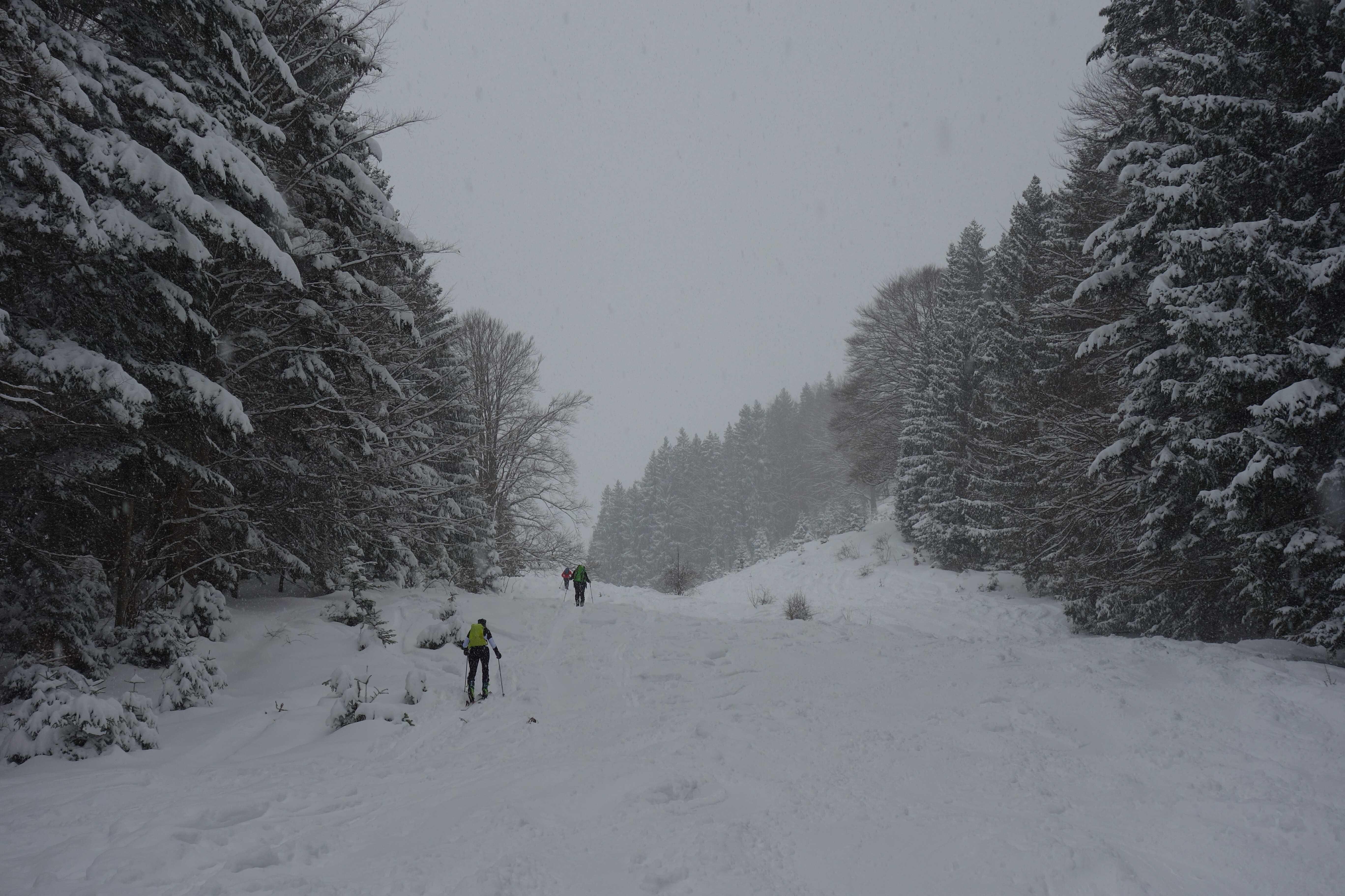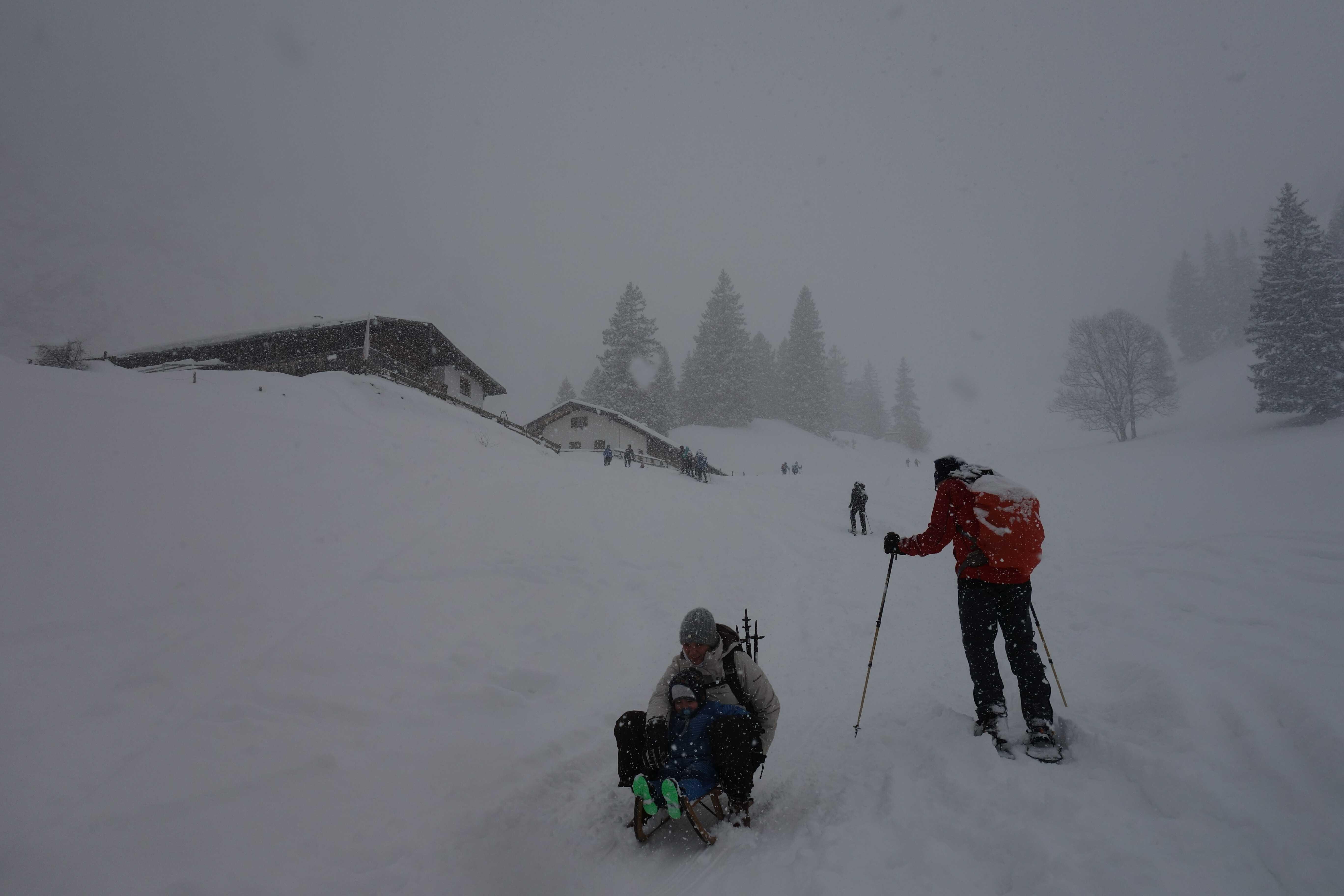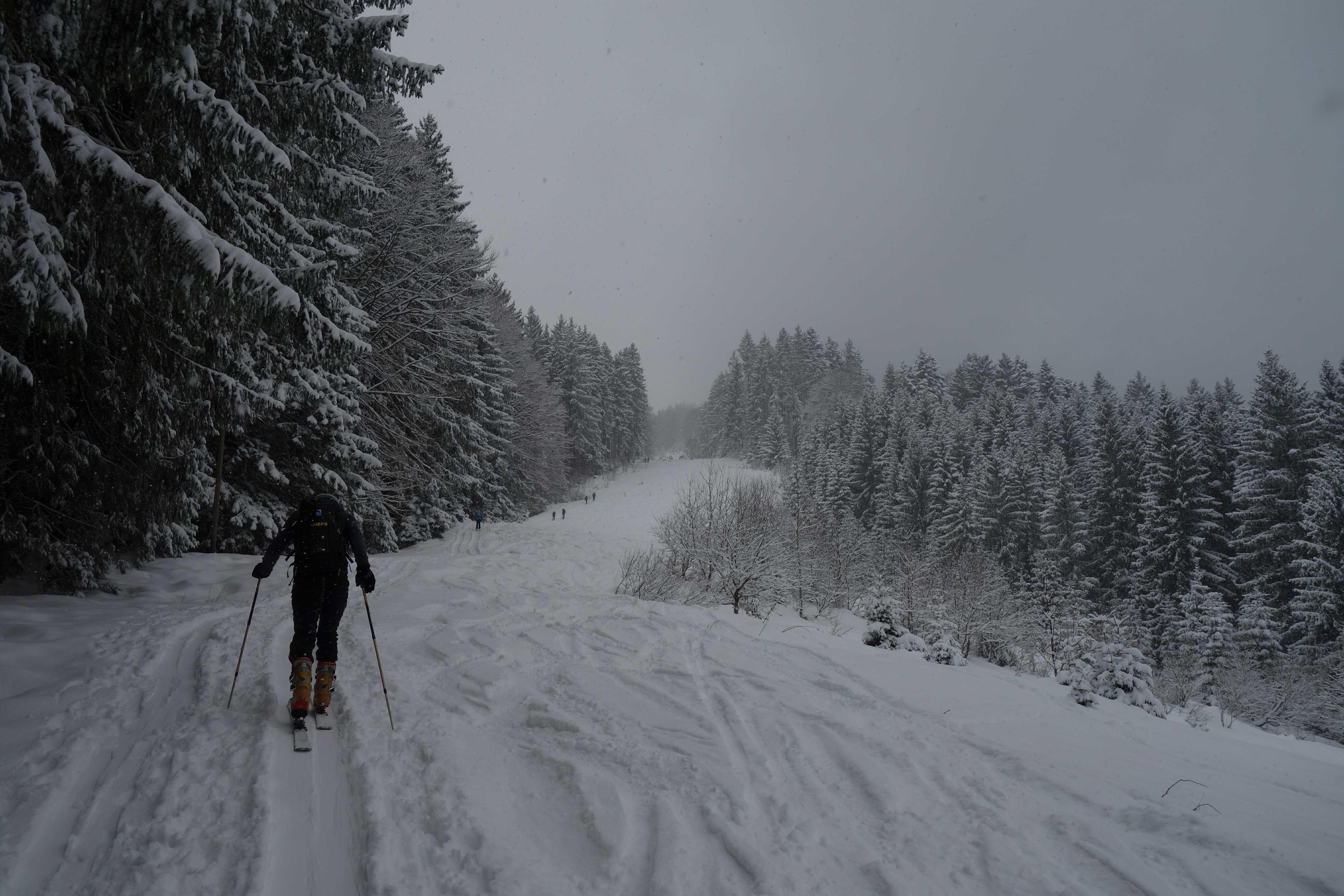 Schneelage: Am PP zw. 5 und 10cm Neuschnee, alte Piste hat meist ordentliche Umterlage, nur im untersten Hang etwas dünn. Oben bis ca. 30cm Pulverauflage, der ein ordentliches Mindestgefälle erfordert, dass man in Schwung kommt. Um die Wirtsalm gibts noch vereinzelte Steine unterm Neuschnee. Insgesamt gute Schneeverhältnisse.
