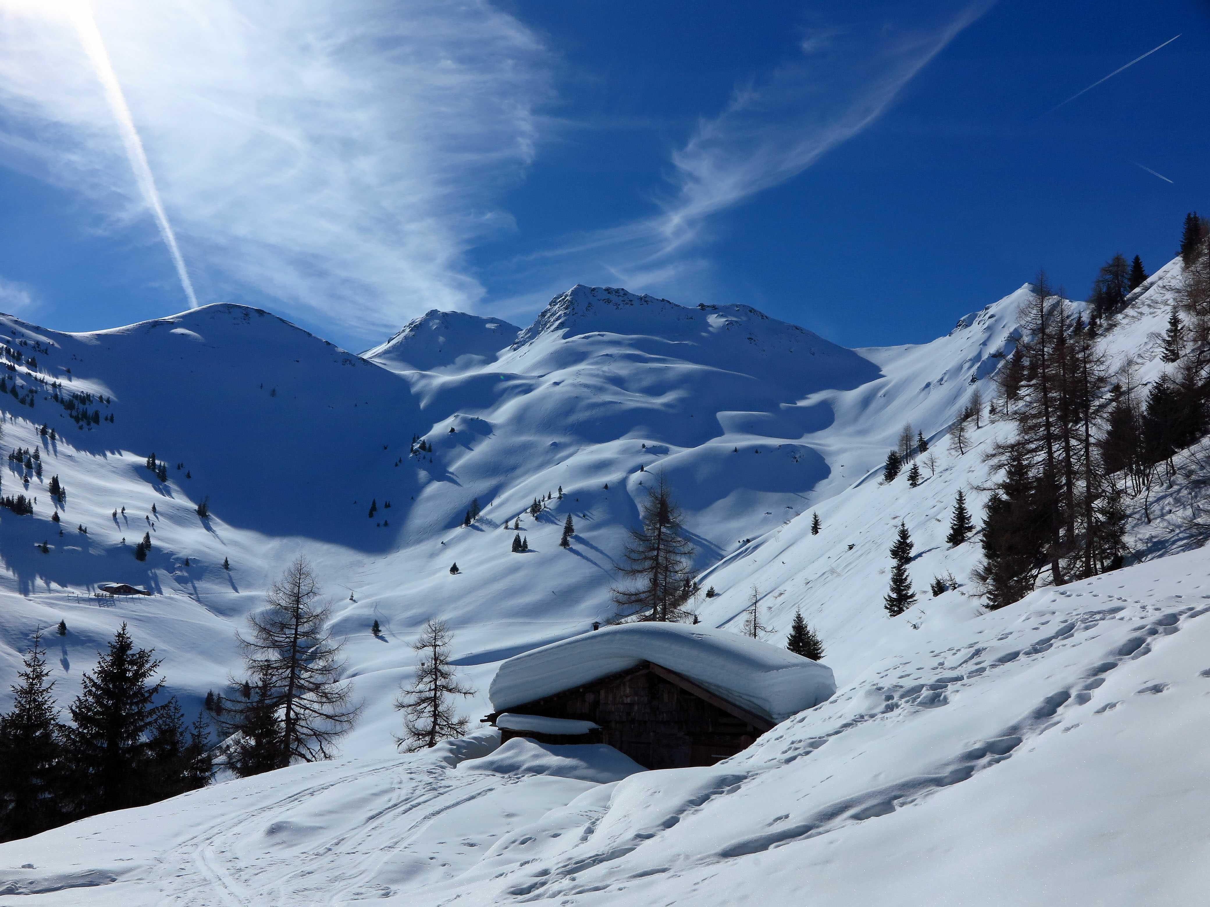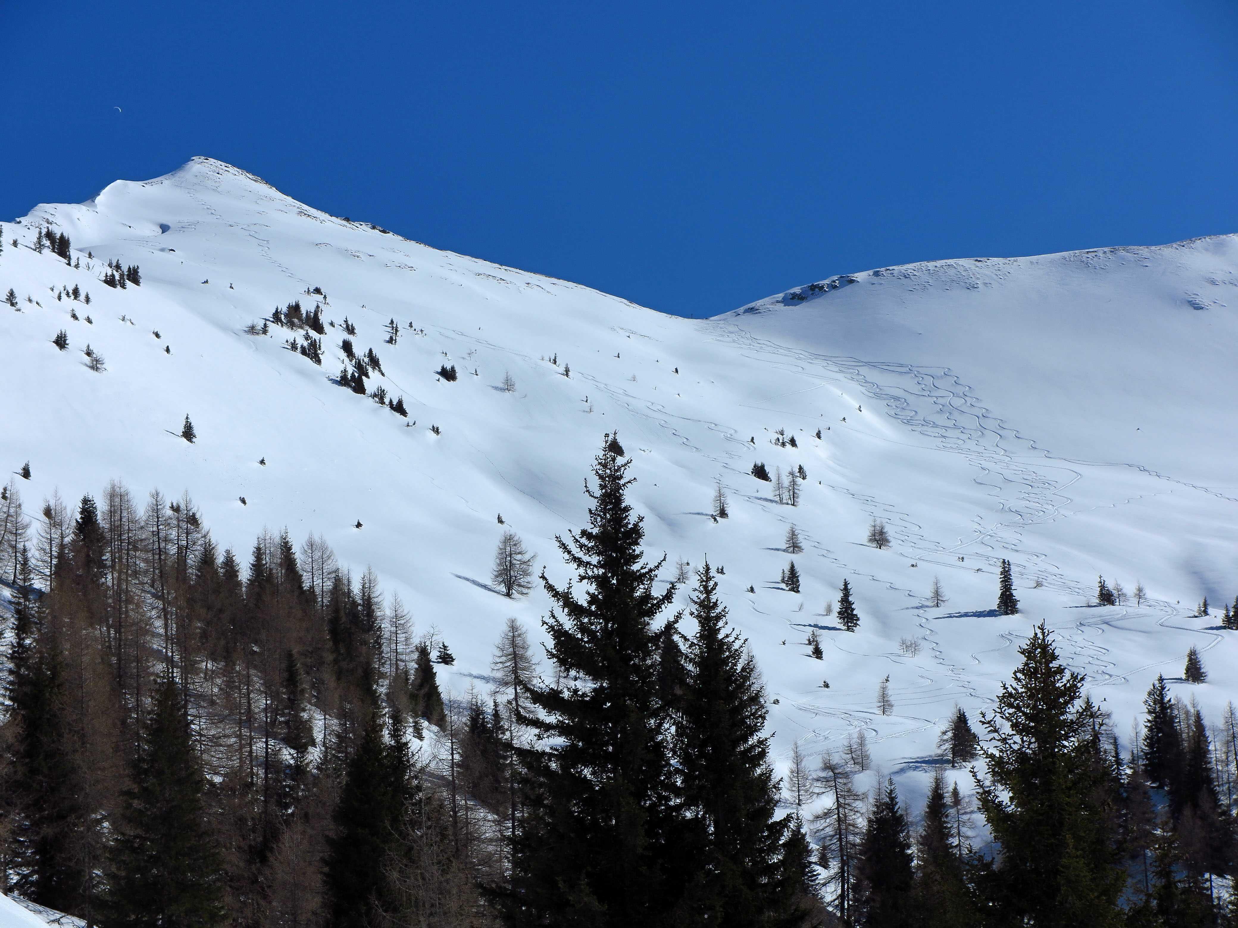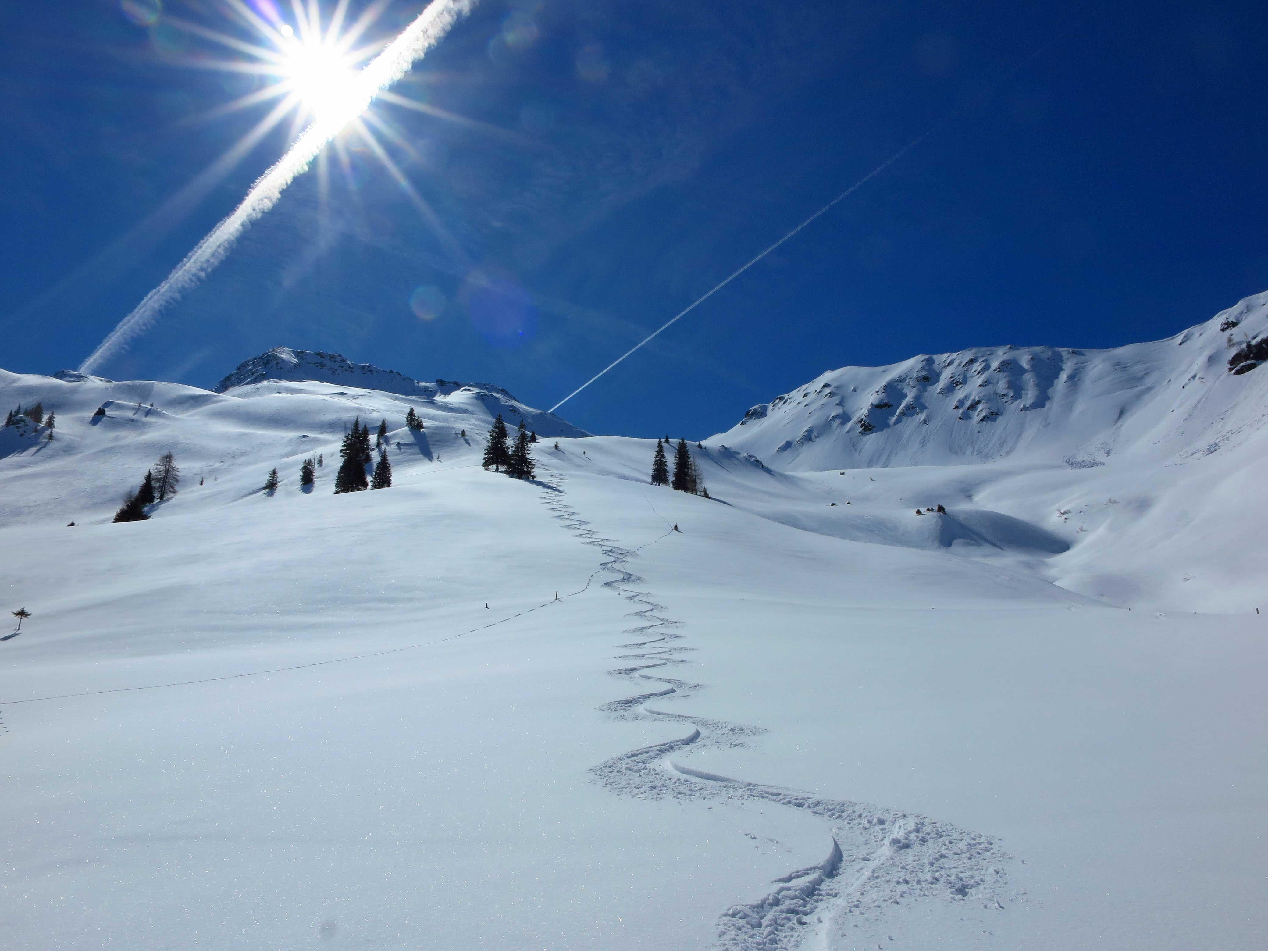 Schneelage: In den Nordkaren sehr schöner Pulver (ca. 10-20cm) auf durchwegs tragfähigem Untergrund, ideal zu fahren. In den steileren reinen Südhängen schon schöner Firn.
