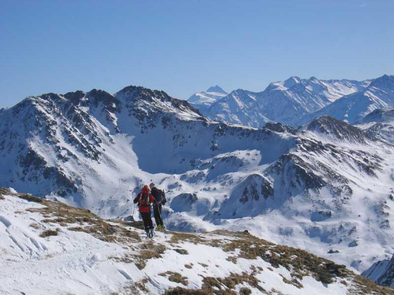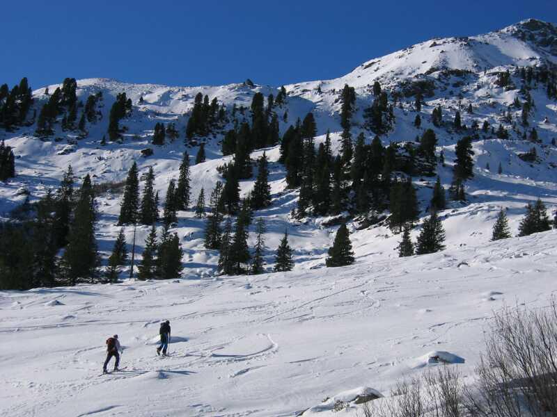 Vom Gasthaus Wegscheid(1145m), im Kurzen Grund, stieg ich durchs Manzenkar auf den Schafsiedel (2447m). Auf dem Sommerweg zur Bamberger Hütte musste ein kurzes Stück getragen werden (z.T. sehr eisig u. steinig).Im Manzenkar liegt ausreichend Schnee, aber schon zum größten Teil harschig. Der Anstieg oberhalb des Manzenkares war z.T. windgepresst. Beim mittlerem Wildalmsee(2030m) trifft man auf die Aufstiegsspur von der Bamberger Htt. herauf. Auf dem Weiterweg zum Gipfel immer genügend Schnee. Am Gipfel frischer SW-Wind, am Alpenhauptkamm sind einzelne Schneefahnen erkennbar. Sicht unendlich.Schnee bei der Abfahrt zur Bamberger Htt. wechselt ca. alle 2-3m (Pulver-Press-Harsch). Ziehweg von der Hütte ins Tal durchgehend schneebedeckt.