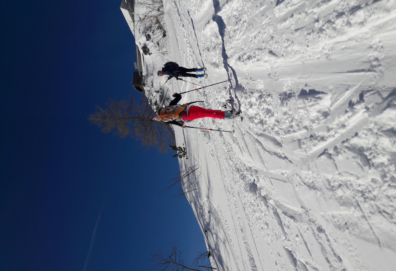 Großes episches Theater heute. Die Gegensätze könnten nicht größer sein. Jenner, ein Berg, der diese Gegensätze alle vereint. In der Stille des Lohmais den Blick über die majestätischen Berggipfel schweifen lassen, in den lautfröhlichen Trubel eines Skigebietes eintauchen und den Duft eines Vollautomaten-Kaffes in der Nase, um steep & deep im Pulver des Spinnergrabens zu versinken. Ein Herzenswunsch von der Wunschliste weniger und gleich ein paar neue dafür dazu… weißt Du, wieviel Sternlein stehen … ?! Die Wolkenfront kam erst spät um 14 Uhr daher, da waren wir schon wieder unten, vorher blauer Himmel und satt Sonne. Dem Schattenpulver im Spinnergraben hat es nicht geschadet. Ganz oben sind wir nicht eingefahren, zu heikel, weiter unten waren schon etliche vor uns eingefahren, da durften wir uns trauen, ganz entspannt alles und trotz Spuren doch so luftig leicht hinutergekurvt. Die Windgeister waren uns gnädig und haben sich heute woanders ausgetobt. Mit einem Wort: Traumtagerl !
