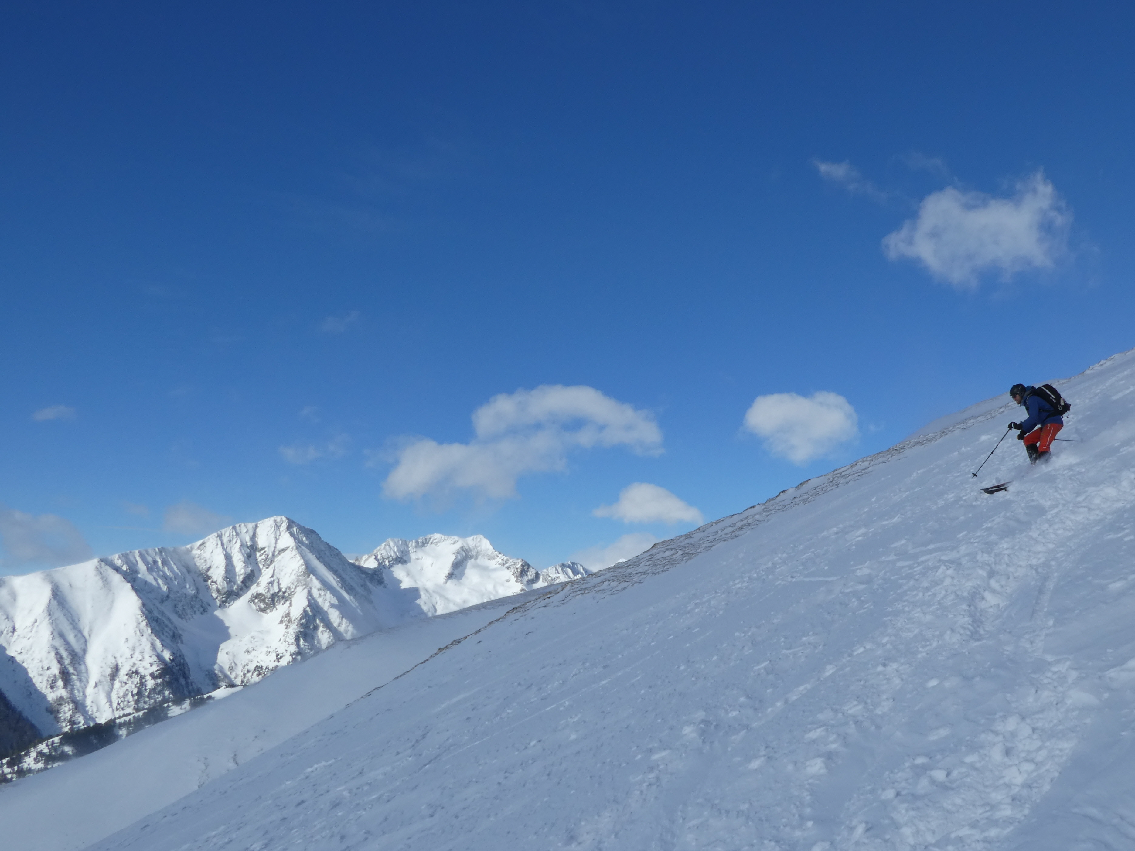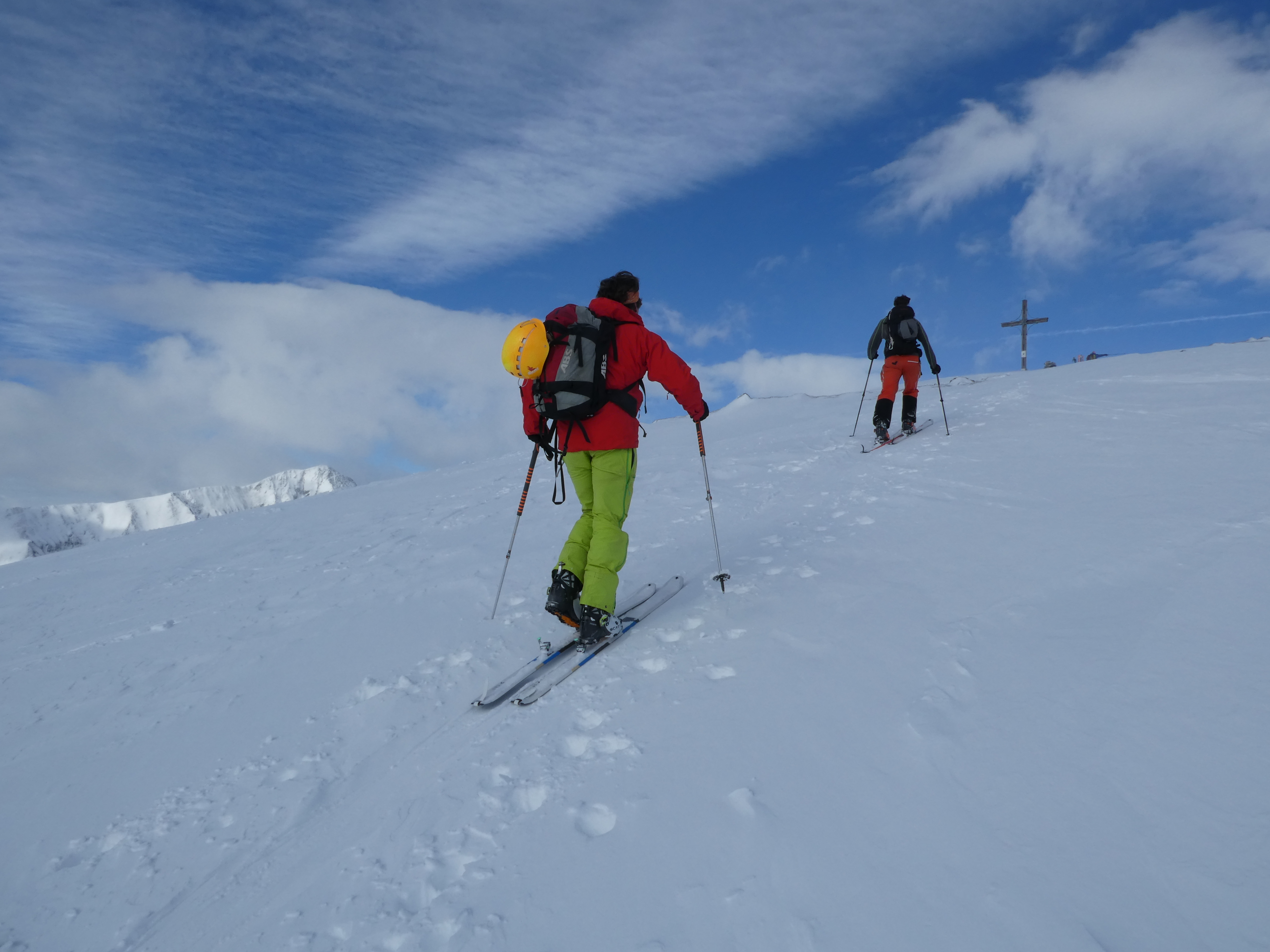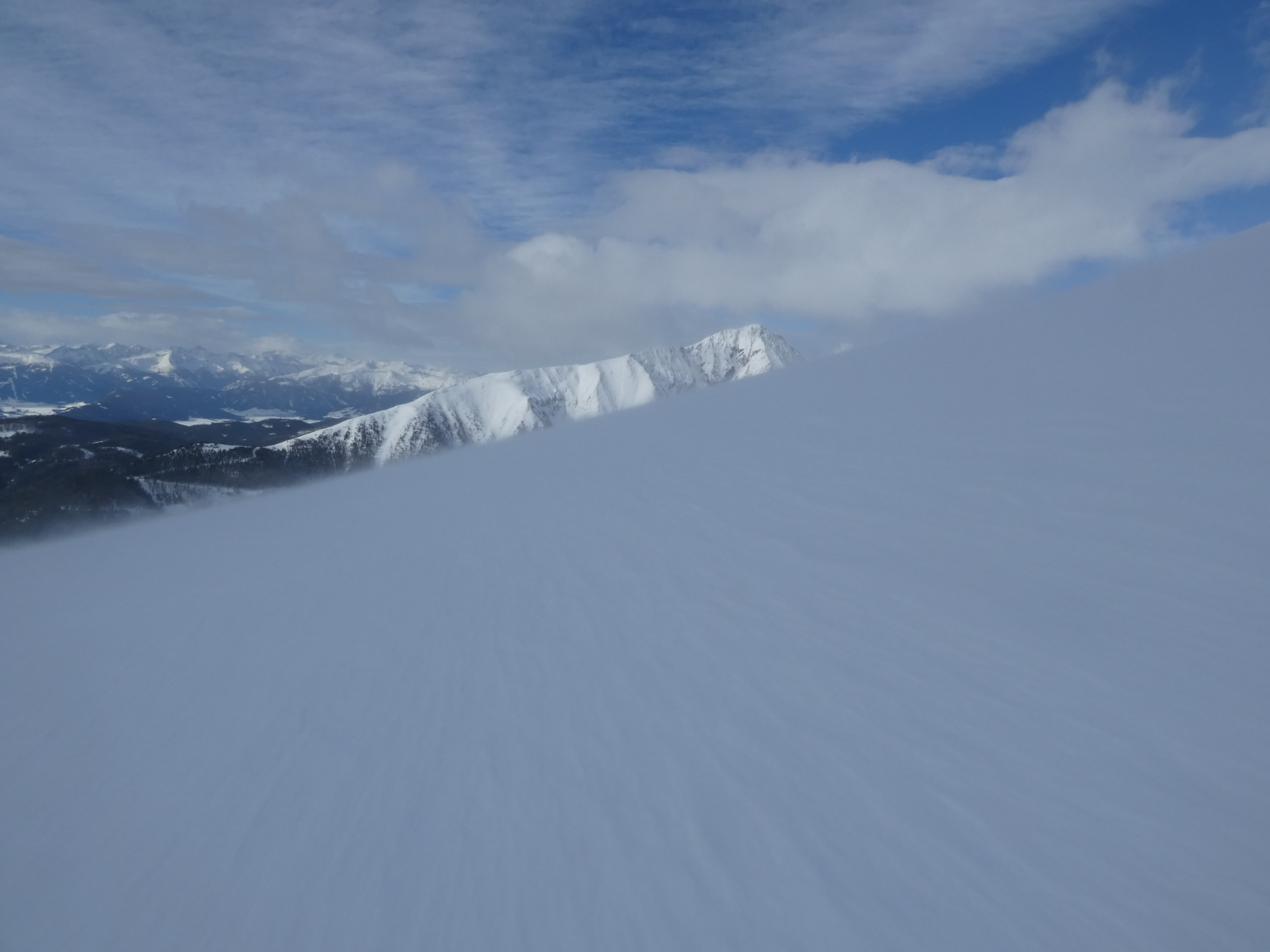 Tourenklassiker ausgehend vom Ortsteil Klausen in Krakau. Nach dem Niederschlag der letzten Woche dzt. allgemein gute Tourenverhältnisse in der Krakau, die sich mit dem für den Wochenbeginn angekündigten weiteren Schneefall abermals verbessern werden. Wi r waren etwas zu früh dran, deswegen haben sich die Restwolken nicht rechtzeitig verflüchtigt und das Auffirnen verhindert.
