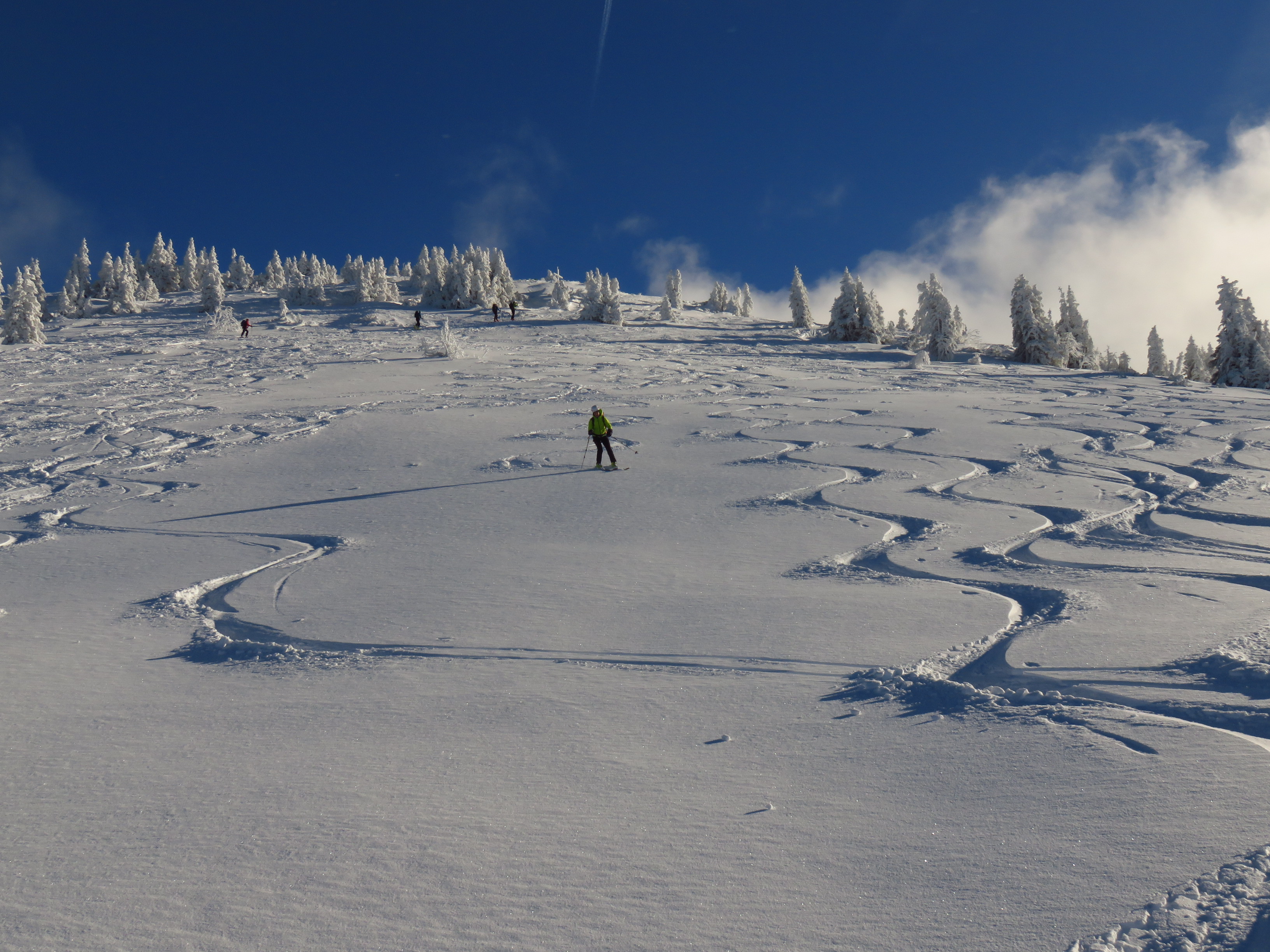 Parkplatz Lämmerbach voll, es wurde aber vom Räumdienst noch Parkbuchten angelegt so dass wir um 9 Uhr noch einen schönen Platz bekamen. Auf diesem Weg noch danke an den Räumdienst. Sehr gute Schneelage Aufstieg durch den Wald sehr gut. Ab Genneralmen bis zum Zinken Anstieg extrem dichter Nebel Sichtweite 10-20m aber gute Spur. Wie vom Wetterdienst angekündigt verzog sich der Nebel um die Mittagszeit und es wurde sehr sonnig mit guter Sicht. Am Gipfel starker kalter Wind.