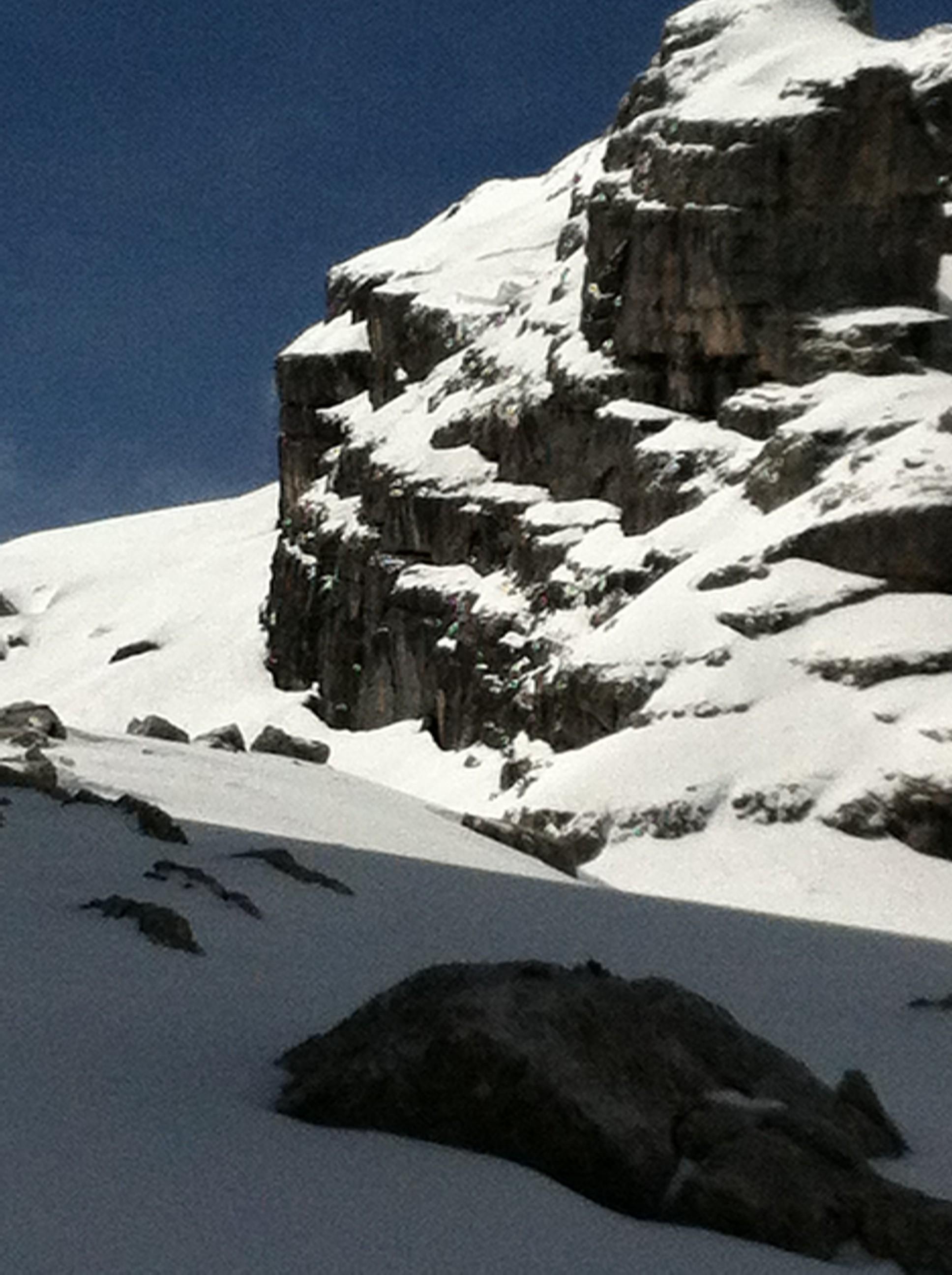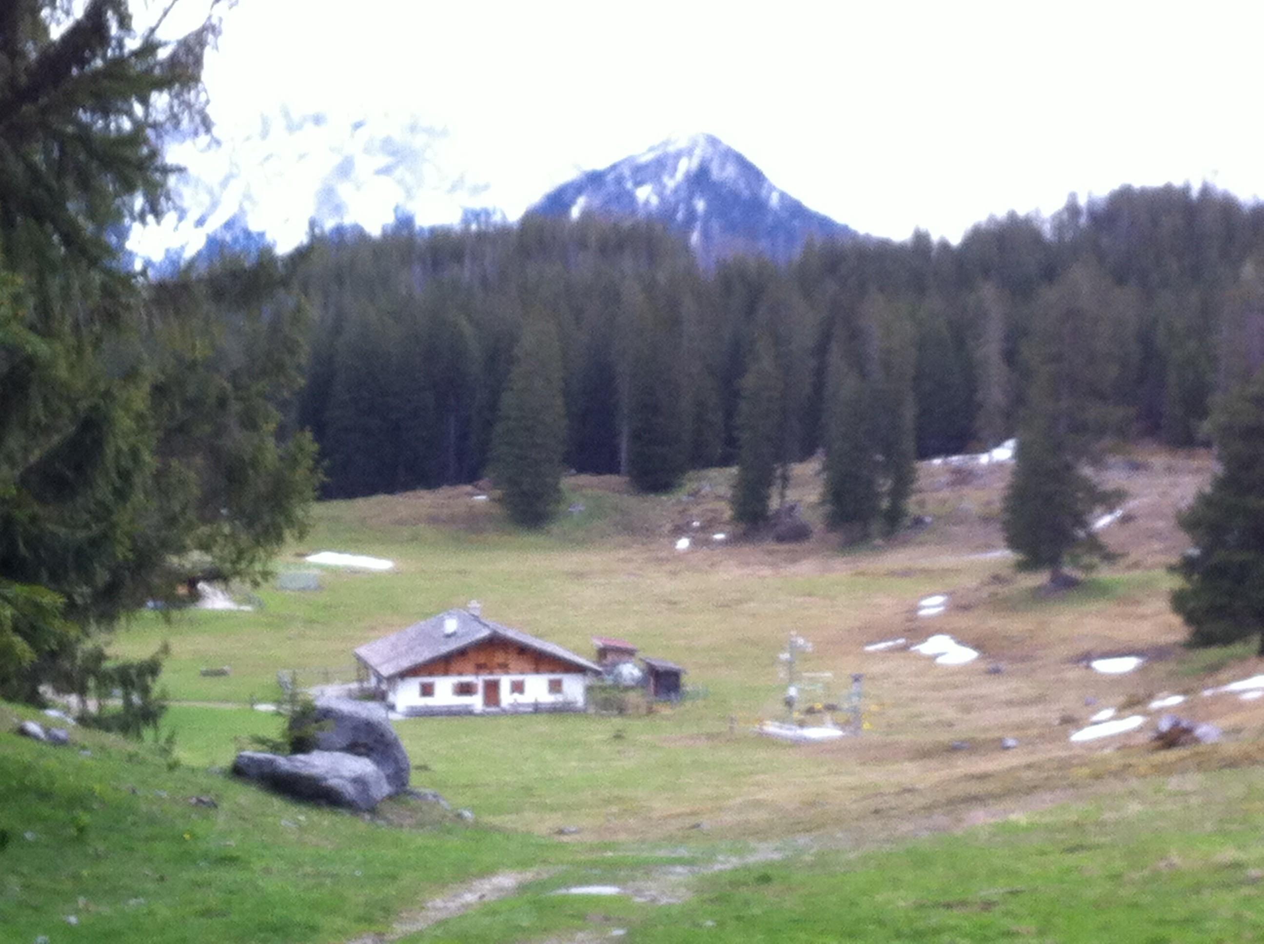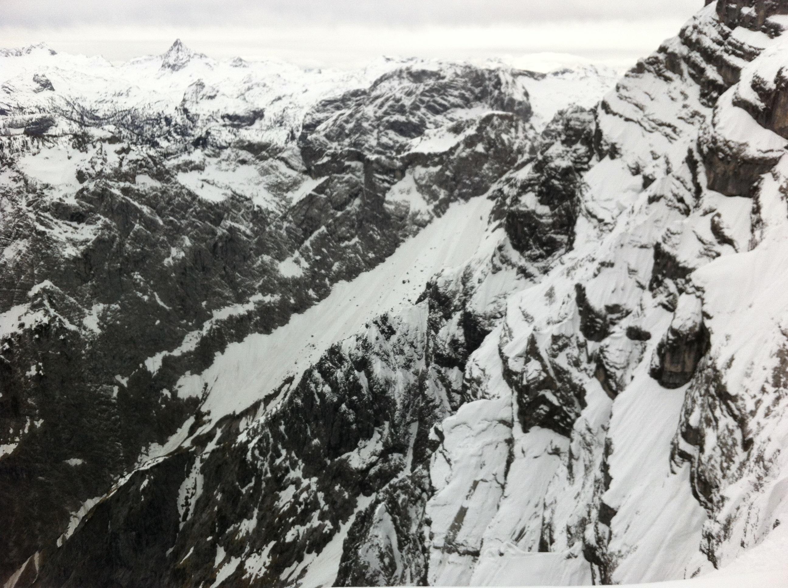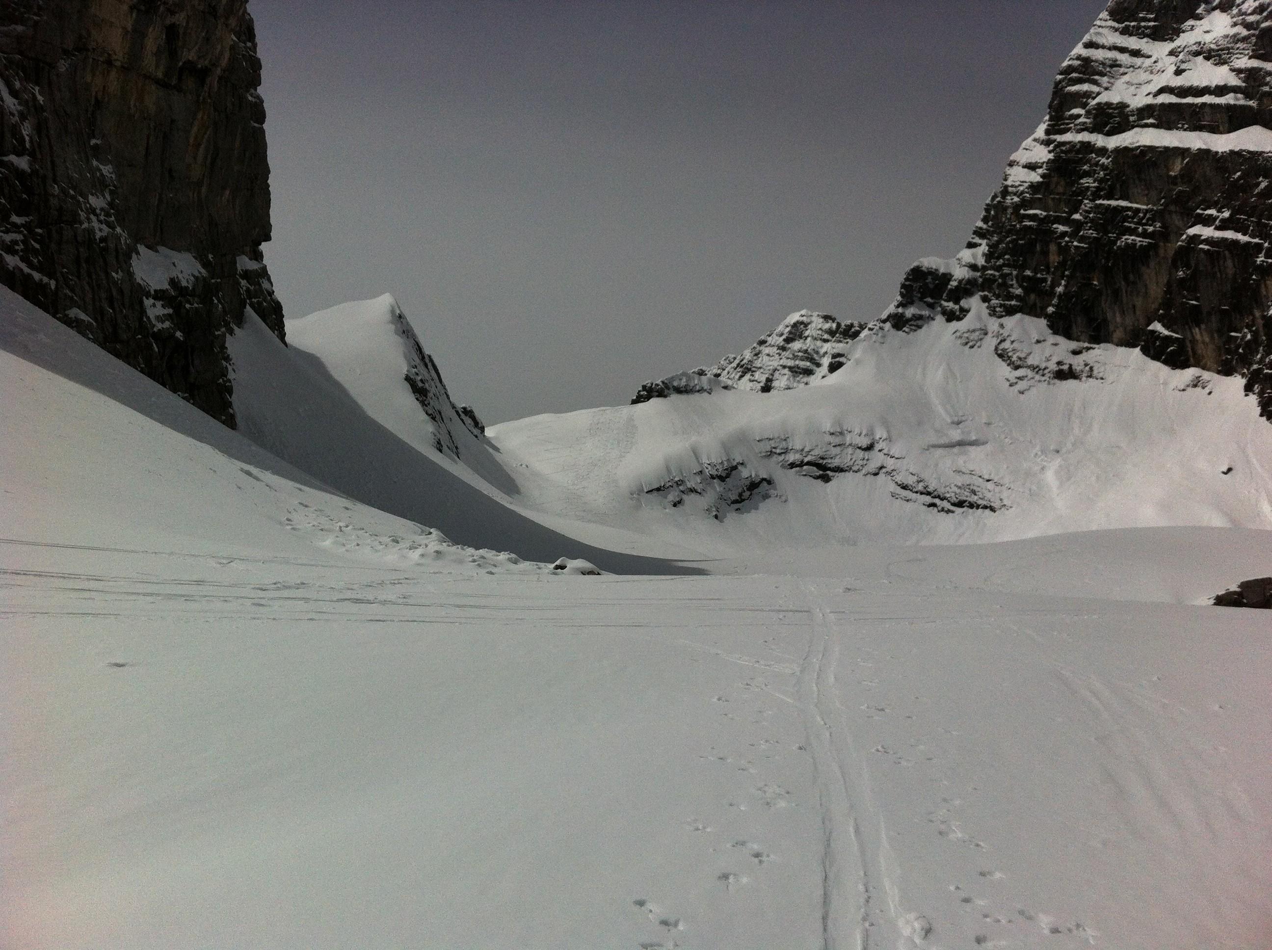 Endlich im Watzmannkar! Mit dem e-Radl auf Kührointh. Dort beginnt der Schnee. Ganz gut zu fahren, oben feuchter Pulver unten gesetzter Neuschnee und endlich schönes Wetter (für einen Tag).