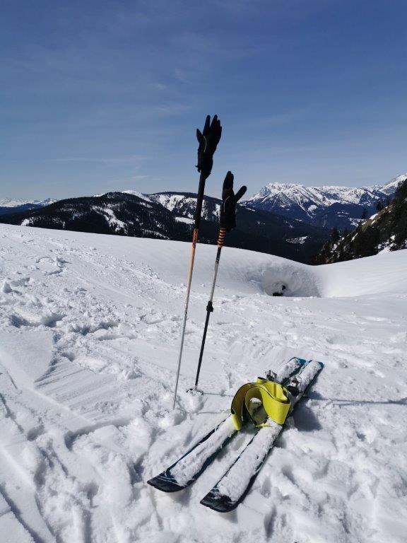 Wir fahren auf hartem Harschdeckel mit Pulverauflage vom Kamplbrunn zur Sulzkaralm ab, und steigen dann nach ausgiebiger Sonnensitzpause wieder zum Mahdriedel auf. Von da aus gehts dann mit Firn weiter bis zur Ledringalm, ab der Forststraße wirds dann etwas sulzig aber wir kommen mit zwei kurzen Unterbrechungen wieder bis zum Parkplatz.