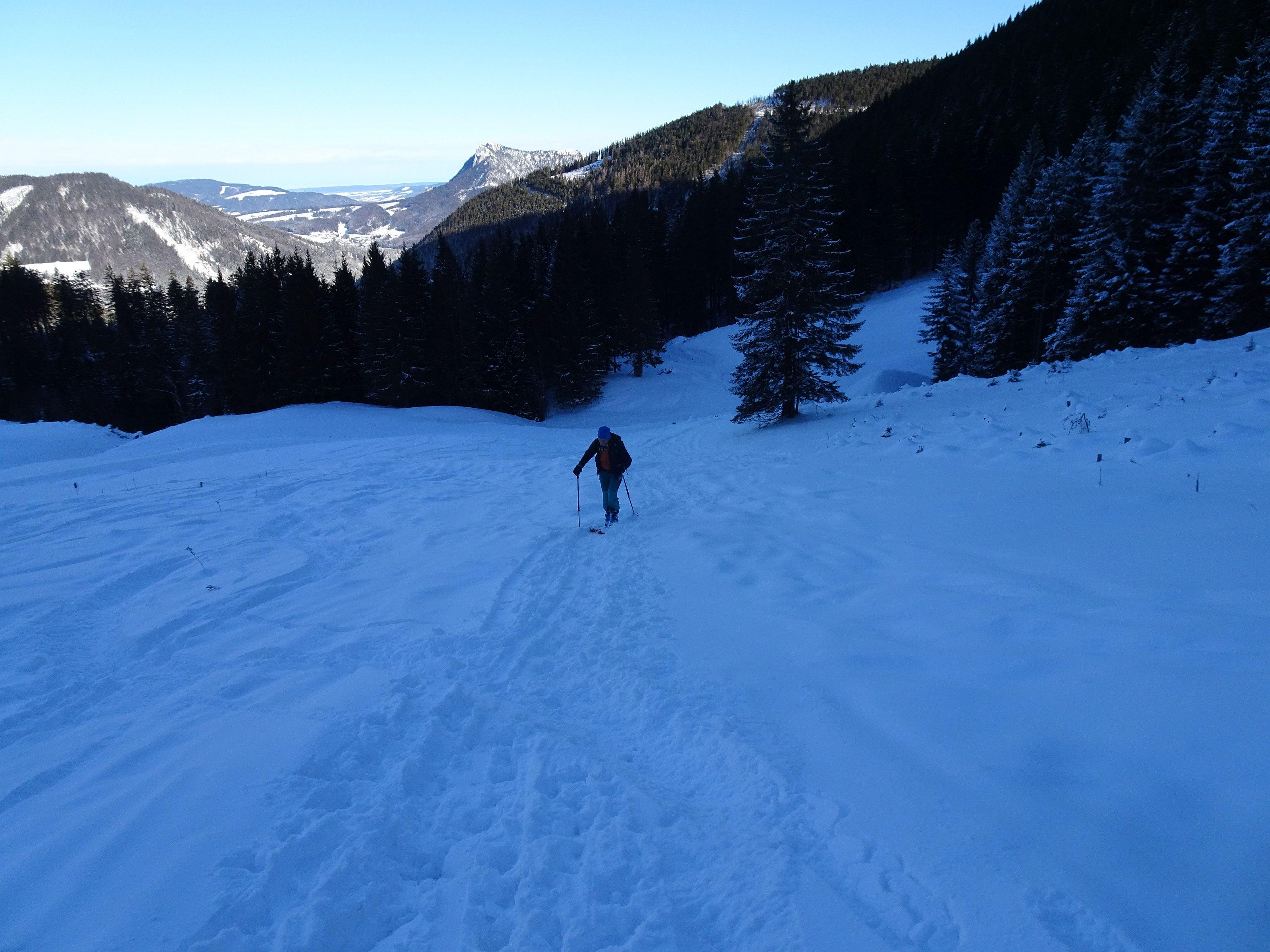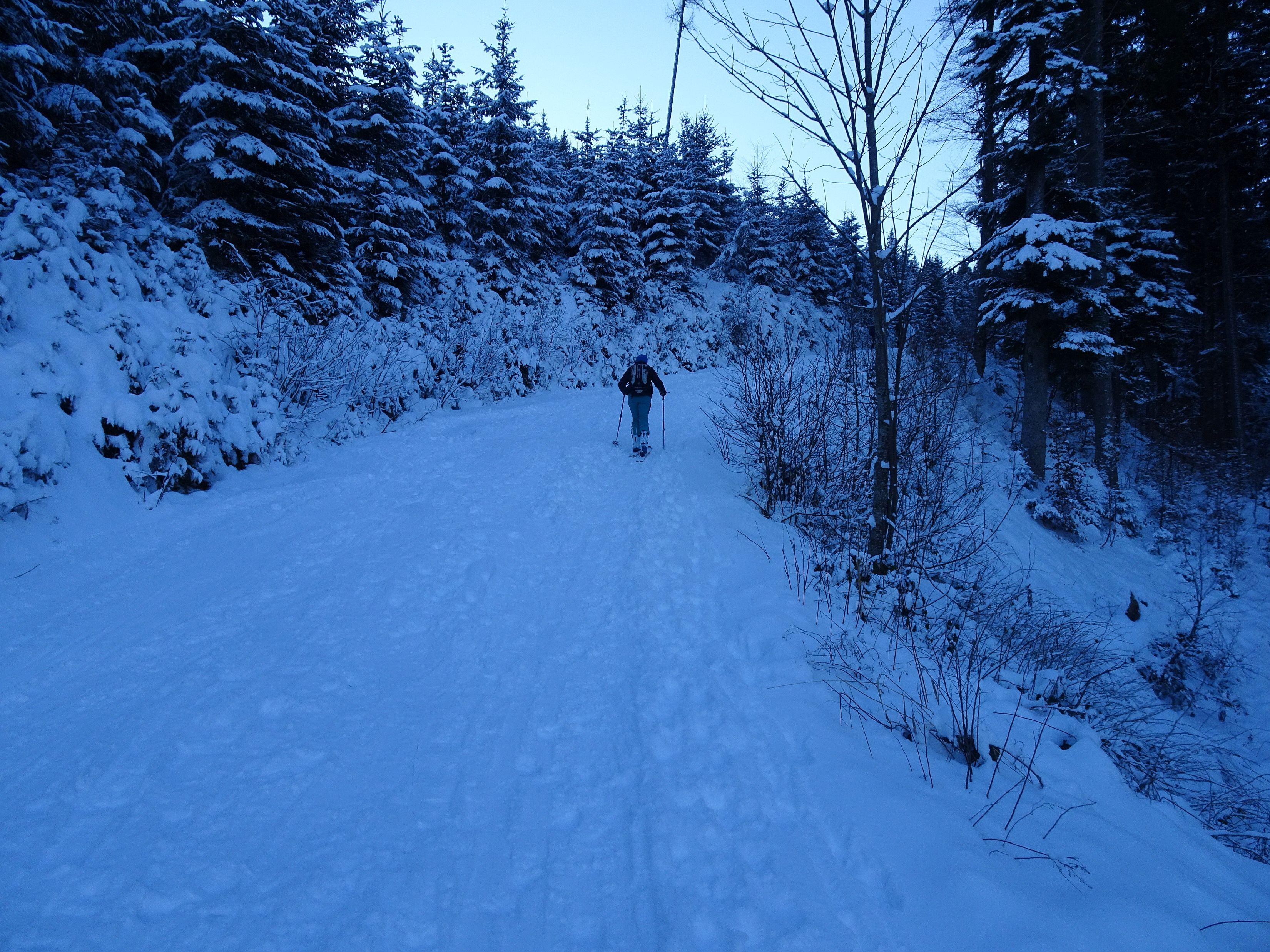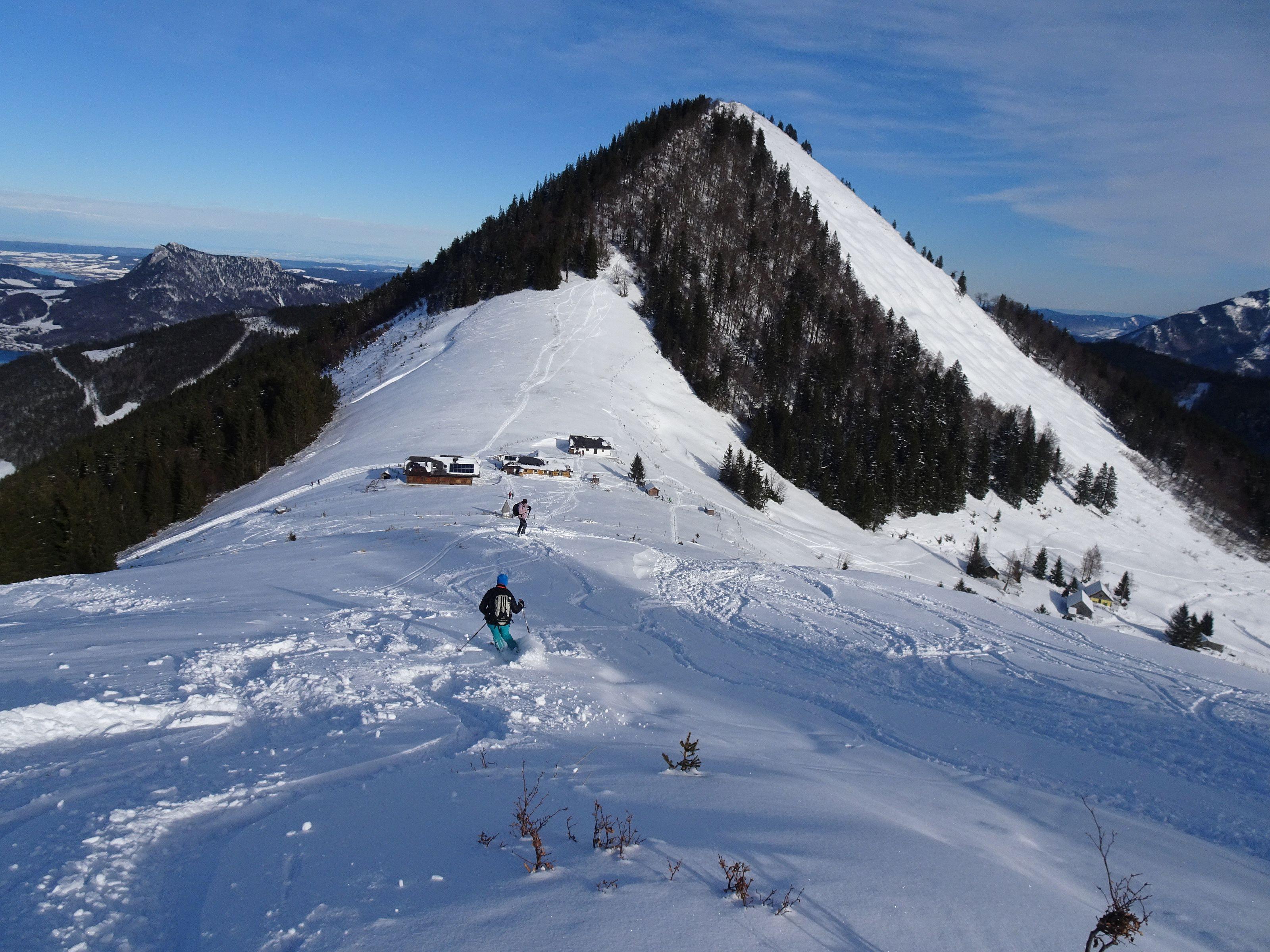 Am Vormittag noch überraschend gute Verhältnisse. Bei der Abfahrt auf der Forststraße die Ski ca 100m getragen, sonst kein Feindkontakt; wird sich bei der häufigen Befahrung wohl schnell ändern. Buntgemischte Bergfreunde waren heute unterwegs, Schneeschuhgeher, Rodler....ec. Wetter : viel Sonne, dünne Schleierwolken, am Gipfel schwacher Wind. Aufstieg über die NW Seite -Döllerer