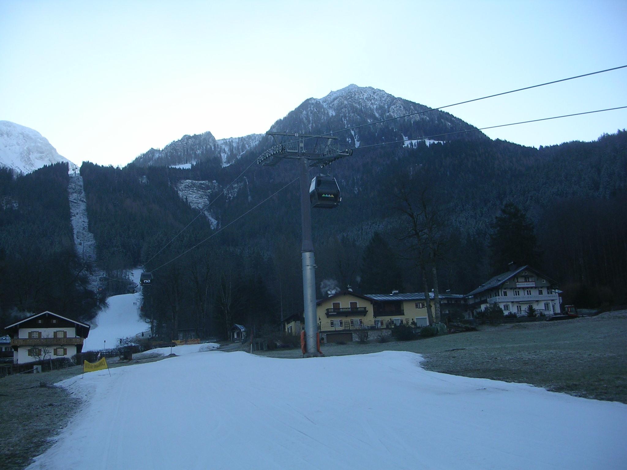 Am Anfang ist vom Winter nicht viel zu sehen, außer ein Kunstschneeband in der Wiese, aber immerhin kann man gleich anschnallen. Das ist für mich die optimale Kombination - meine Tochter geht mit Freundin auf die Jennerpisten und ich vertreibe mir inzwischen die Zeit auf den Rossfeldern.