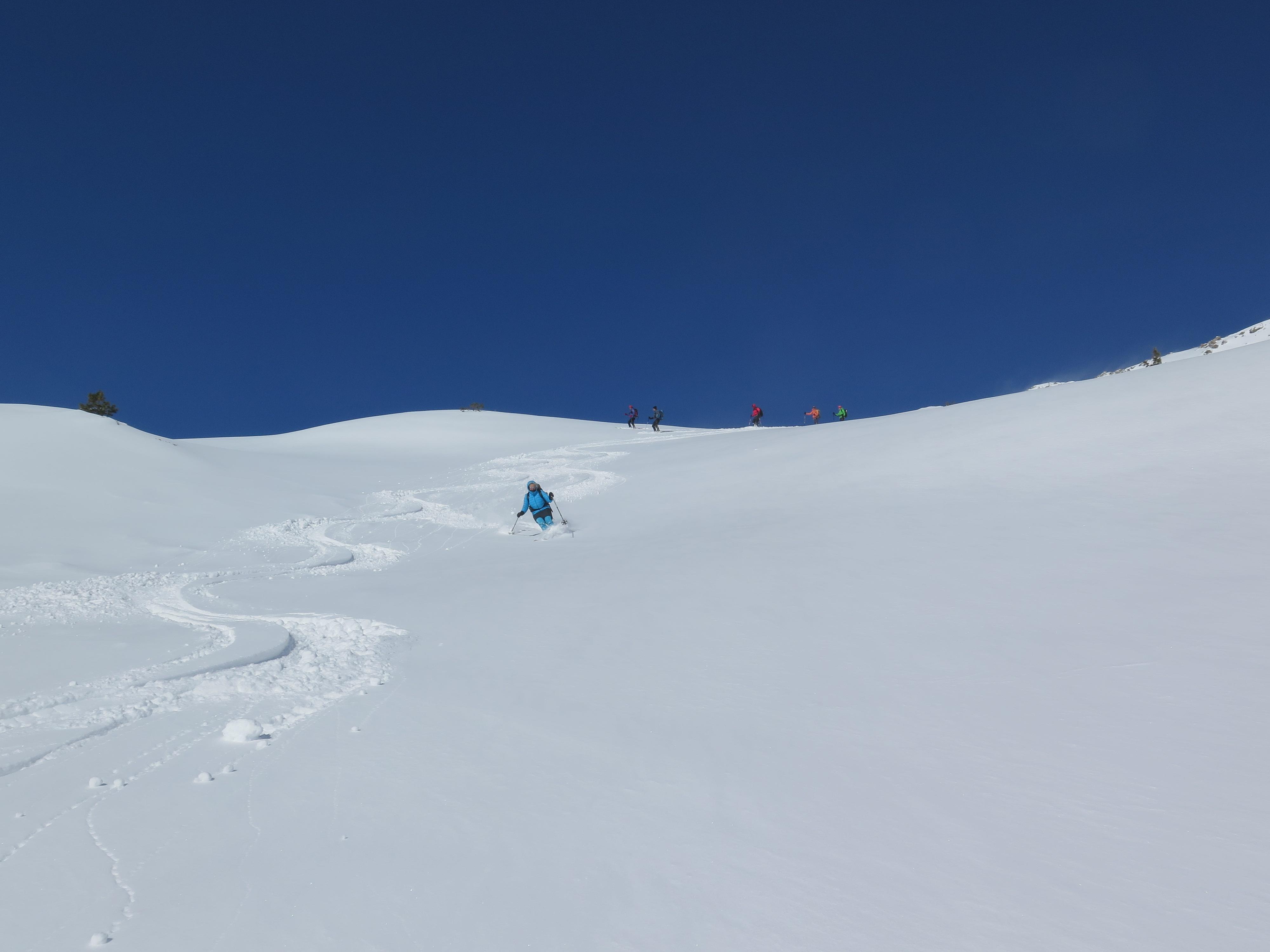 27.2 Vormittags bei Sonnenschein Aufstieg Richtung Rainbachsee und herrliche Pulverschneeabfahrt zum Tauernhaus. Mittags bei aufkommenden stürmischen Wind Abfahrt mit dem Hüttentaxi zum Parkplatz.