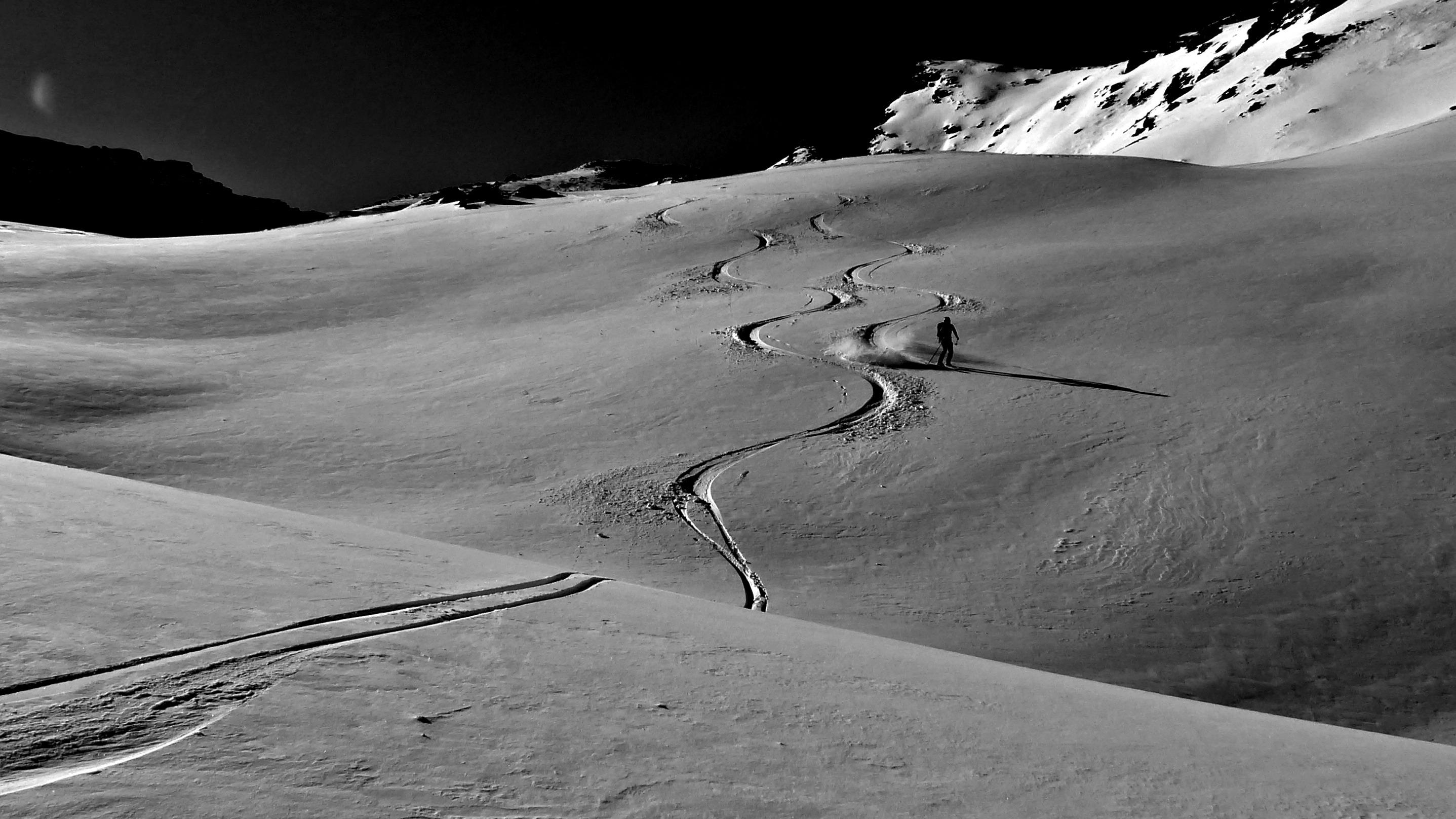 Die Idee, irgendwo hinzufahren, wo es nicht so viel Neuschnee und danach auch keinen Regen gegeben hat, war dann nicht ganz falsch, wie wir heute feststellen konnten...von abgeblasenem Gipfelrücken über angenehm firnigen Neuschneesulz bis zu altem, gesetzten Pulver war so ziemlich alles dabei - jedenfalls...es war sehr schön, es hat uns sehr gefreut ;-)))