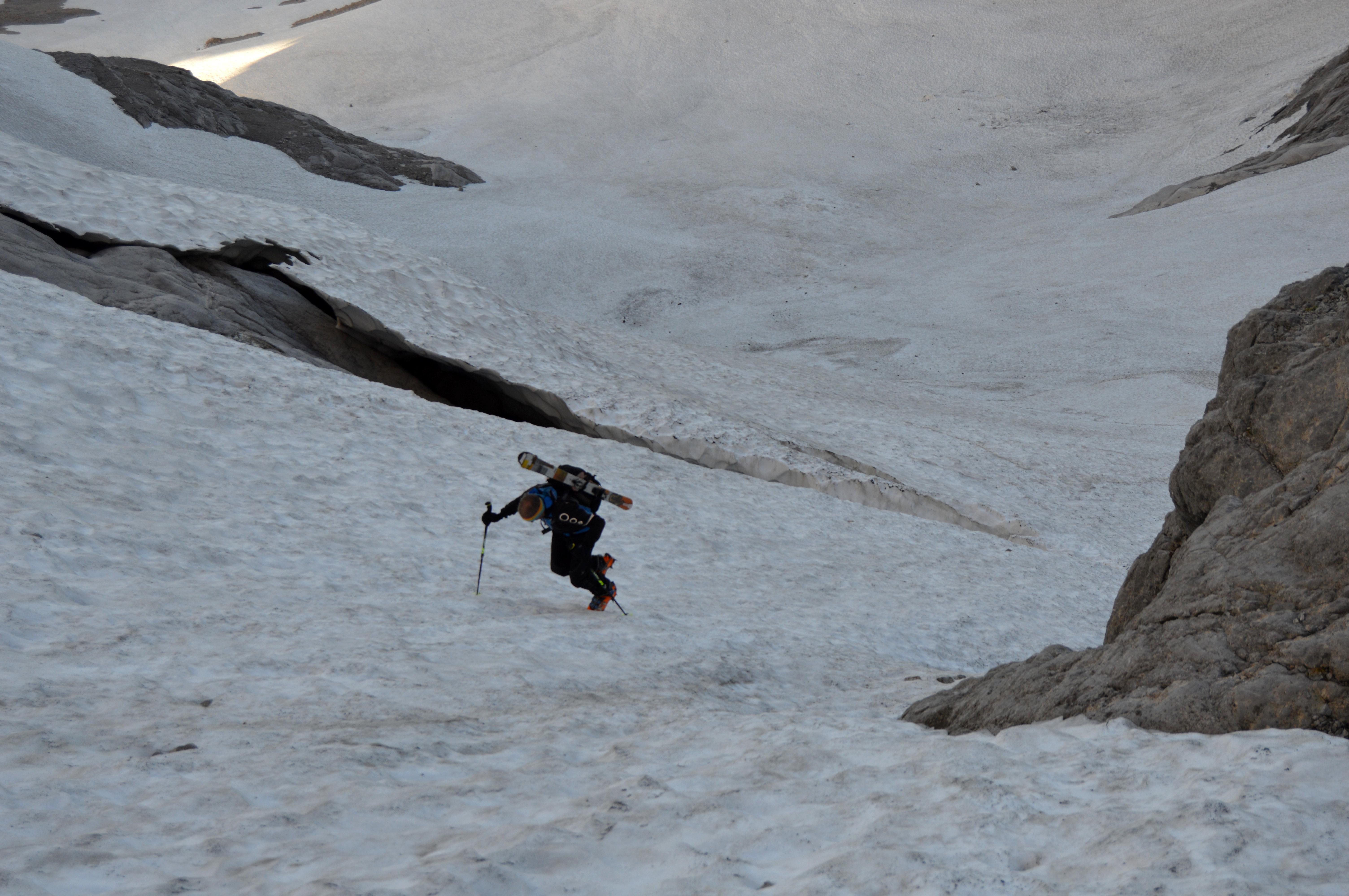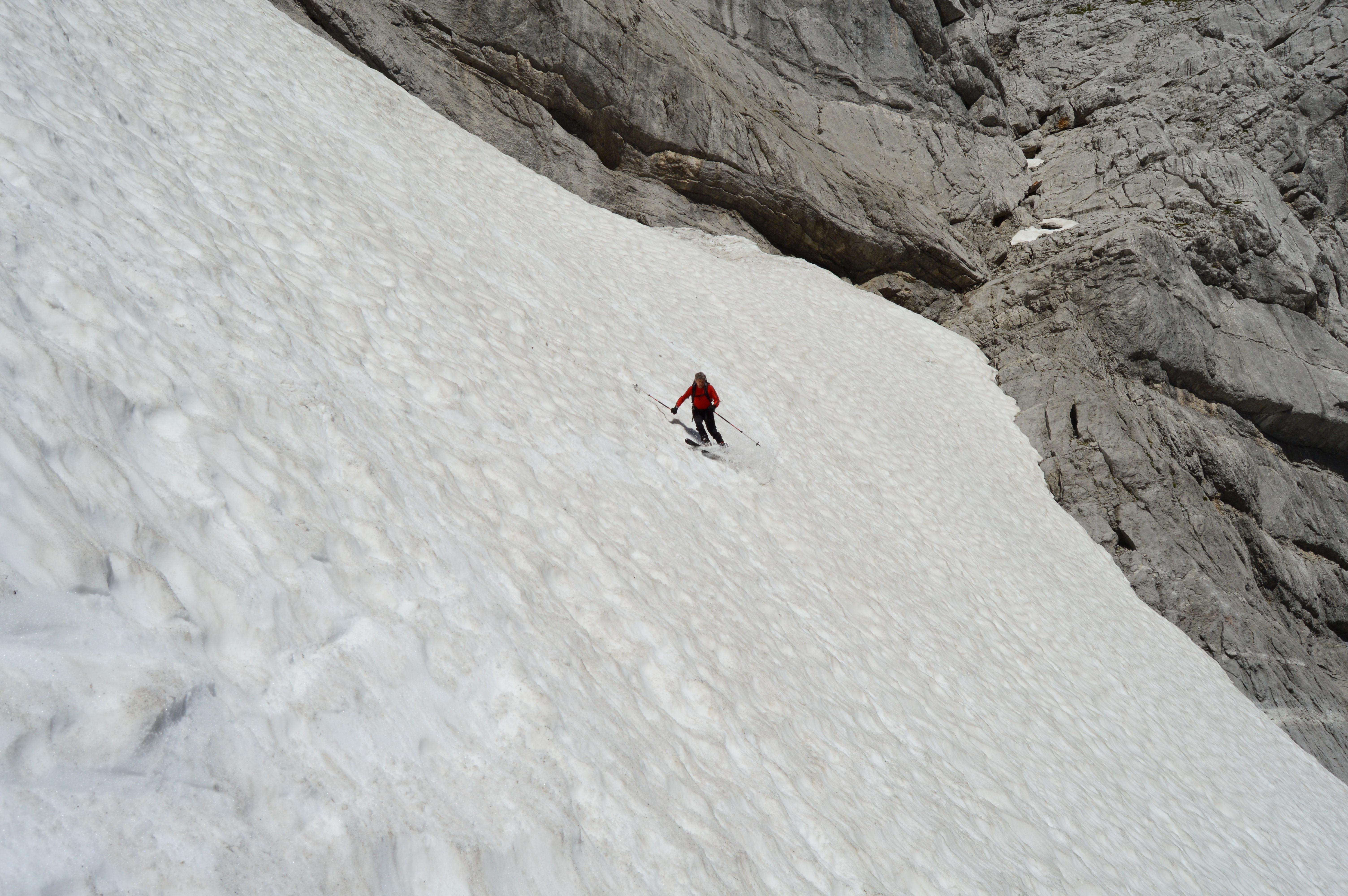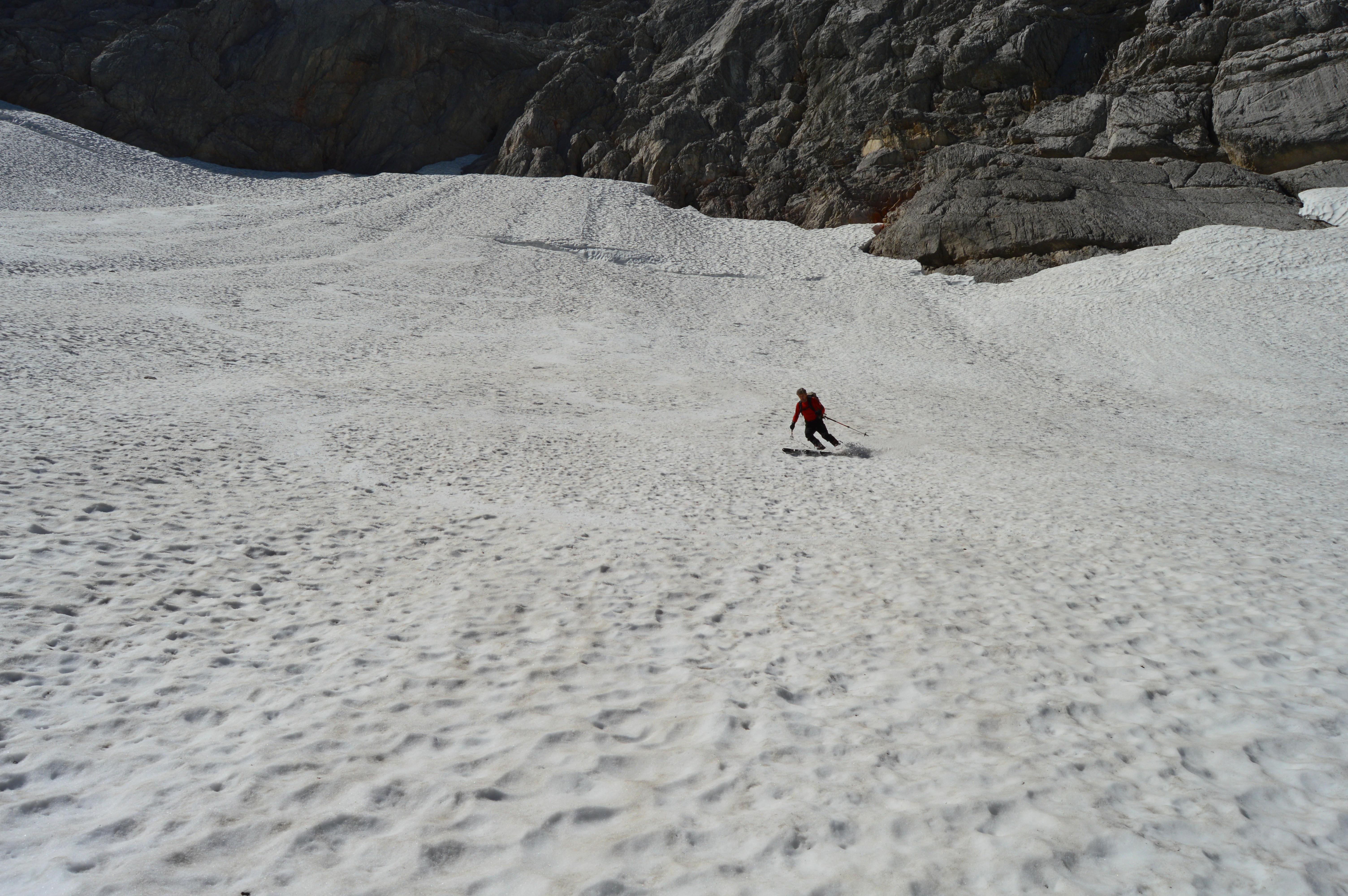 Sehr kompakter und gut zu fahrender Sommerfirn mit vielen ungläubigen Blicken der Wanderer beim Abstieg. Das wäre die Kurzfassung dieser alpinen (Ski)-Bergtour.