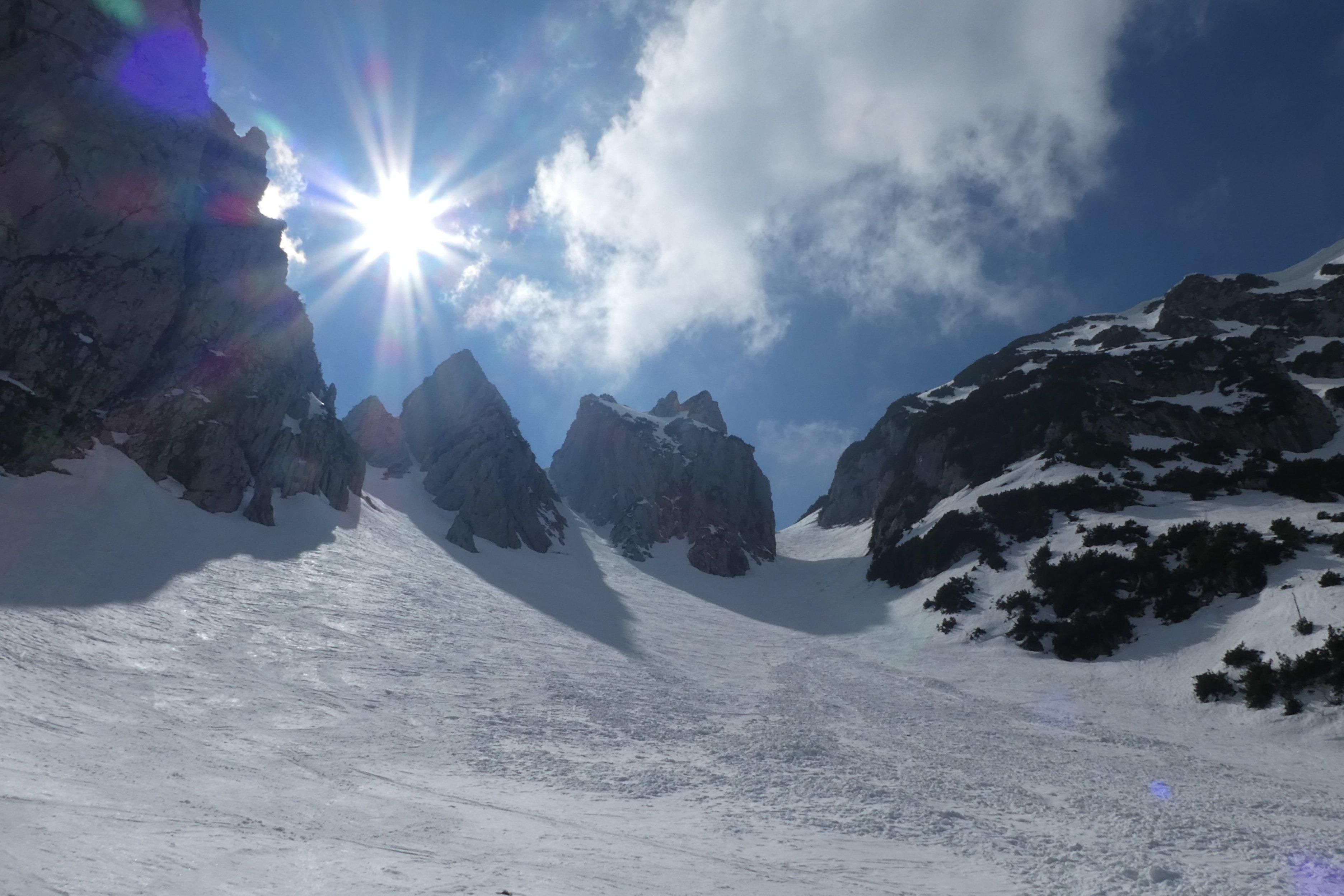 In der Hoffnung, dass die nächtliche Abstrahlung dem Wetterbericht gefolgt ist, bin ich nach Adlgass gefahren. Es hätte südseitig ja was gehen können. Leider wurde das nichts, schon an der Rosskarscharte war südseitig ab 11 Uhr nur Sumpf. Lustig, wie anders die Bedingungen selbst in nahegelegen Bergen sein können - siehe Annamirls Bericht vom Soho. Das Wetter war wie bei ihr, am Morgen noch flächige Bewölkung, die sich später in leichte Quellbewölkung auflöste.