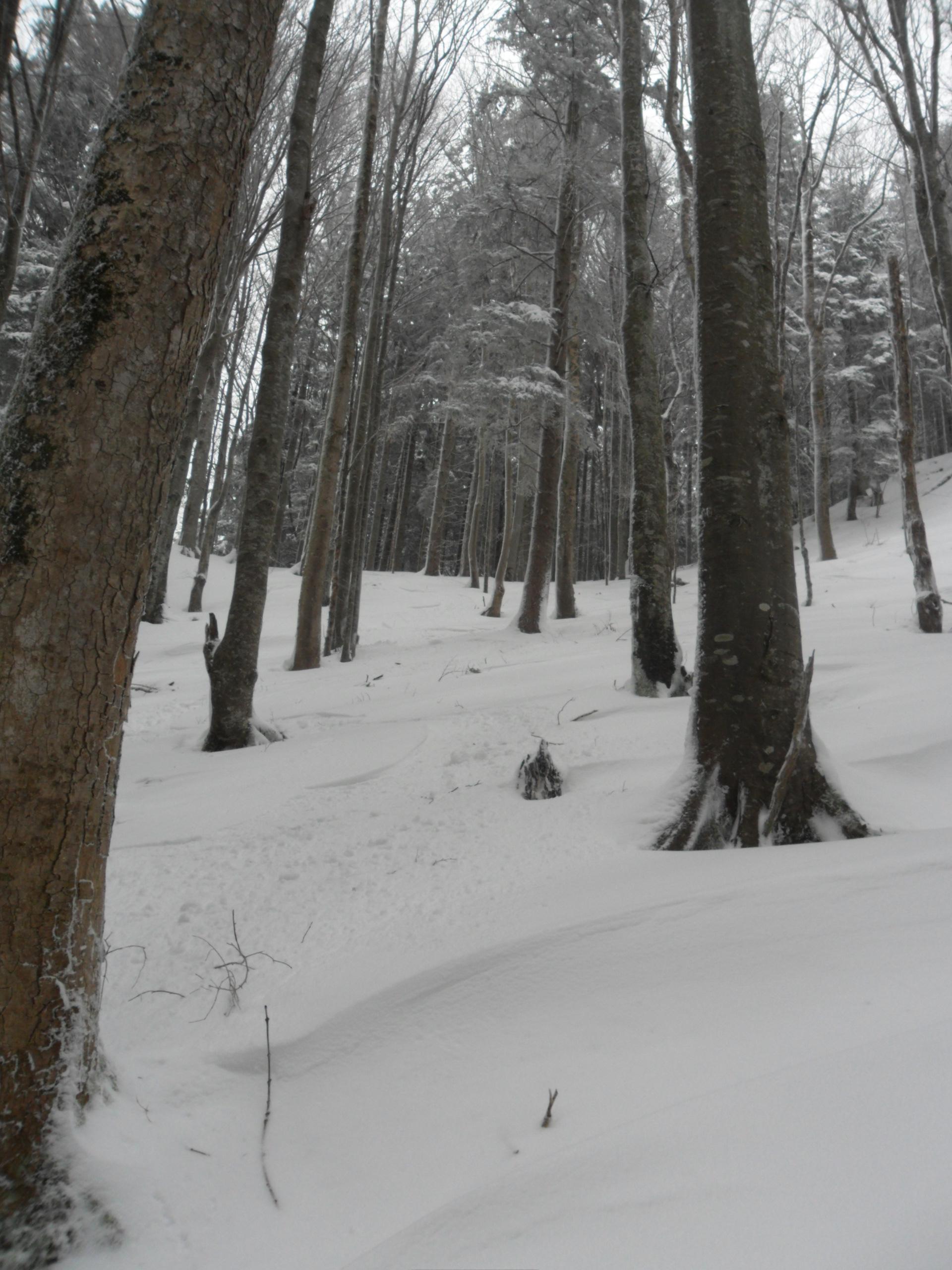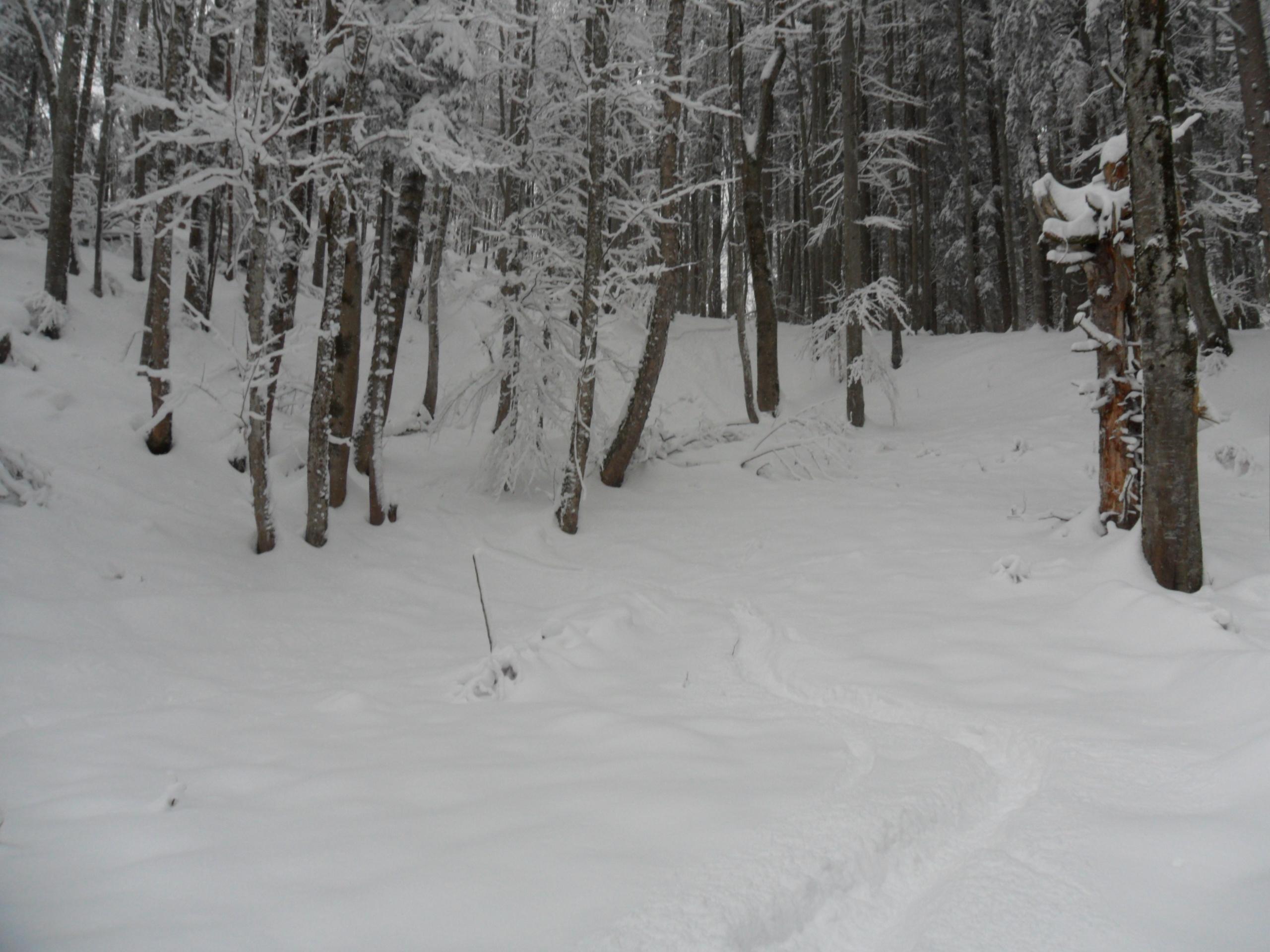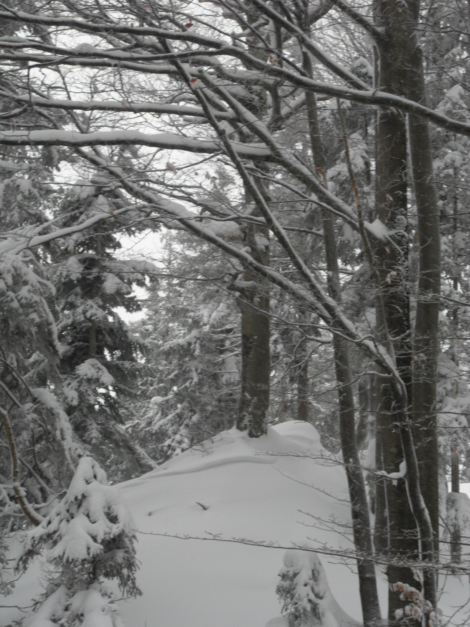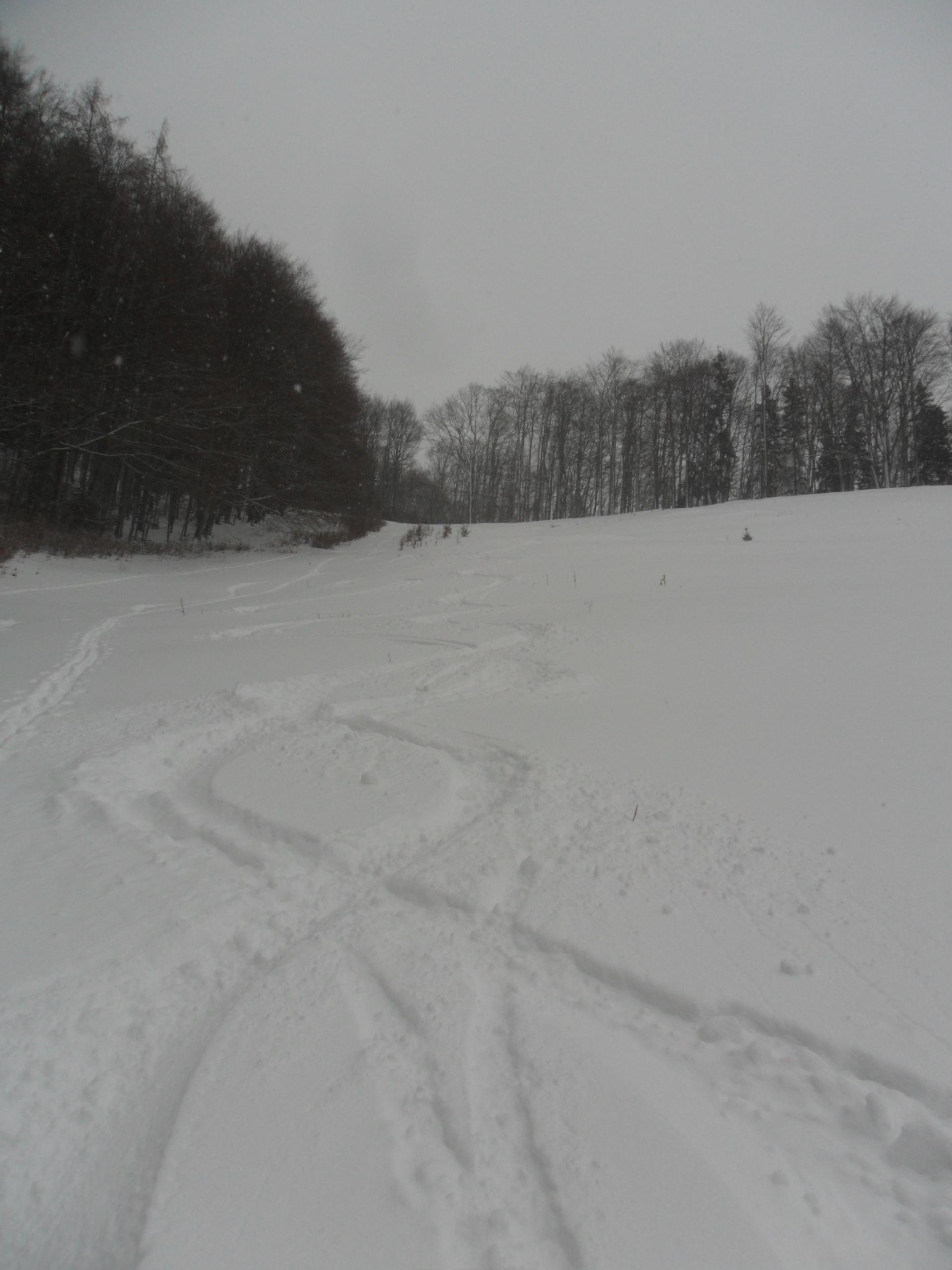 Oben gefährlich, der Nebel reicht weit runter und ich hatte nur am Nachmittag Zeit. Ideale Bedingungen für eine Chiemgauer Waldgankerltour. Da geht man kein unnötiges Risiko ein und im Nebel rumstapfen macht mir sowiso keinen Spass. Bei ca. 20 cm Pulver auf gefrorener Unterlage 400 hm Abfahrtsgaudi durch unverspurtes Wald- und freies Gelände :-). Eine kurze, aber abwechslungsreiche Tour die richtig Spass gemacht hat.
