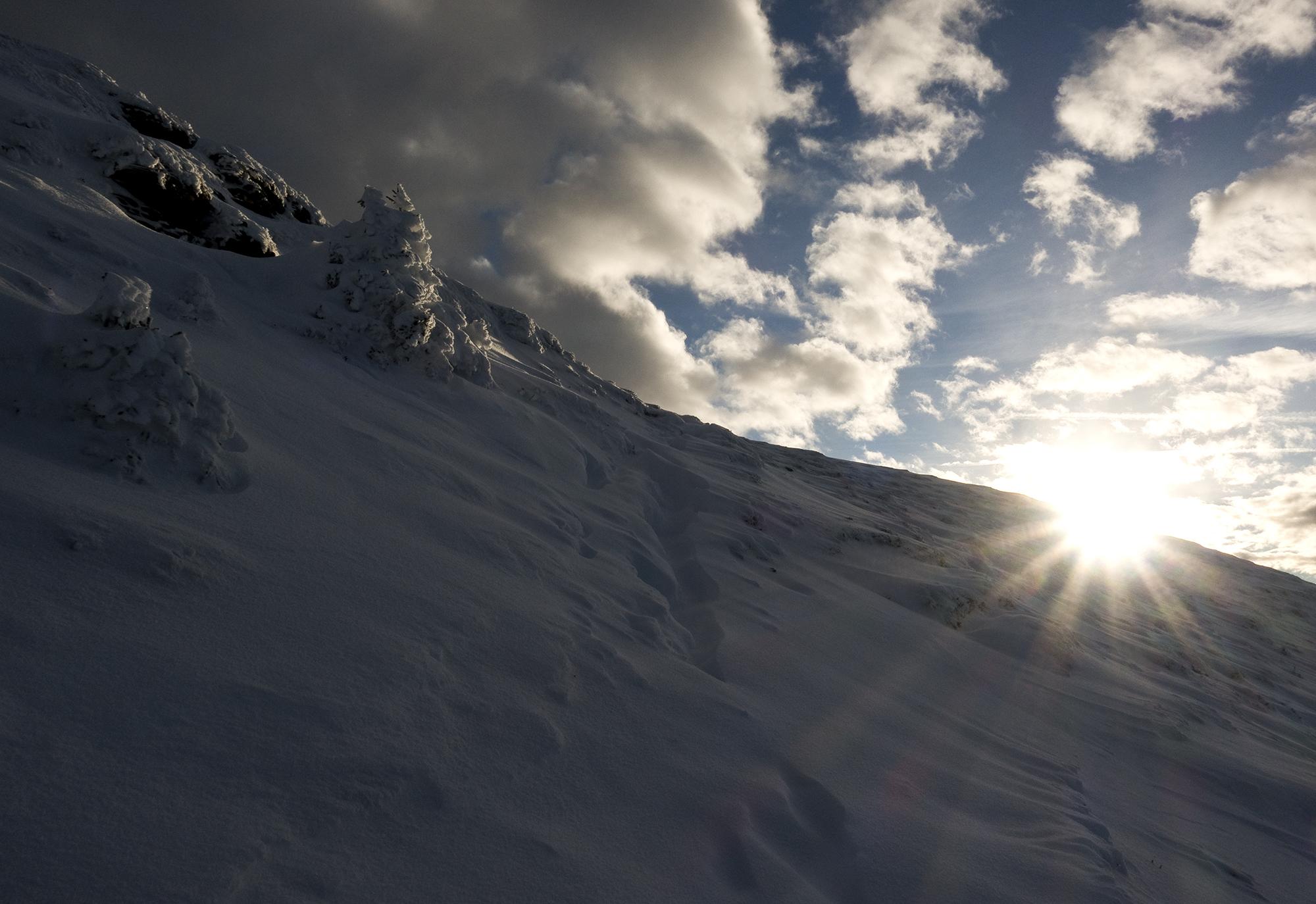 "Gleich reißt's auf!", - das hat sich wohl jeder Skitourengeher schon mal gewünscht. Glück gehört dazu. In diesem Fall aber auch vielen Dank an die Wetterfrösche, die eine gute Wetterprognose gemacht haben. Sonst wäre ich niemals erst nachmittags um halb zwei in Unterberg gestartet.