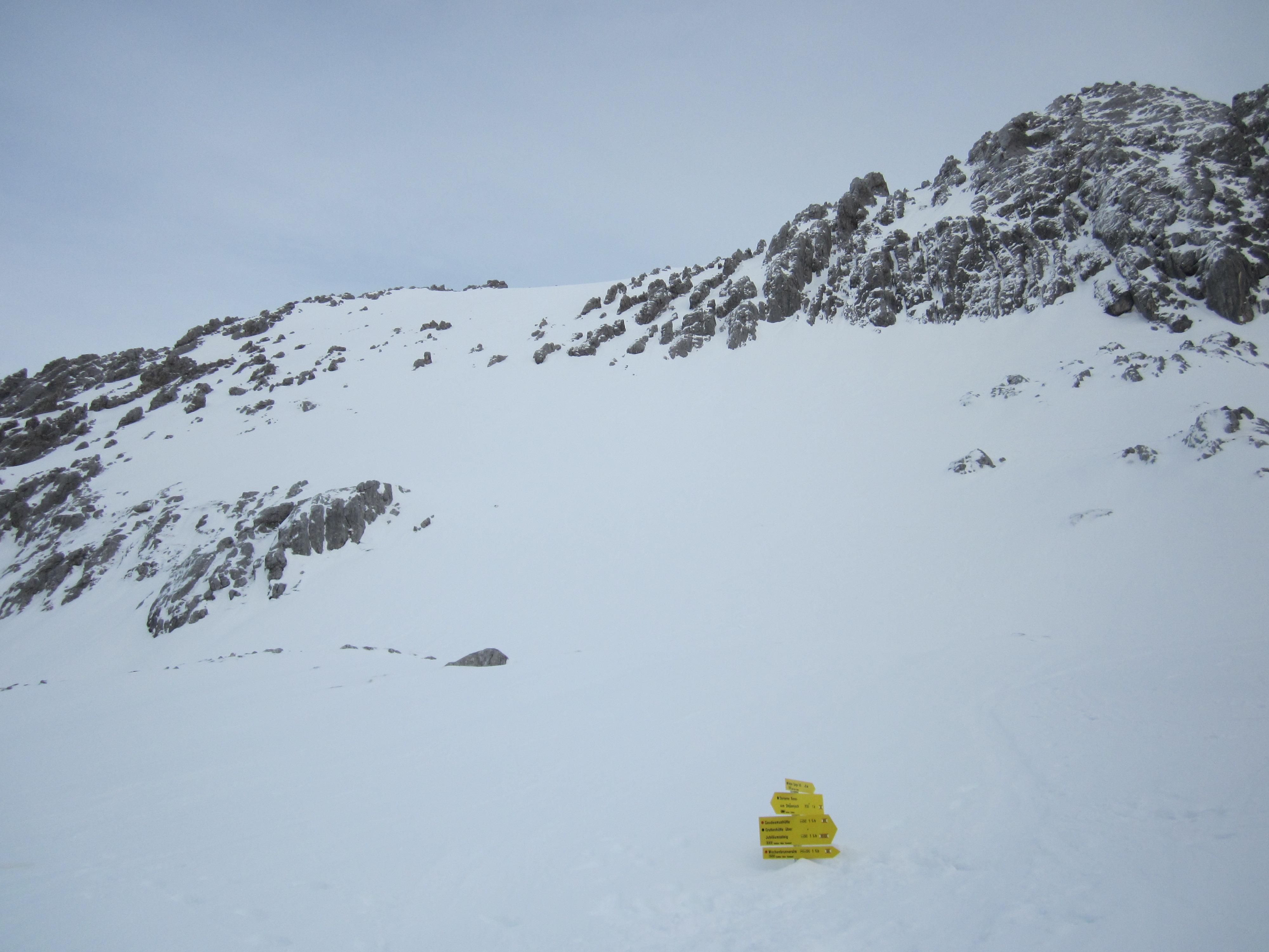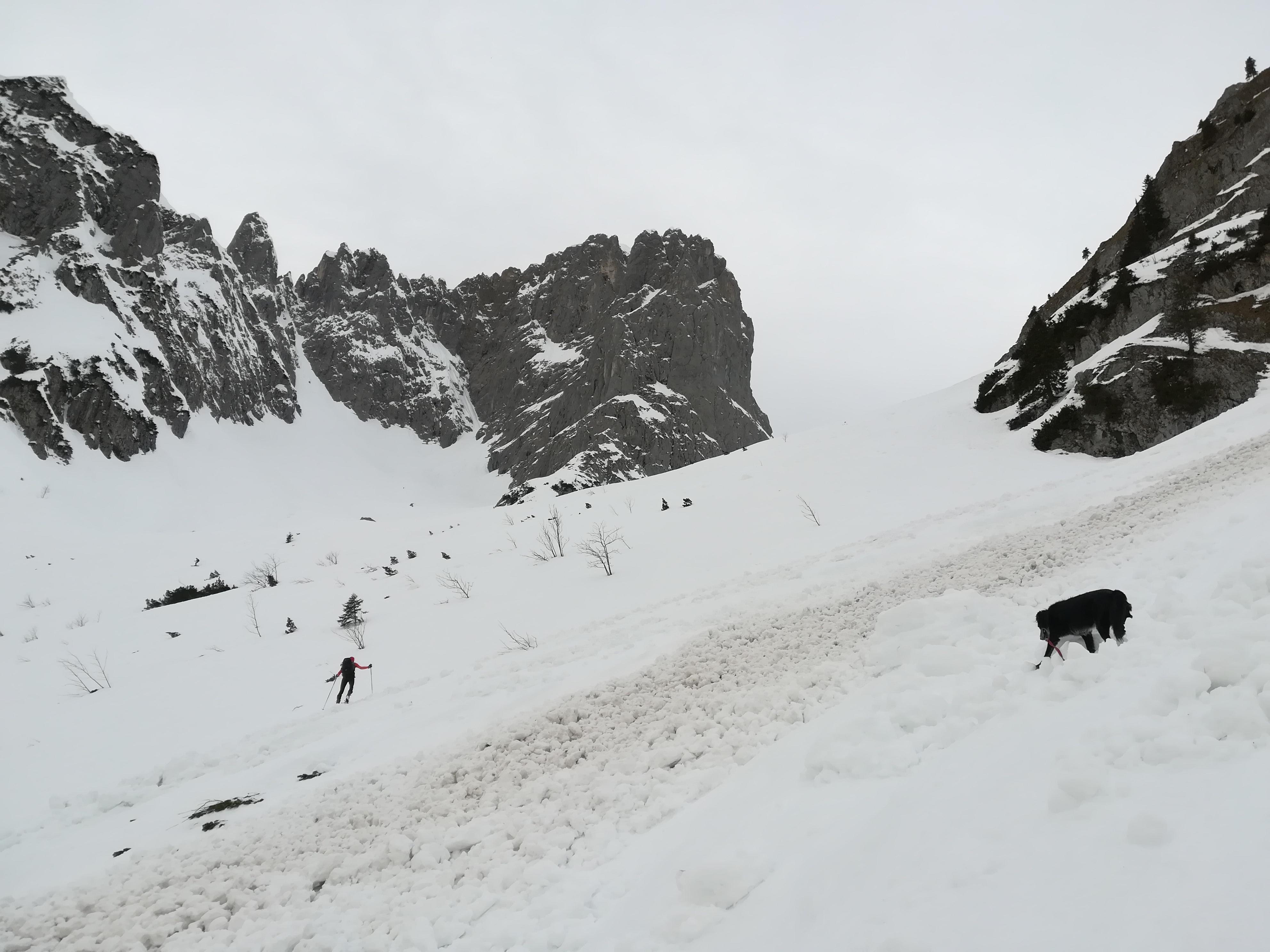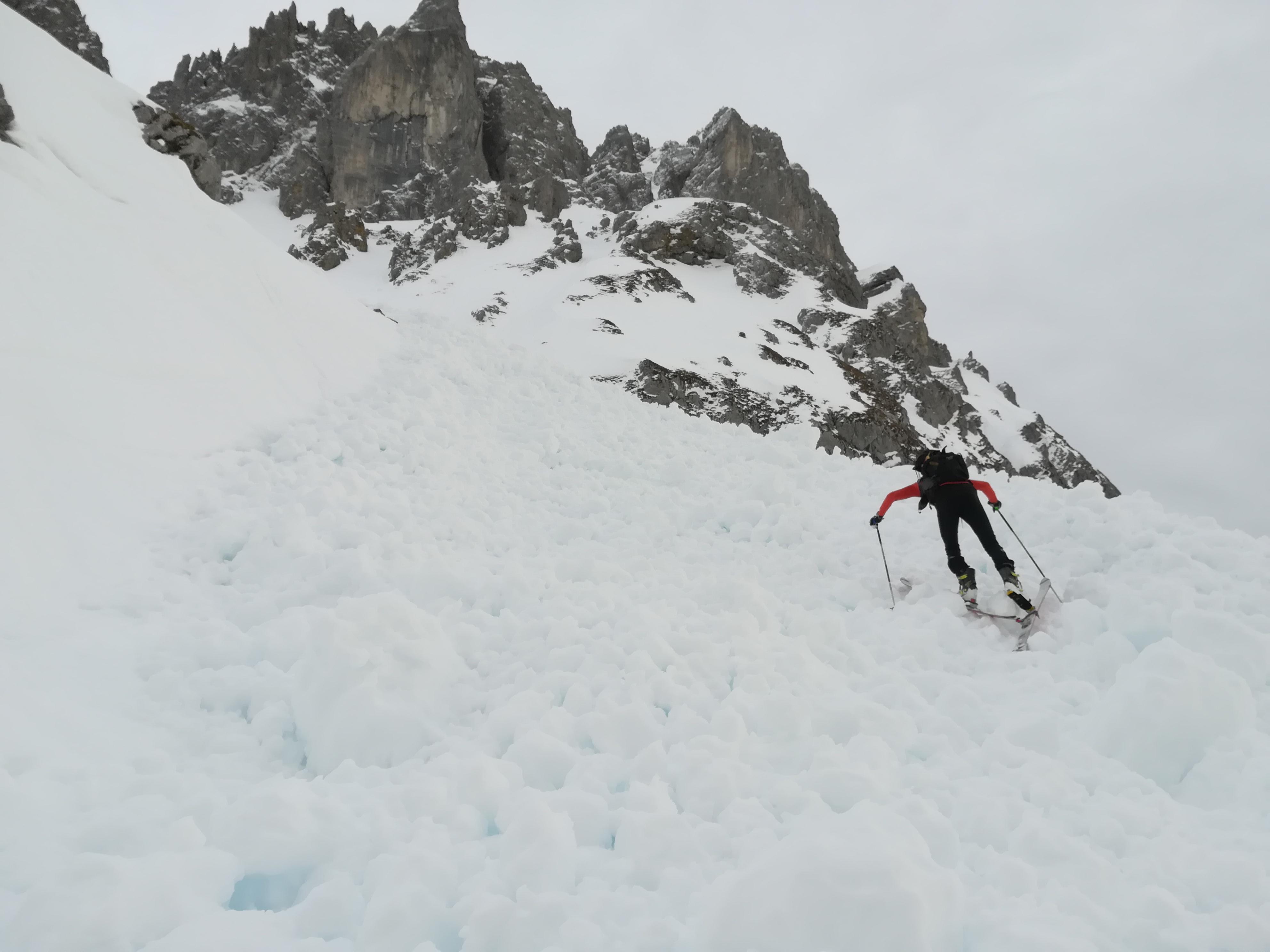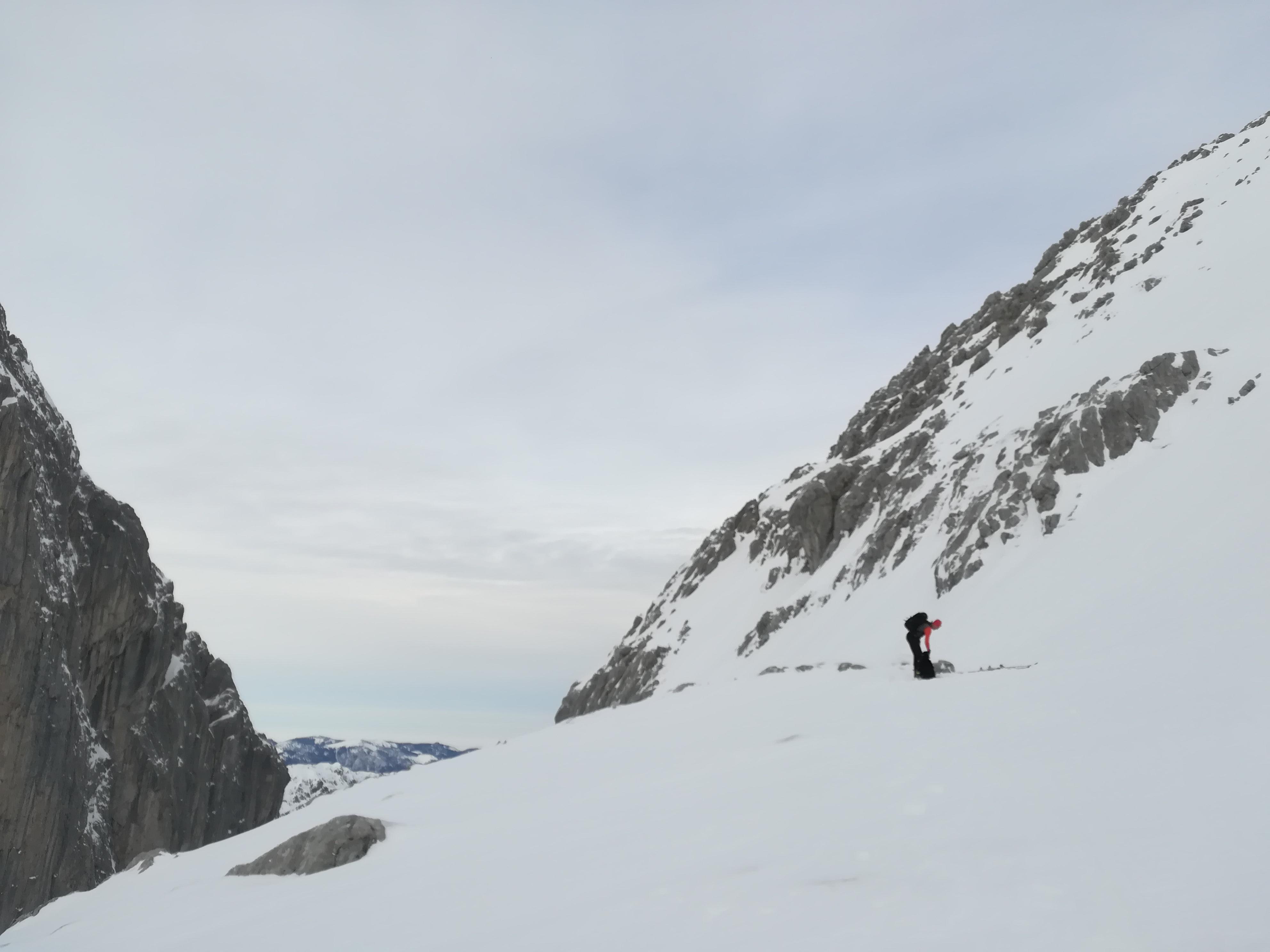 In der Hoffung auf etwas Firn an die Südseite des Kaisers. Eigentlich eine entspannte Tour. Jedoch nur begrenzt bei Harsch und vielen Lawinenknollen.