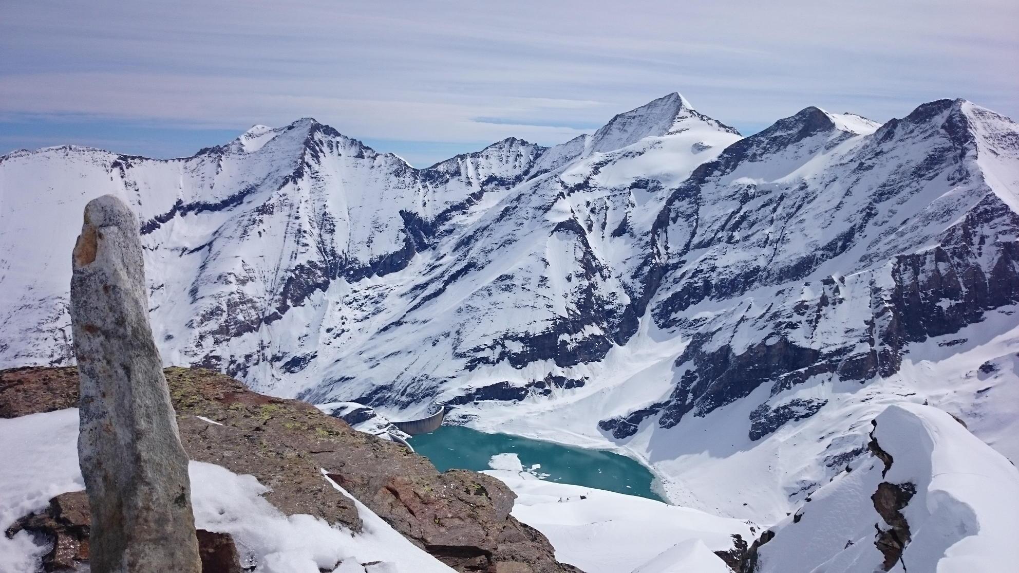 Am Gipfel des Großen Grießkogel (3066m) - Blick auf Stausee Moserboden, von links Hoher Tenn, Wiesbachhorn, Bratschenköpfe