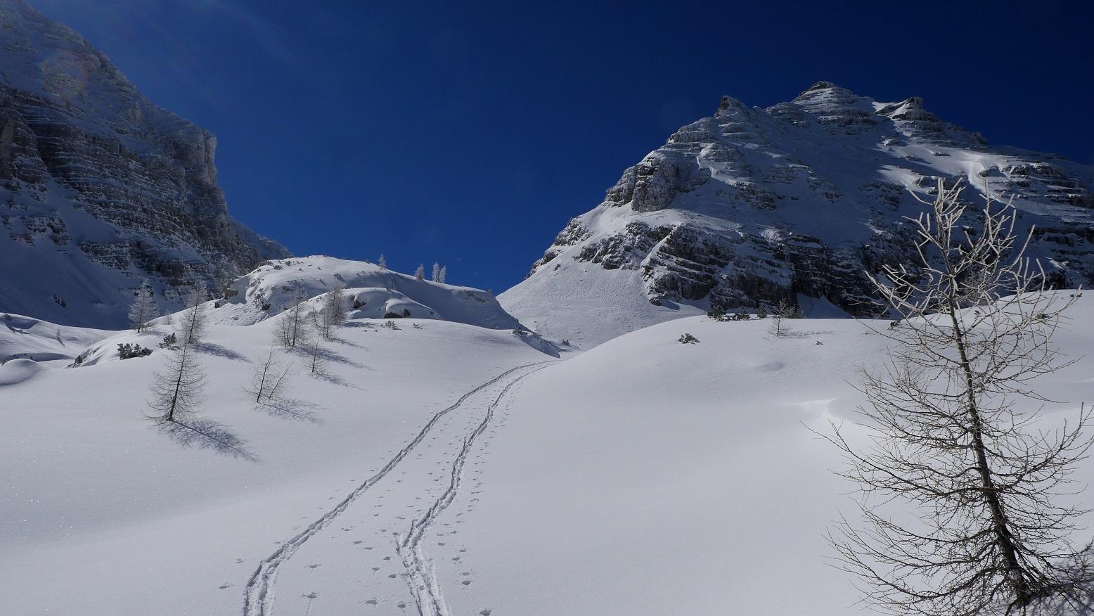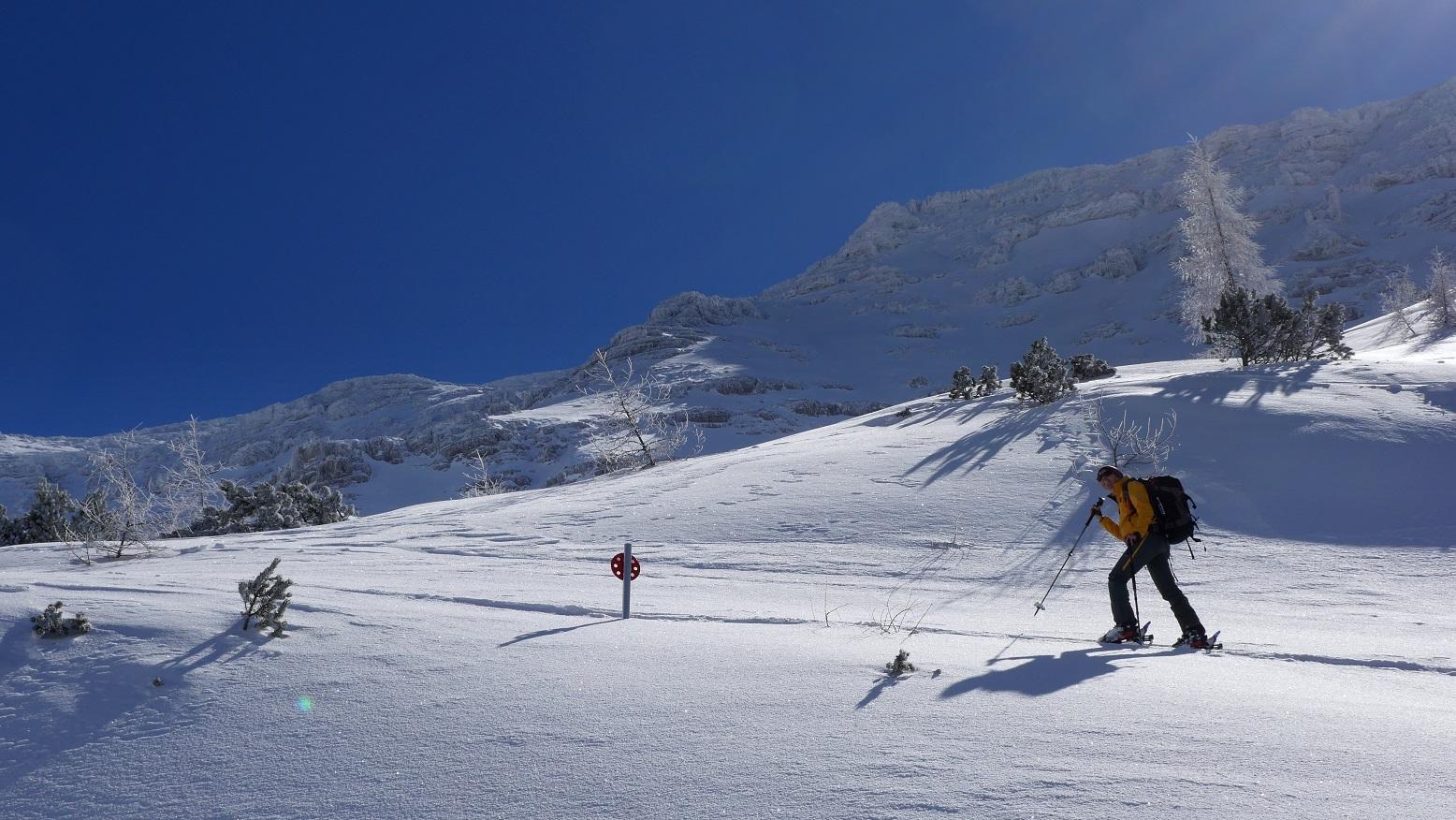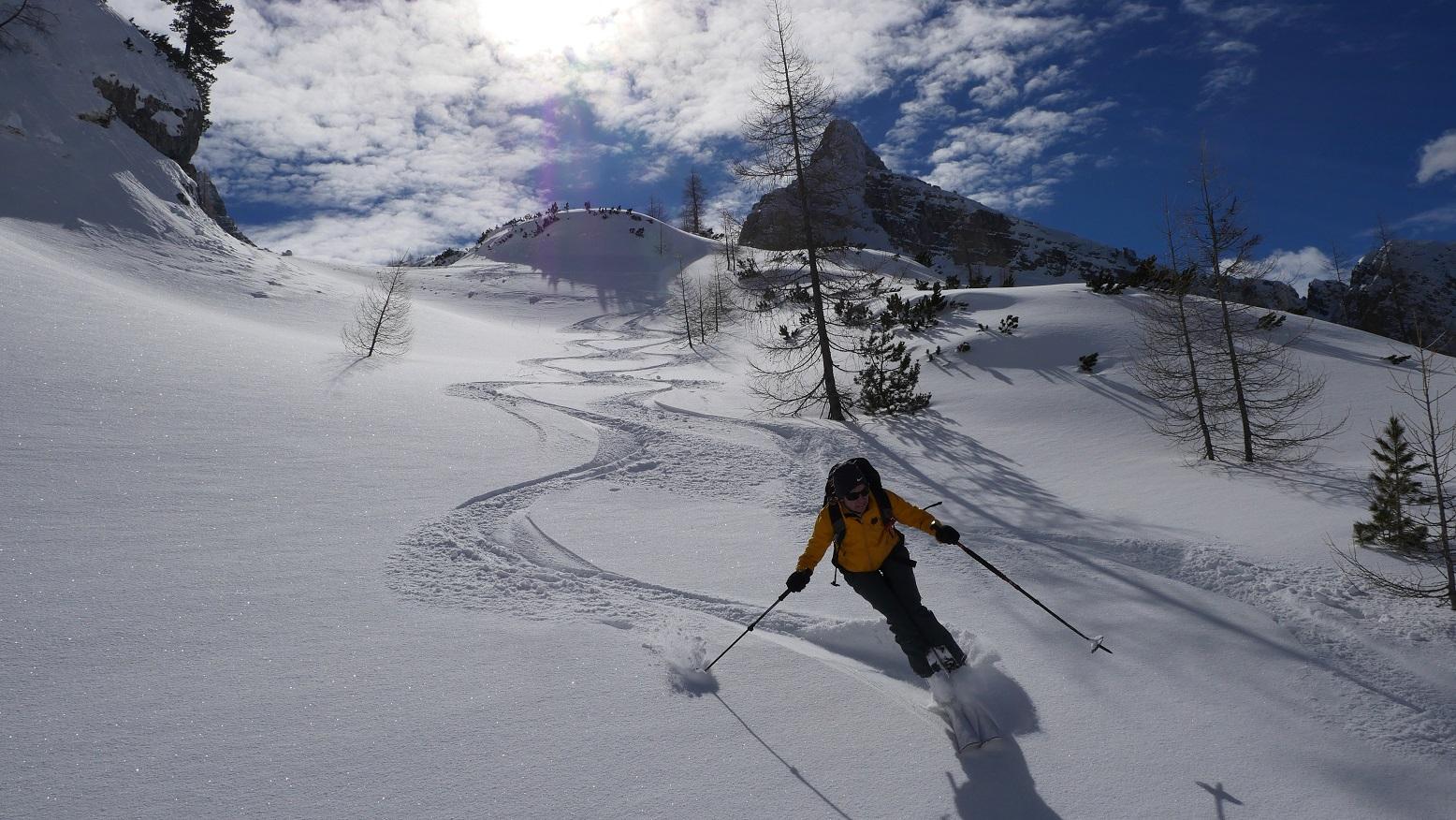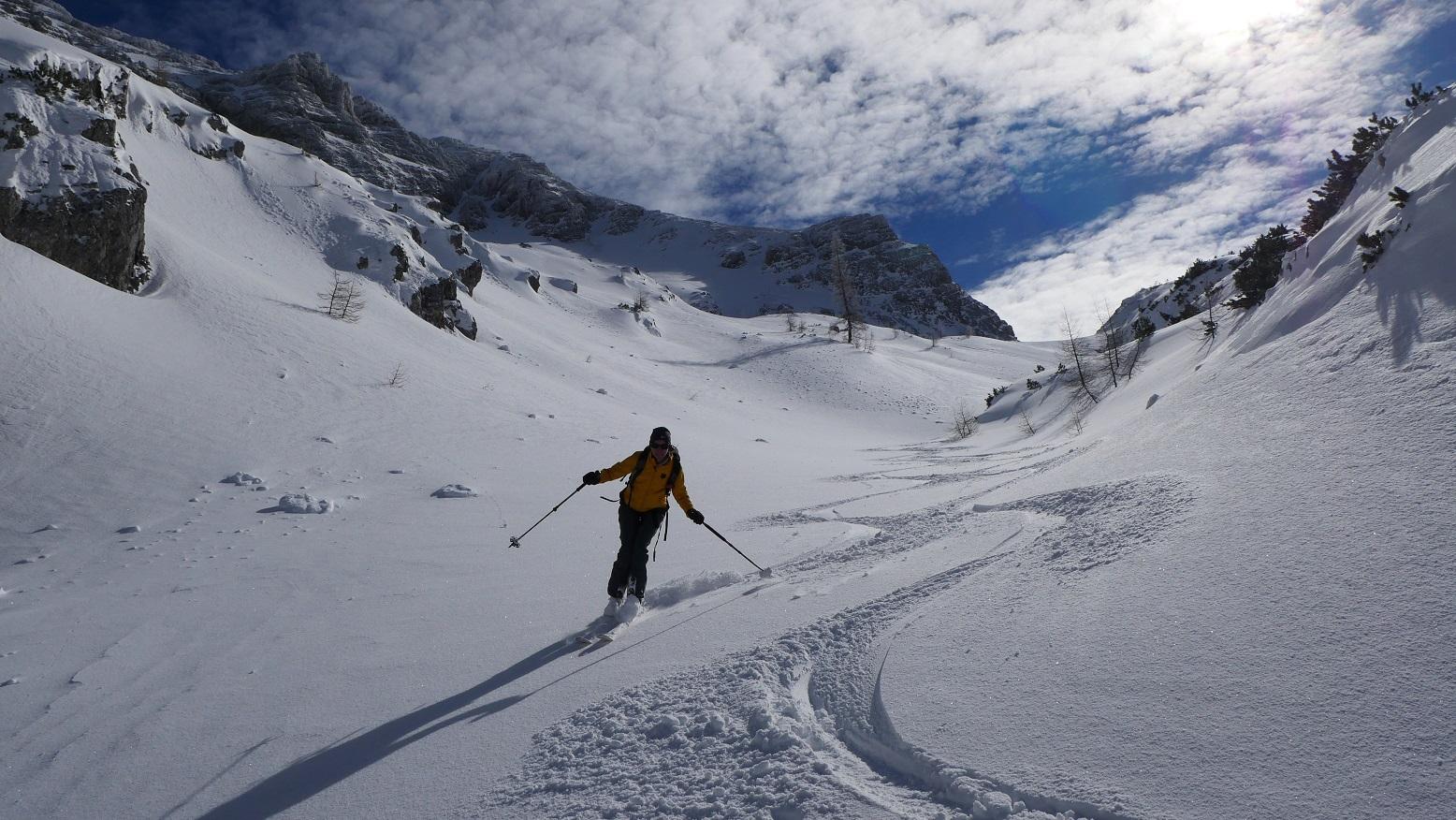 Von Vorderstoder über den Schafferteich und die Bergrettungshütte ins Loigistal. Auf ca. 1.450m teilen sich die beiden Talarme. Wir folgen der linken Route (Unteres Loigistal) hinauf zur Zwischenwandscharte. Nun ca. 200m Abfahrt und um den Torstein herum Anstieg zur Wetterlucken. Angesichts dessen, dass 6 Tourengeher noch auf den Pyhrnerkampl rauf sind, verzichten wir auf den Gipfel und haben so das Vergnügen ein völlig jungfräuliches Oberes Loigistal abfahren zu können (gibts bei diesem Skitourenklassiker so gut wie nie, wenn man von Vorderstoder aufsteigt).