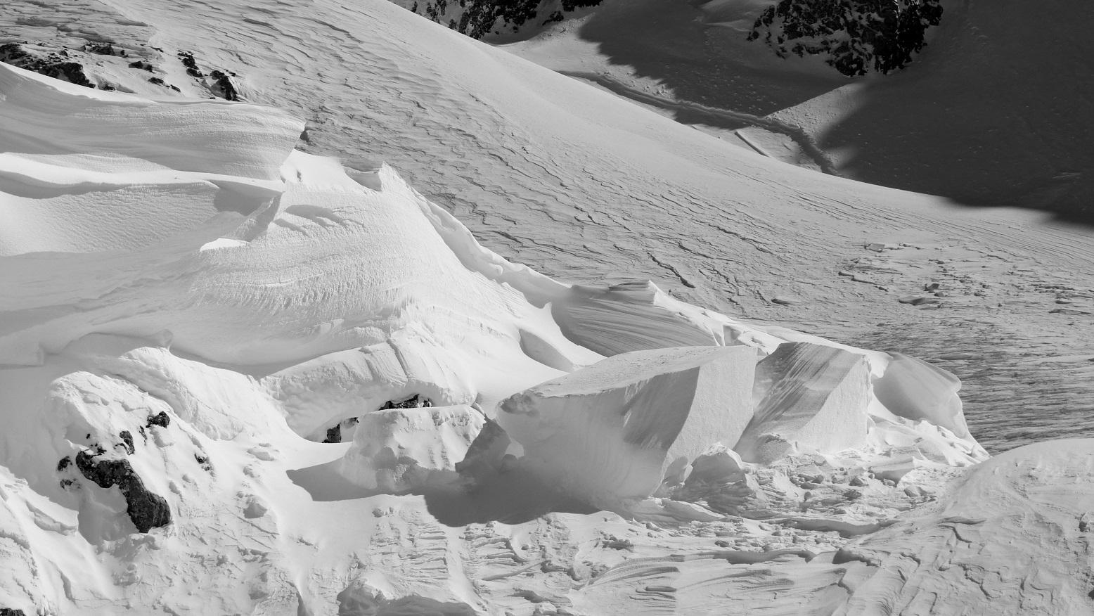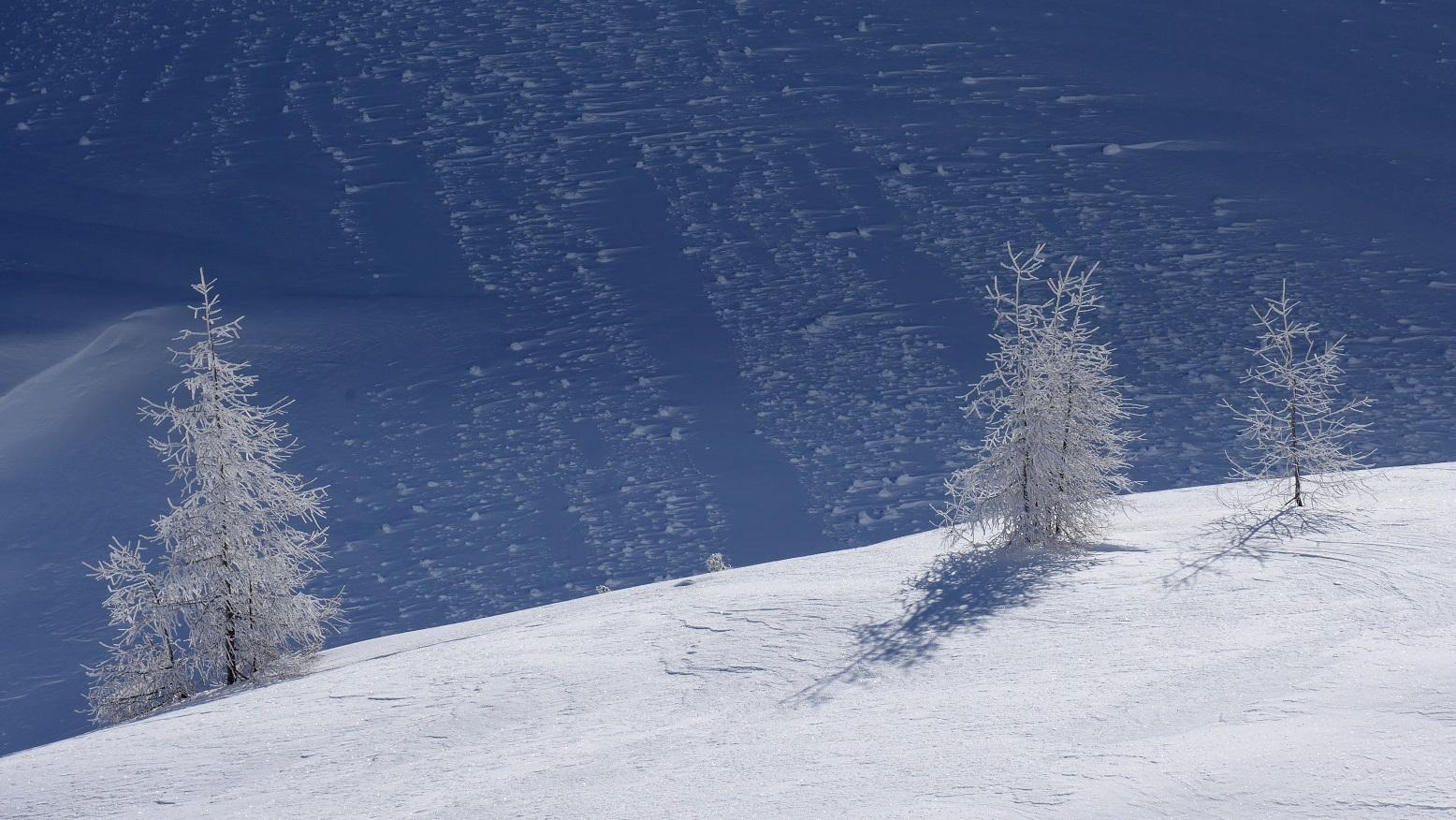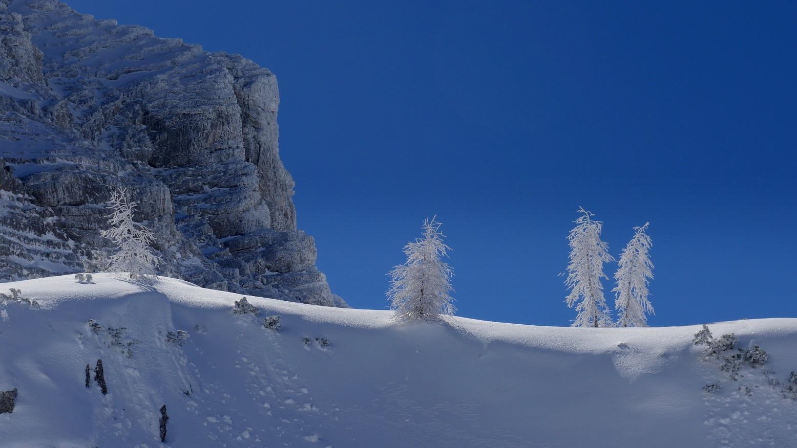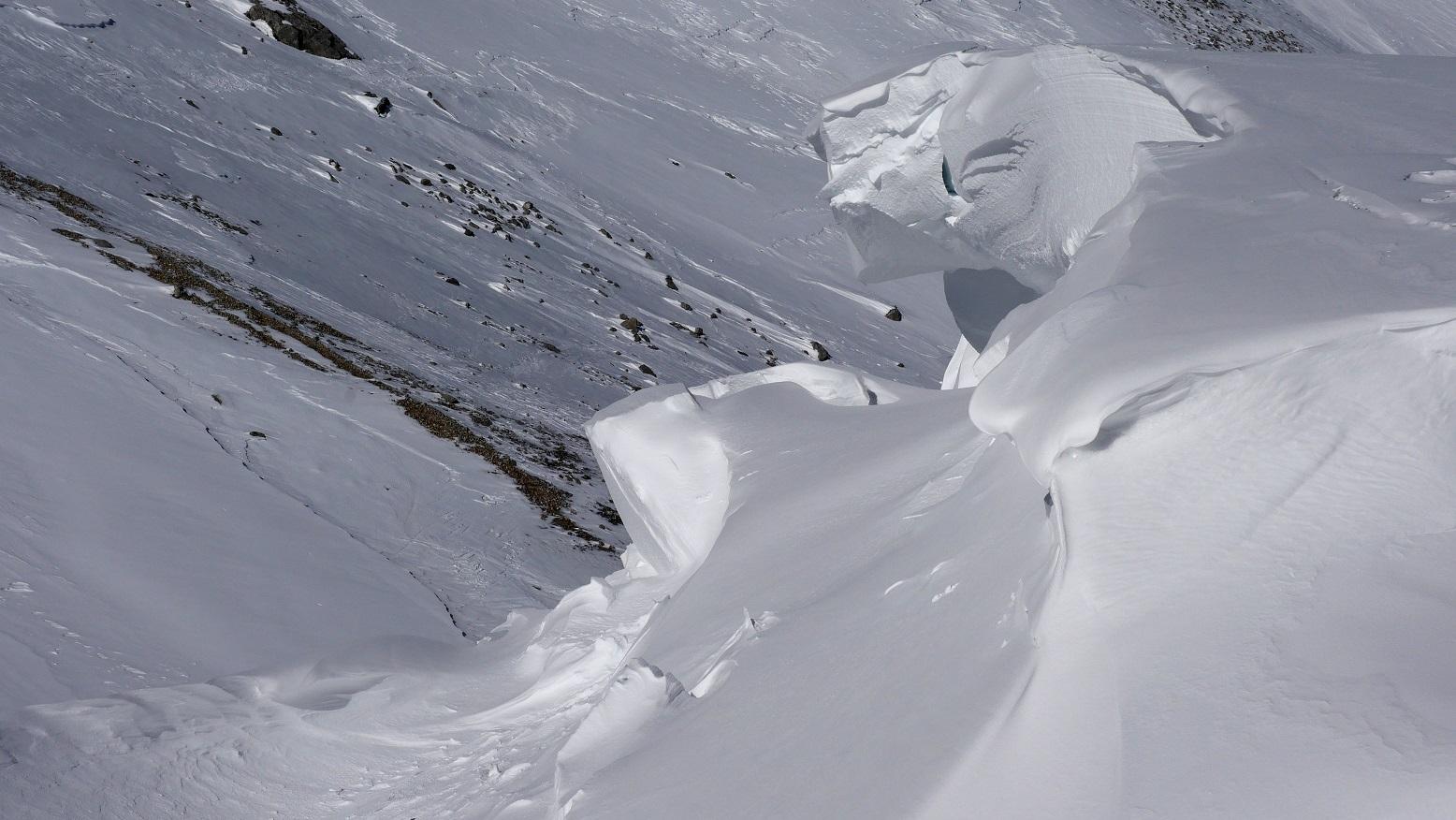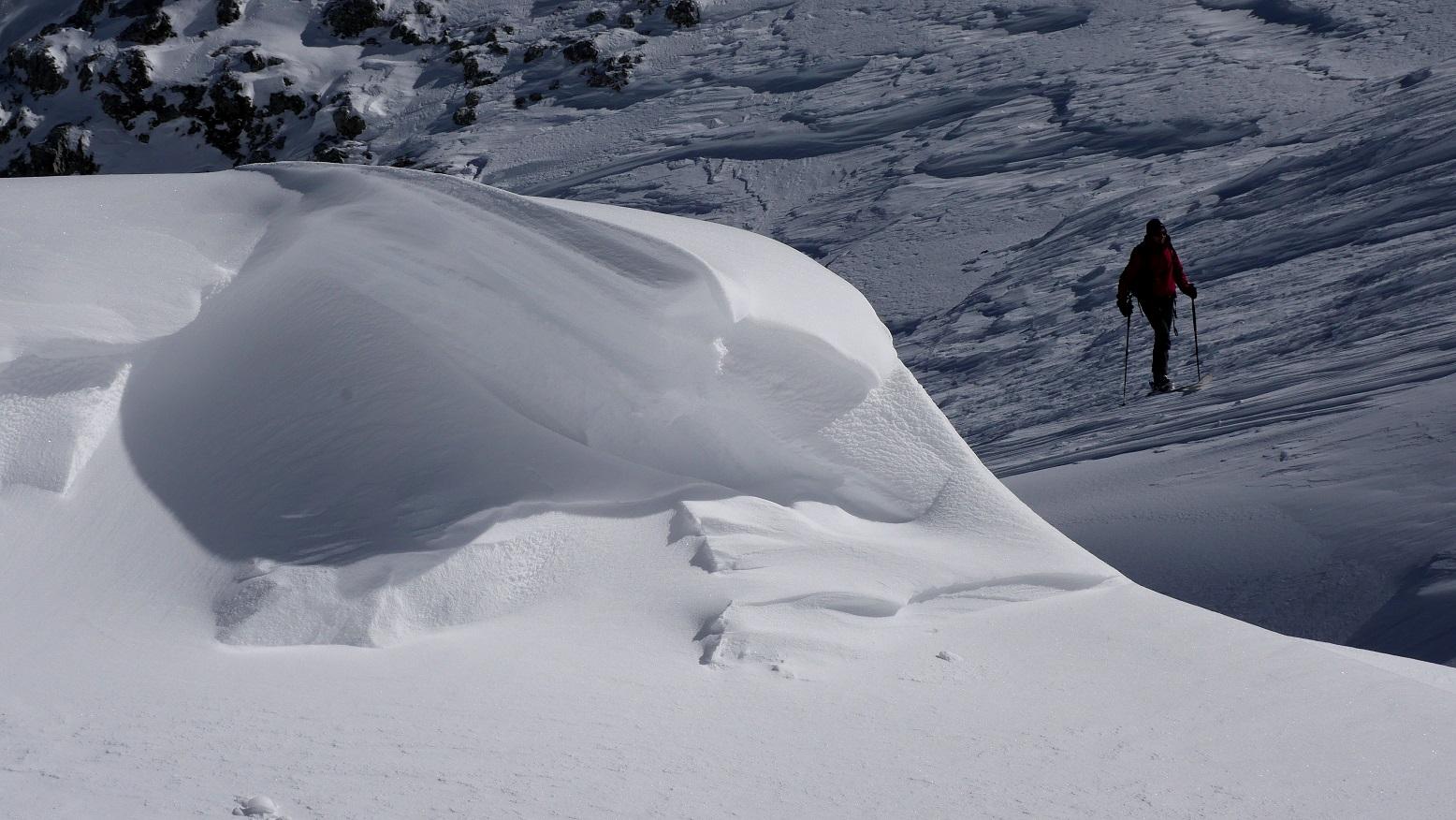 Tour nordseitig, nur die Verbindung zwischen den beiden Scharten südseitig. Keine Lawinenbeabachtungen, da ist auch auf 2.000m recht wenig Neuschnee, aber zahlreiche Windspuren sind erkennbar. Den wenigen Neuschnee hat´s natürlich irgendwohin verblasen, wir finden bei Anstieg und Abfahrt aber kaum nennenswerte Triebschneeansammlungen, die man nicht sofort erkennen würde.