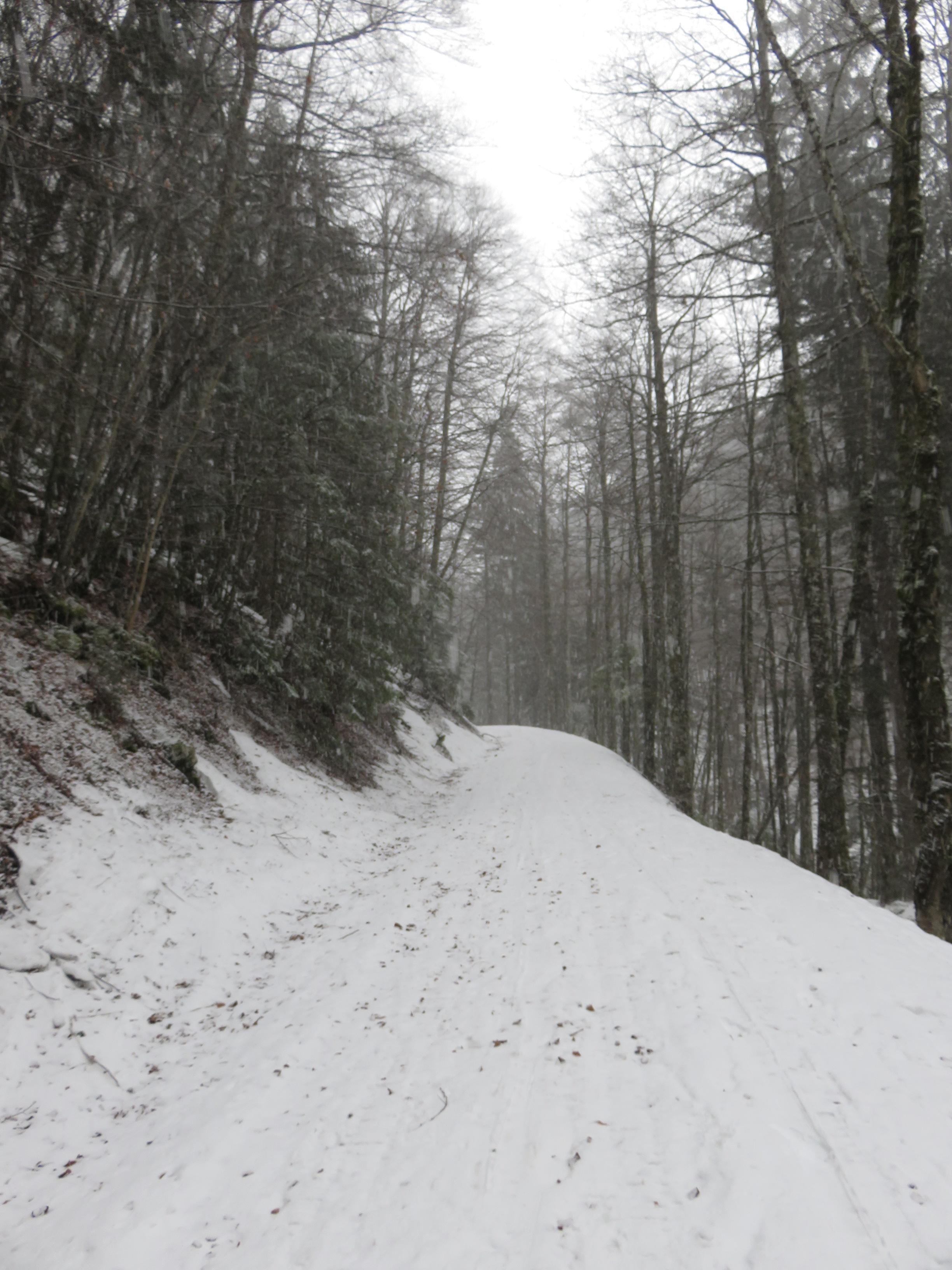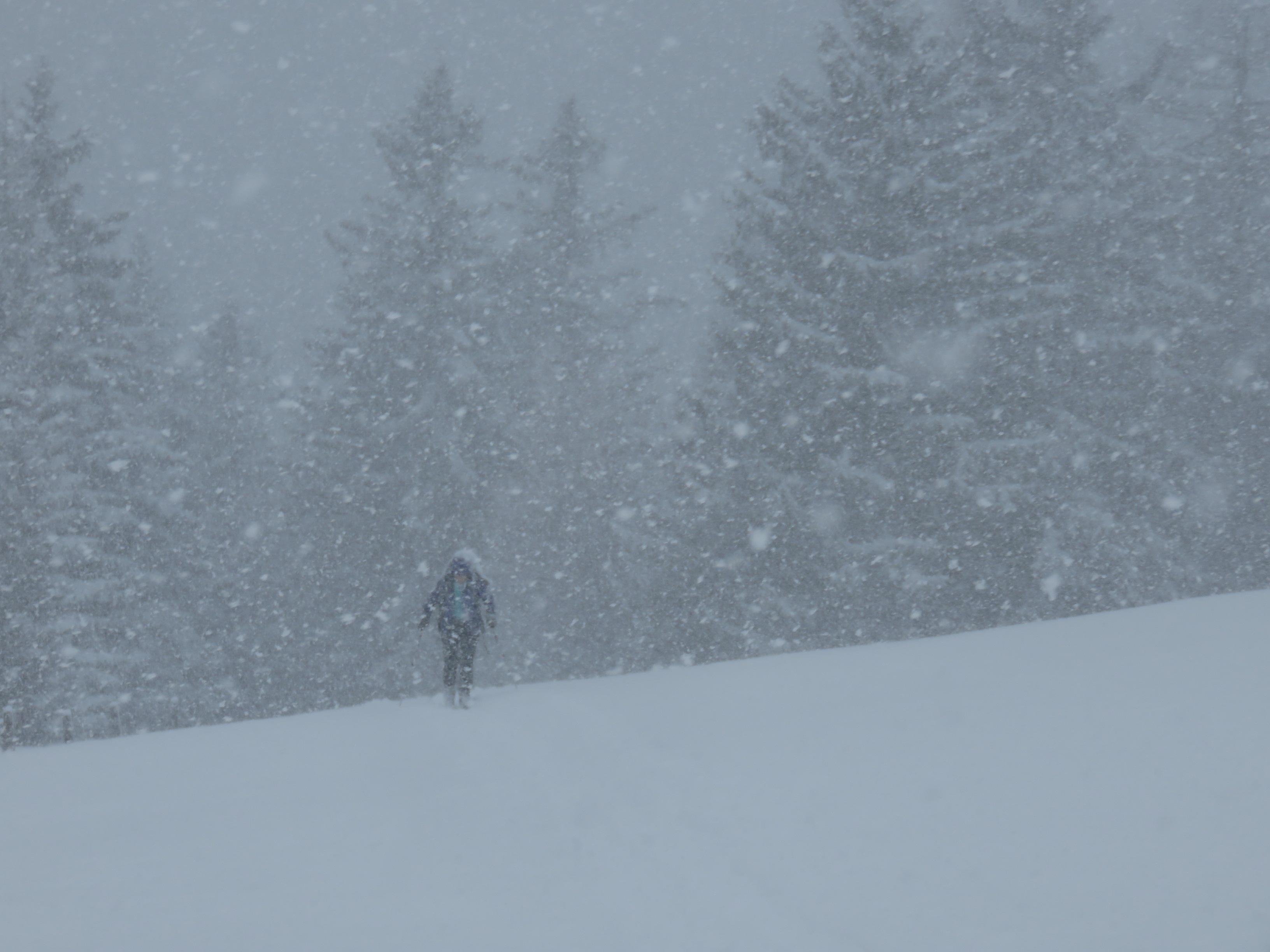 Start am Parkplatz bei Nieselregen der ab 1000m in Schneefall überging. Neuschnee am Stahlhaus ca. 10cm