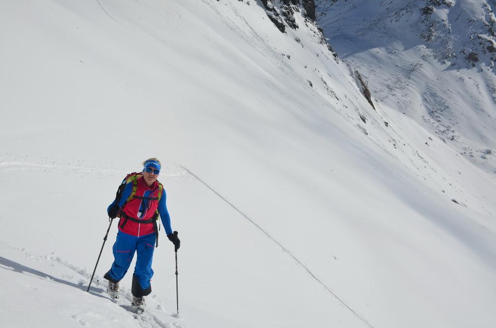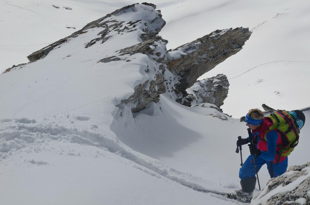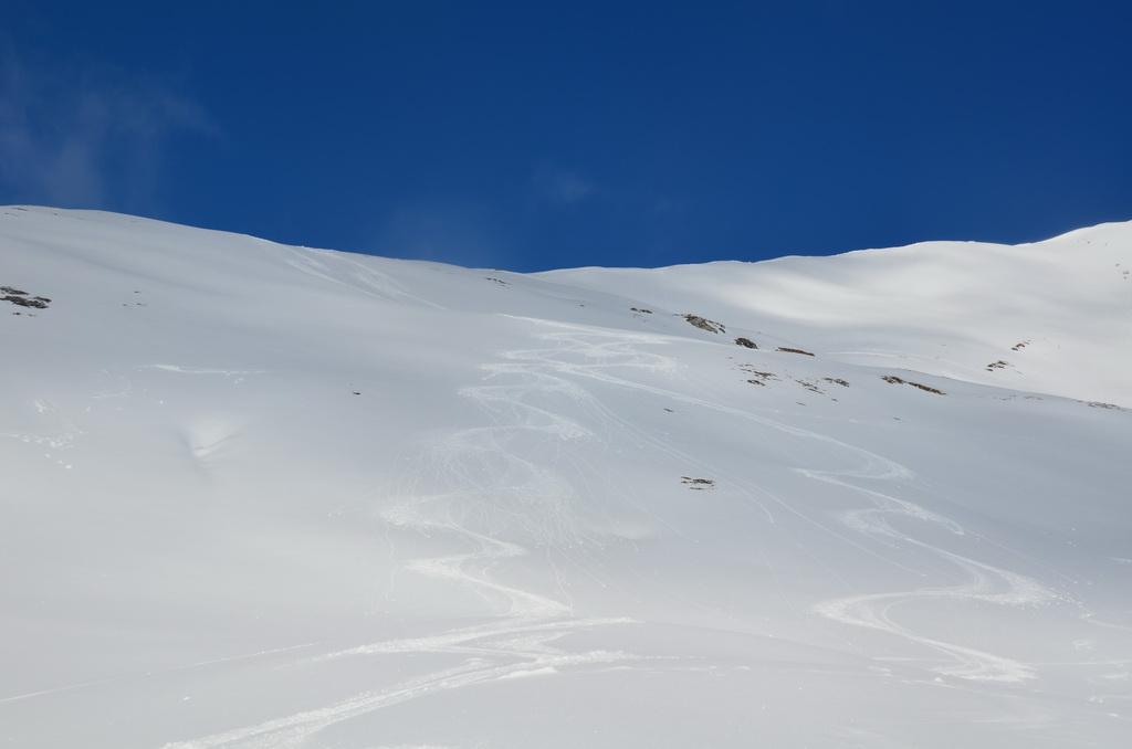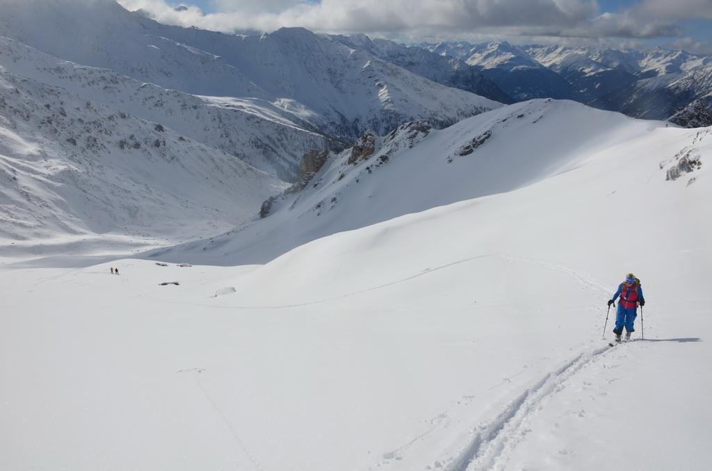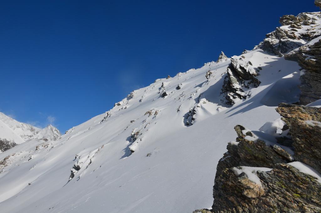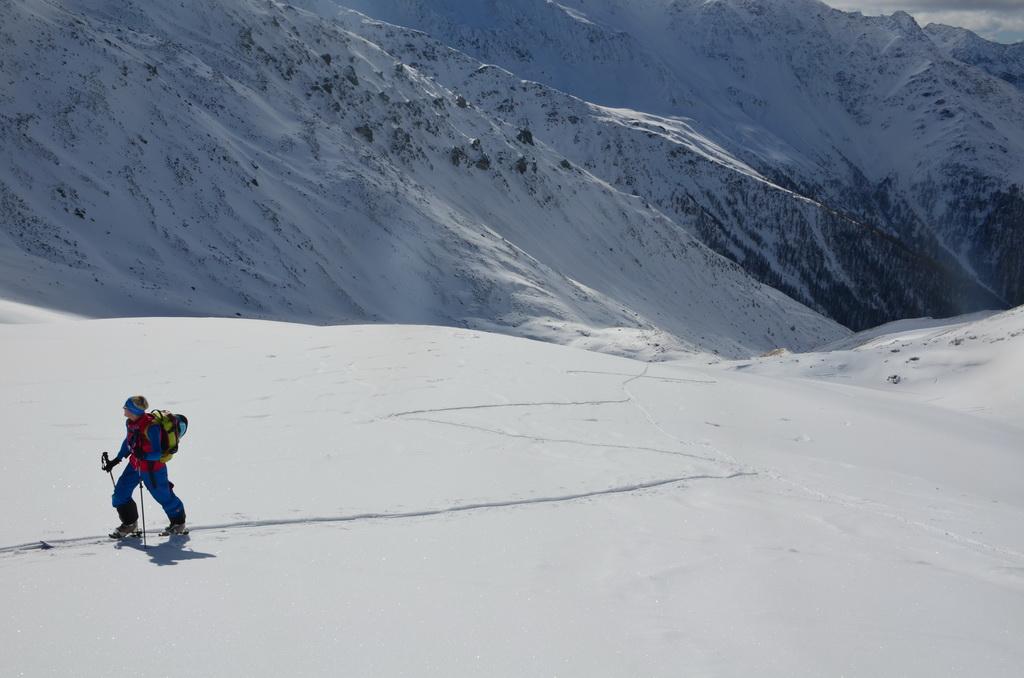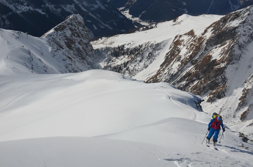 Die Schneelage in Kals ist schon relativ dürftig. Die Tour zum Weissen Knoten ist im unteren Abschnitt nur mehr über den Weg machbar. Eine geschlossene und wirklich gut fahrbare Schneedecke gibt es erst ab ca. 2400m, wobei speziell der Mittelteil im Bereich Gratzwinkel bald nicht mehr fahrbar sein wird. Der Gipfelhang war noch relativ gut zum Fahren heute mit ca. 5cm. frischer Pulverschnee Auflage auf teilweise tragendem Harschdeckel.