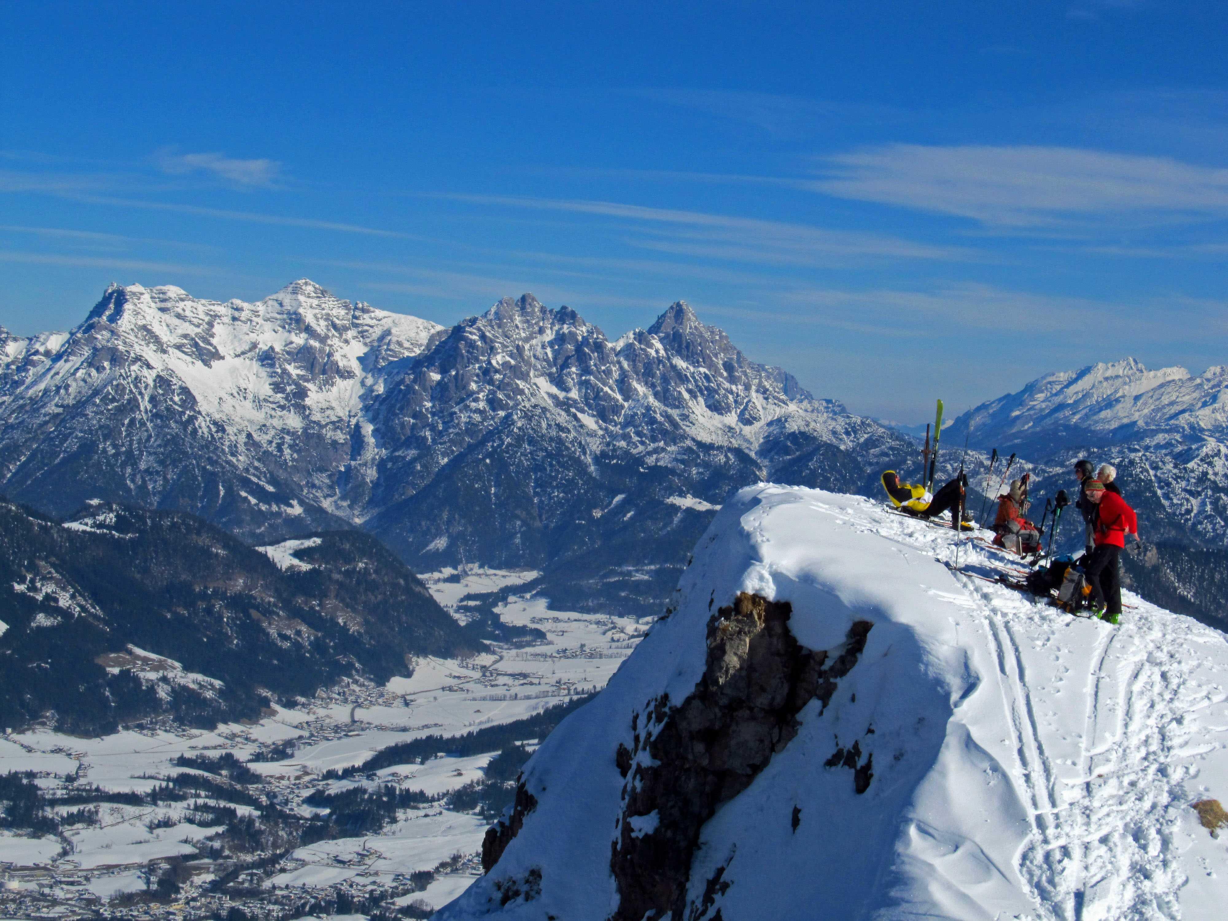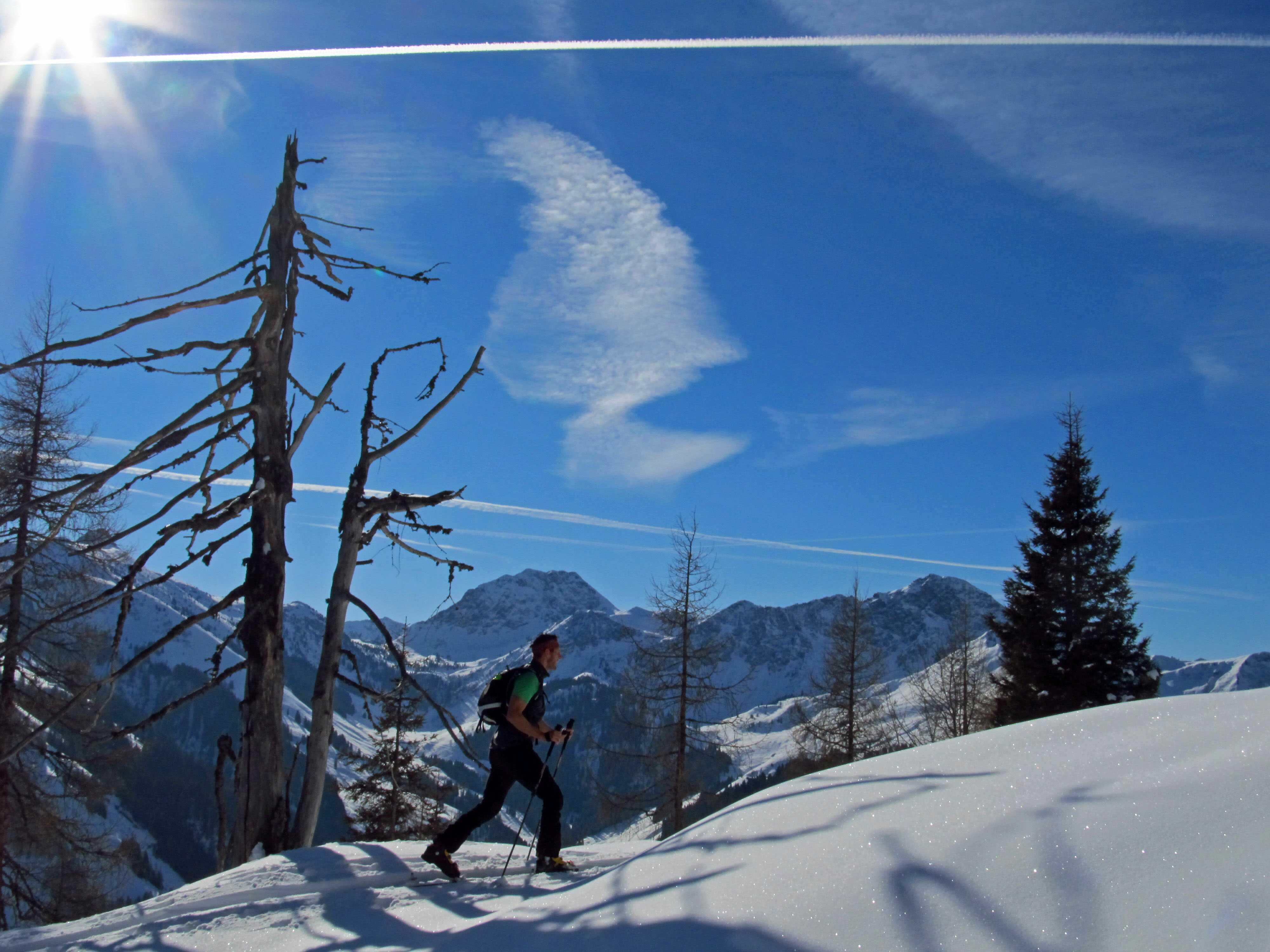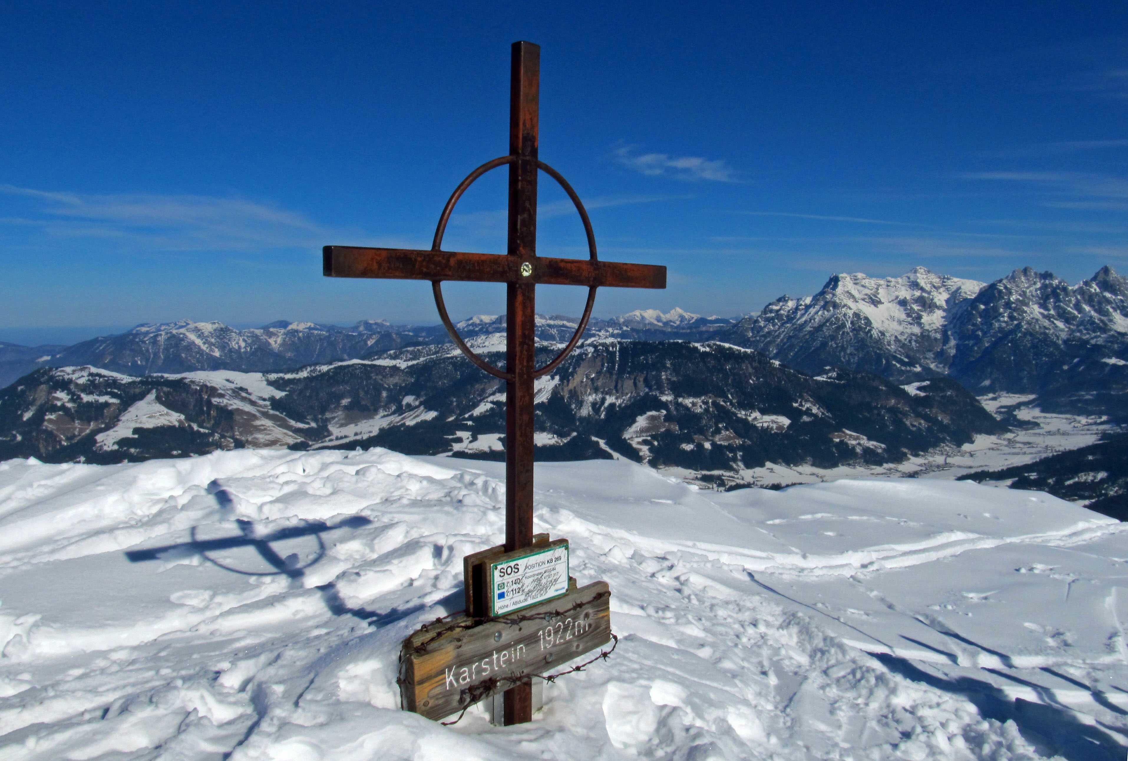Von Fieberbrunn/Pletzergraben (850) über die Huschenalm auf den Karstein (1922). Abfahrt über den Nordhang und Edenhausenalm zurück zum PP.