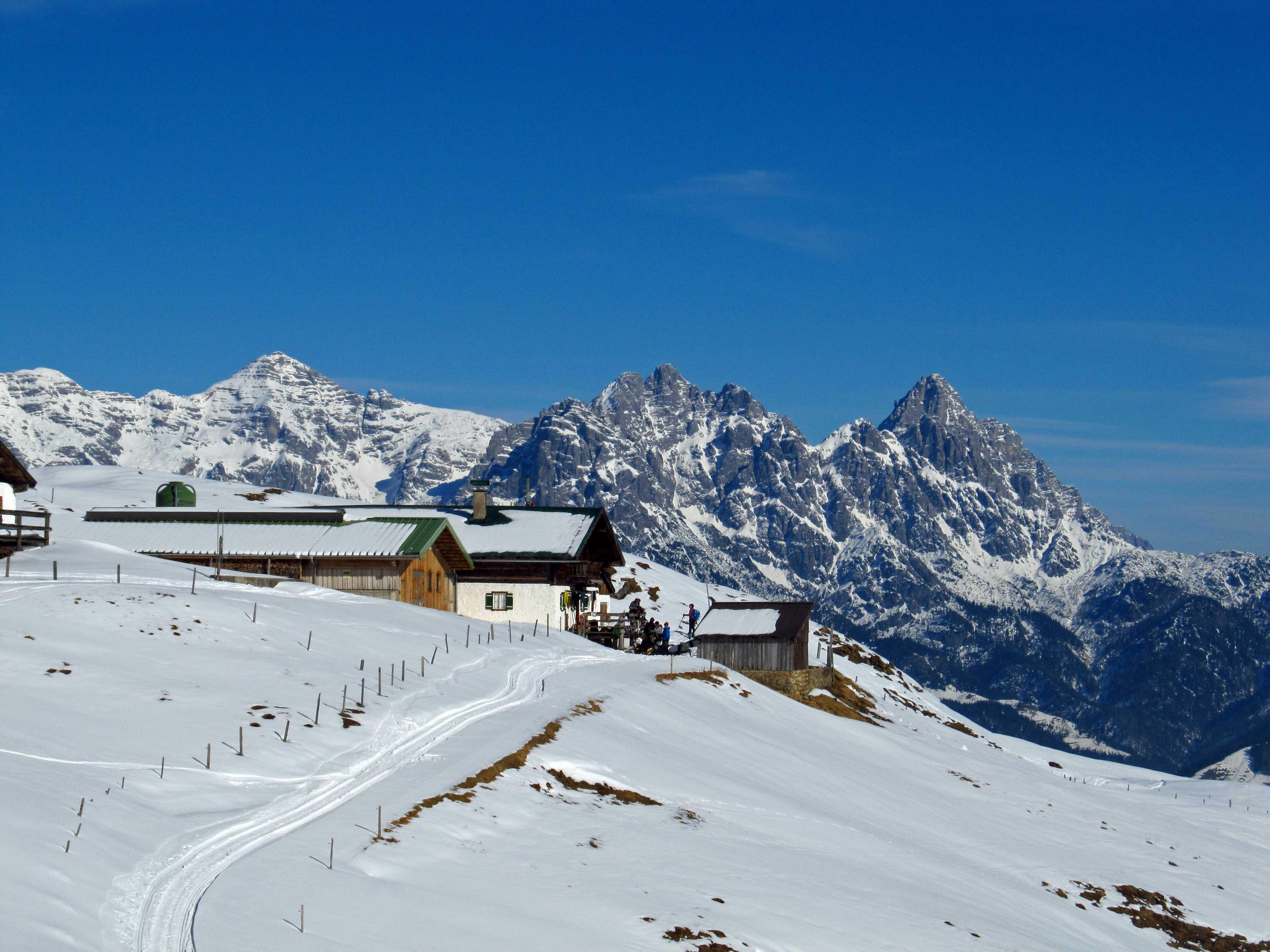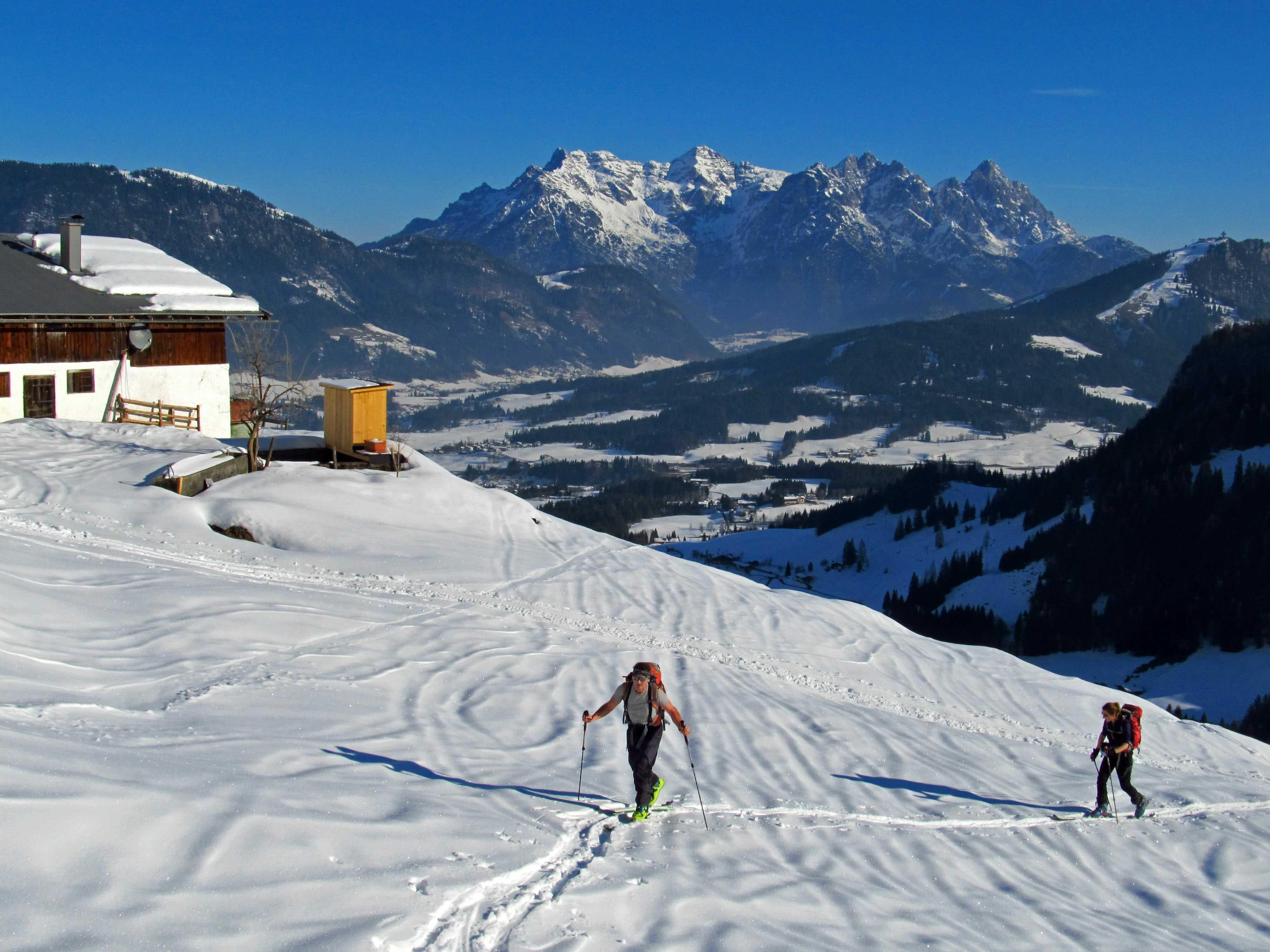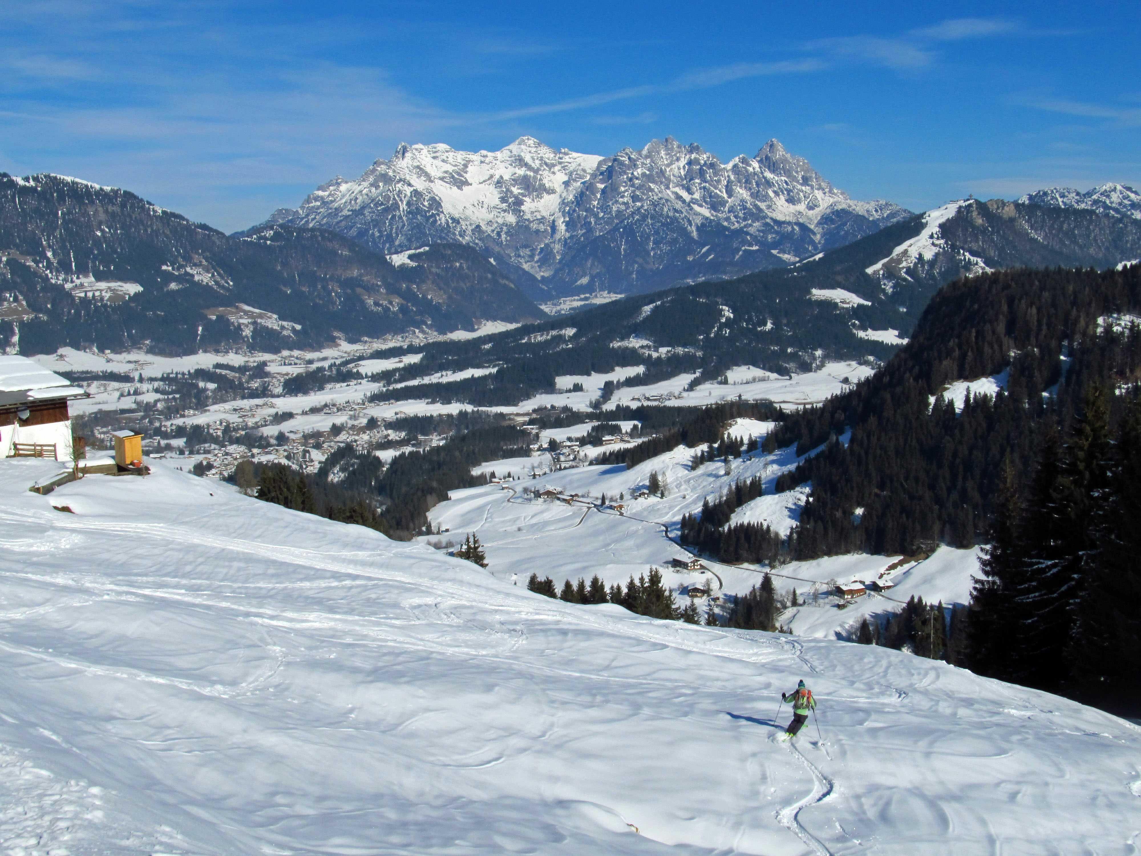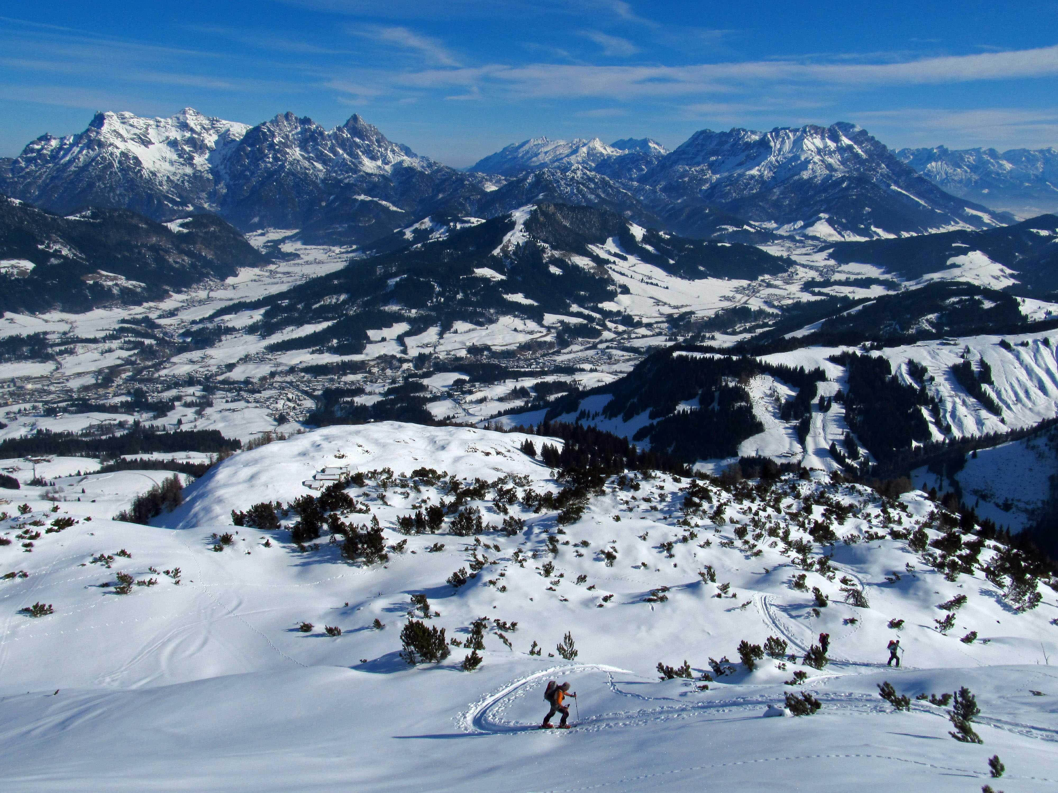 Von Fieberbrunn/Pletzergraben (850) über die Huschenalm auf den Karstein (1922). Abfahrt über den Nordhang und Edenhausenalm zurück zum PP.