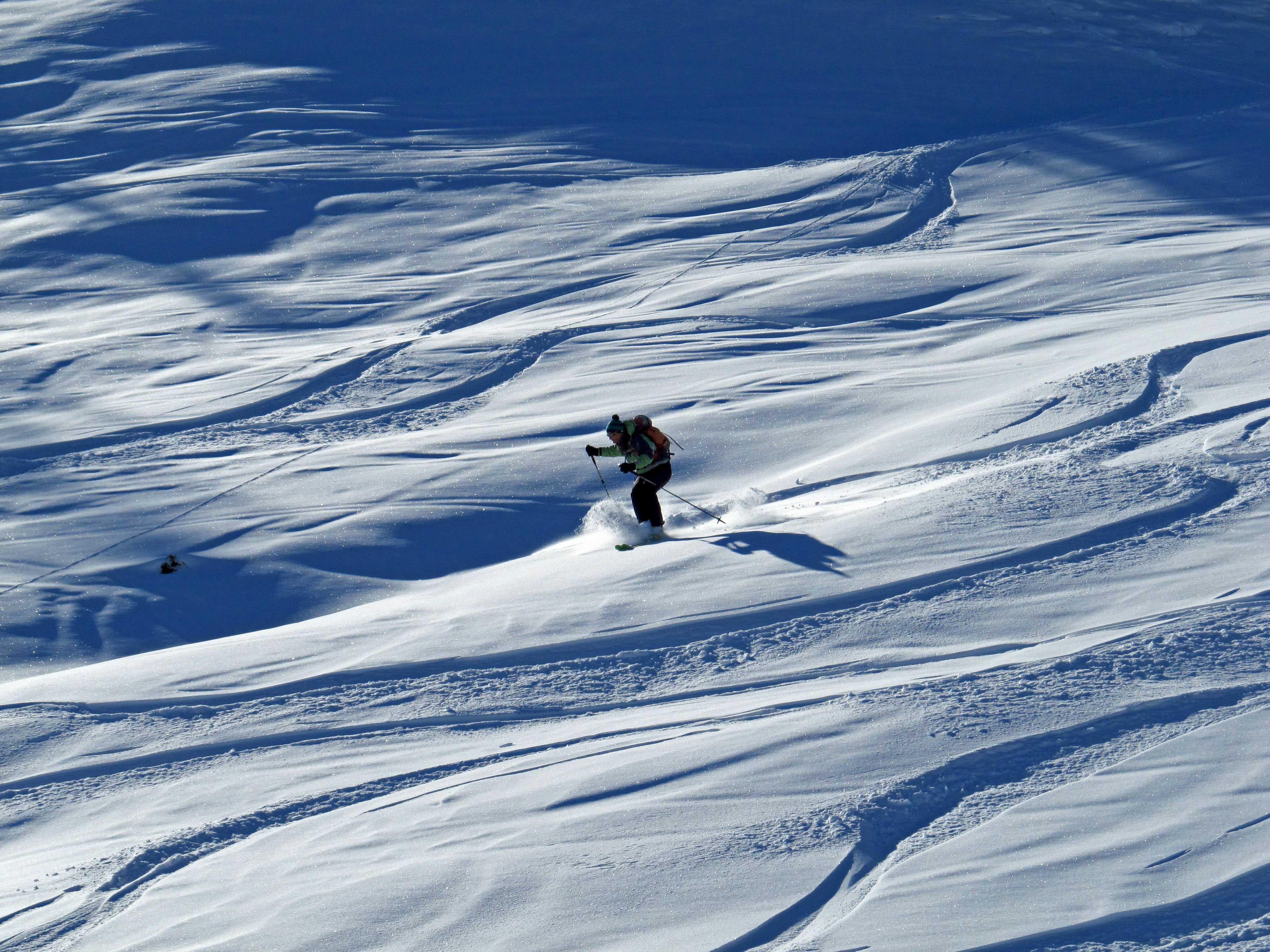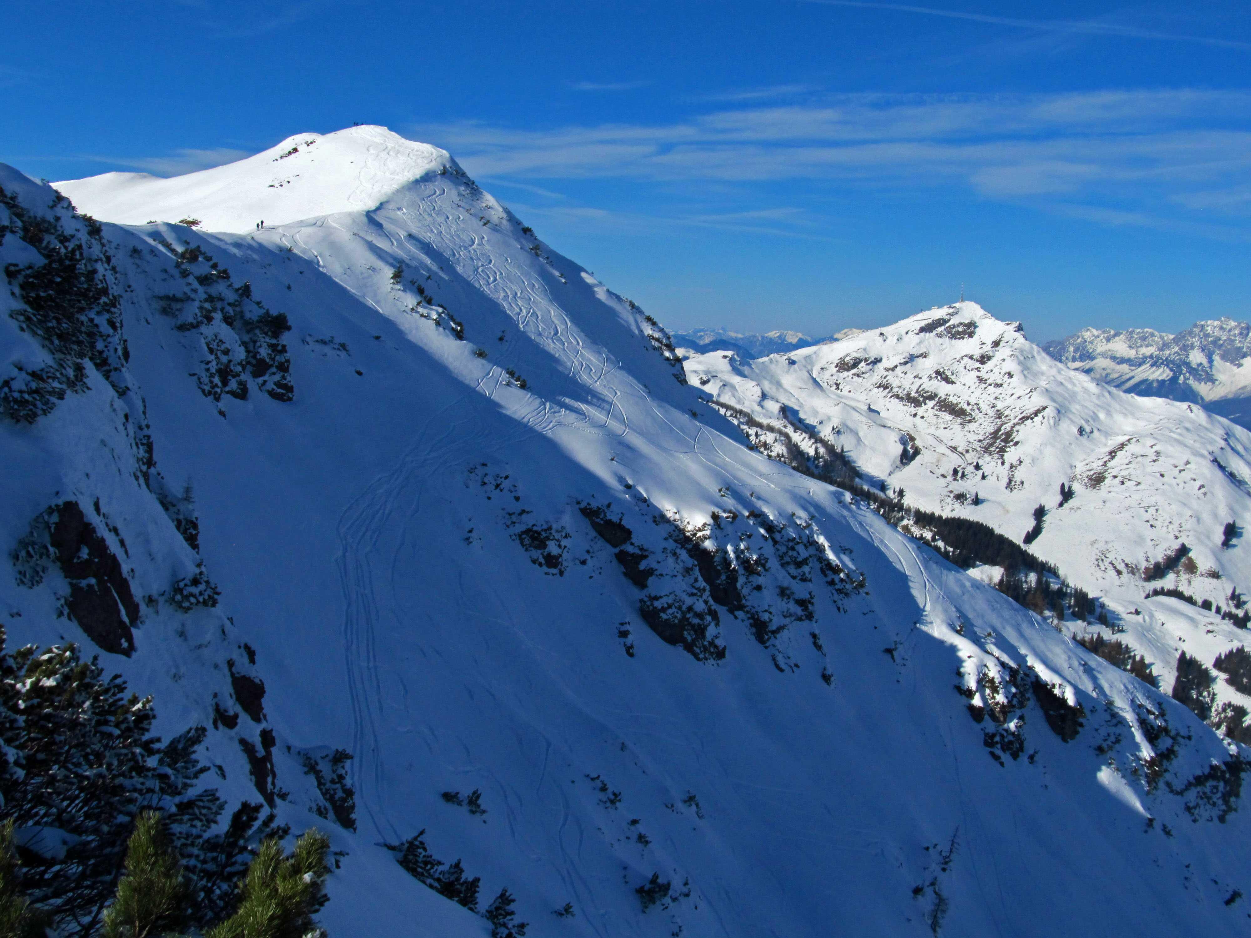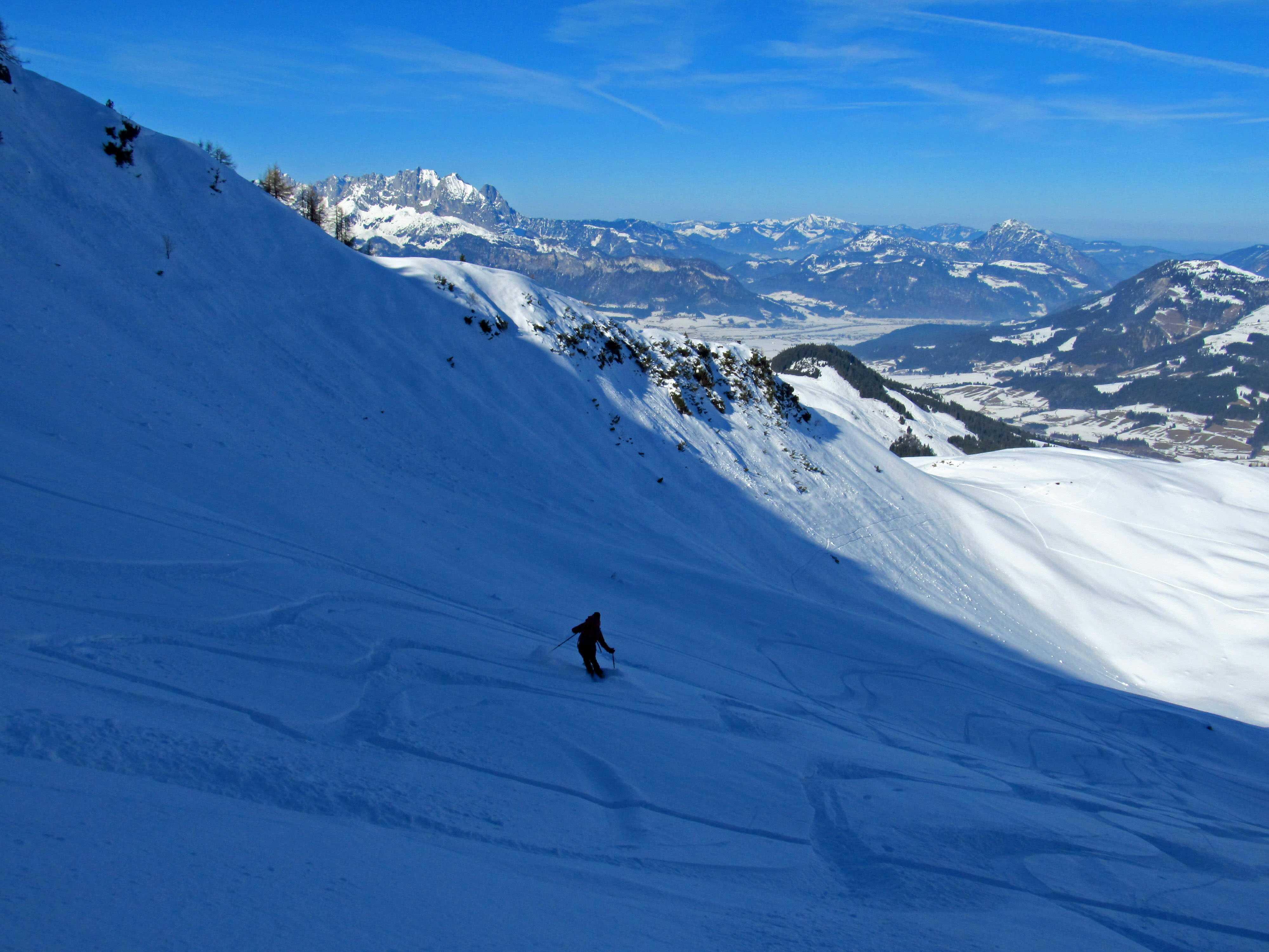 Schneelage: Beim Aufstieg in besonnten Breichen noch harschige Schneeoberfläche, im Schatten pulvrig. Im Tagesverlauf weichte die Harschschicht auf und war bei geringer Einsinktiefe gut fahrbar. Im N-Hang durchgehender Pulverschnee.